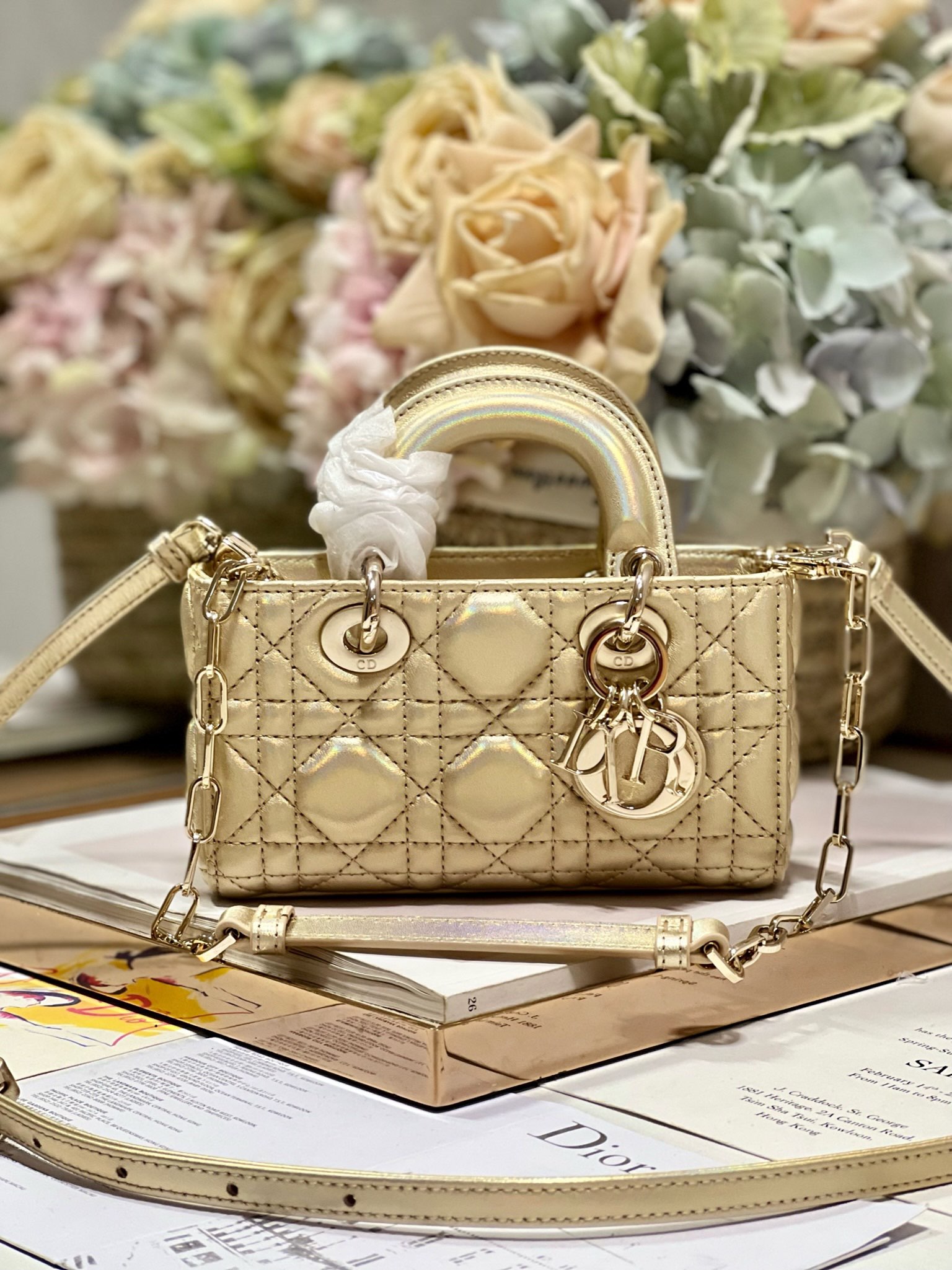 Mini DIOR OR LADY D-JOY Bag Fluorescent 'Champagne Gold'