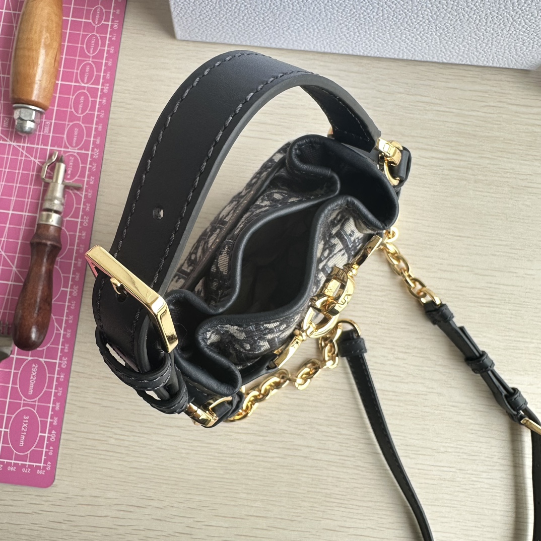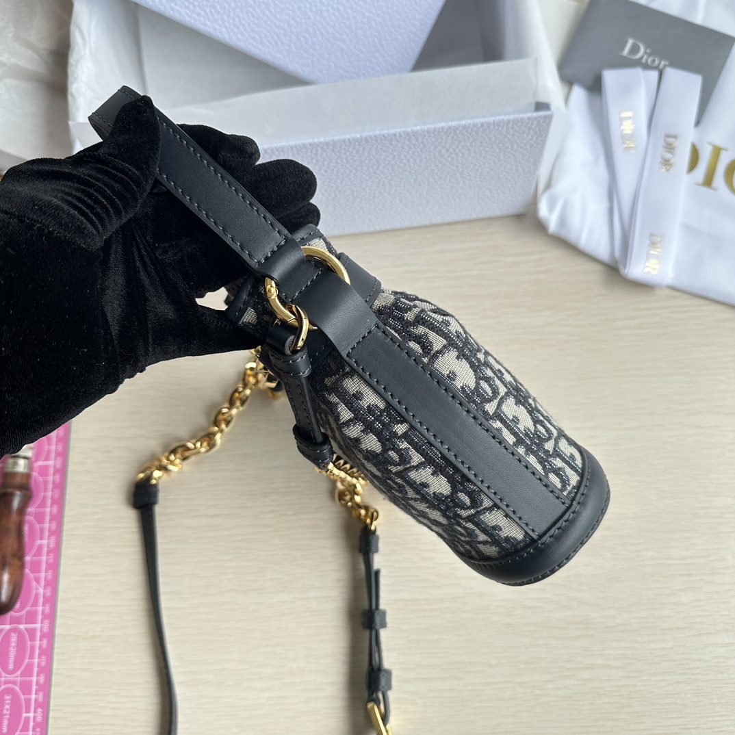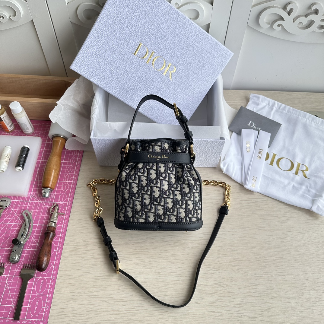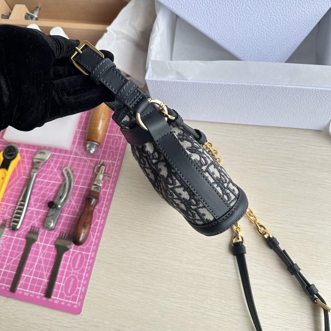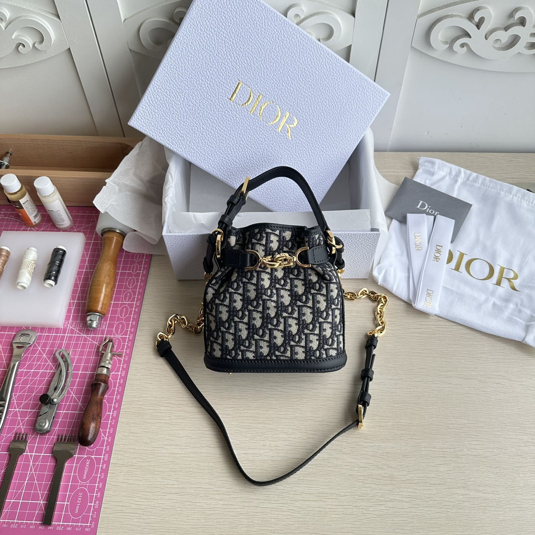 High-end quality, not common market goods, version-correct method! This C'est Dior handbag is a new arrival for Fall 2023, elegant and classic. Adorned with blue Oblique print, blue calfskin leather details enhance the style. Bucket bag design, featuring a CD Lock closure, decorated with knob-style letter motif, safely stores various daily essentials. Small size, paired with a top handle and an adjustable, detachable chain strap with a leather strap, can be carried by hand to create a relaxed and comfortable look. CD Lock closure, detachable chain strap adorned with an adjustable leather strap, top removable leather handle. Model: 2272. Dimensions: 17×7×18. Color: Blue fabric.