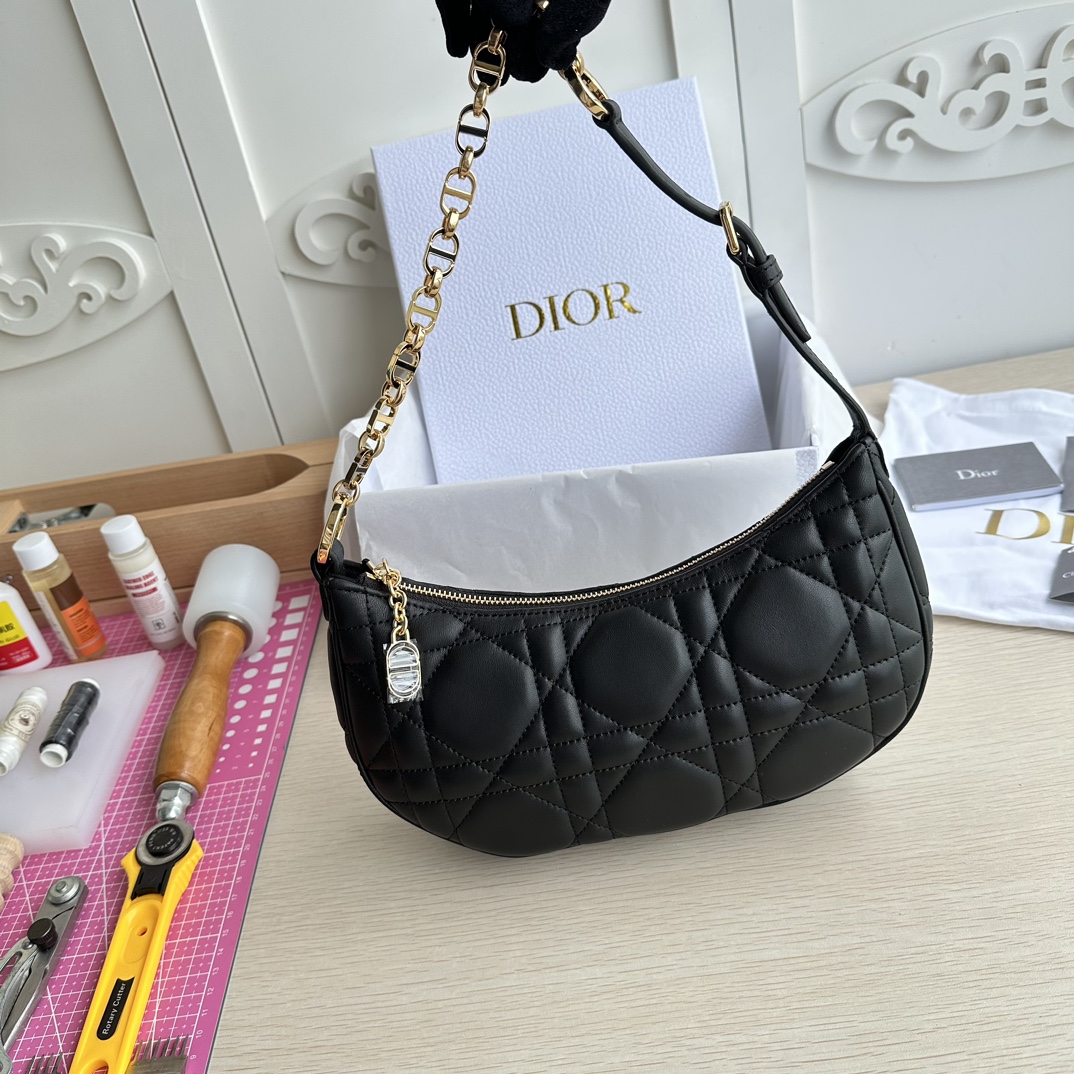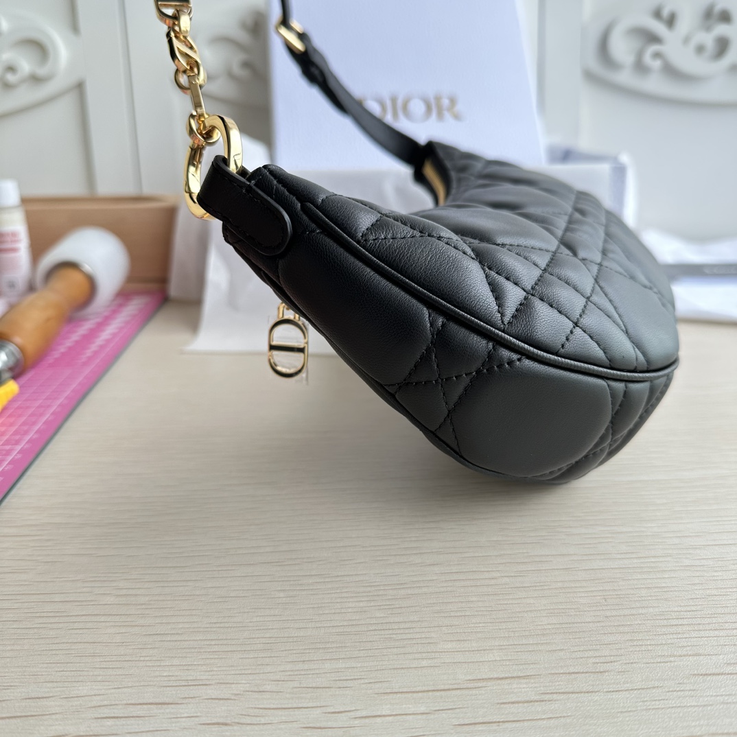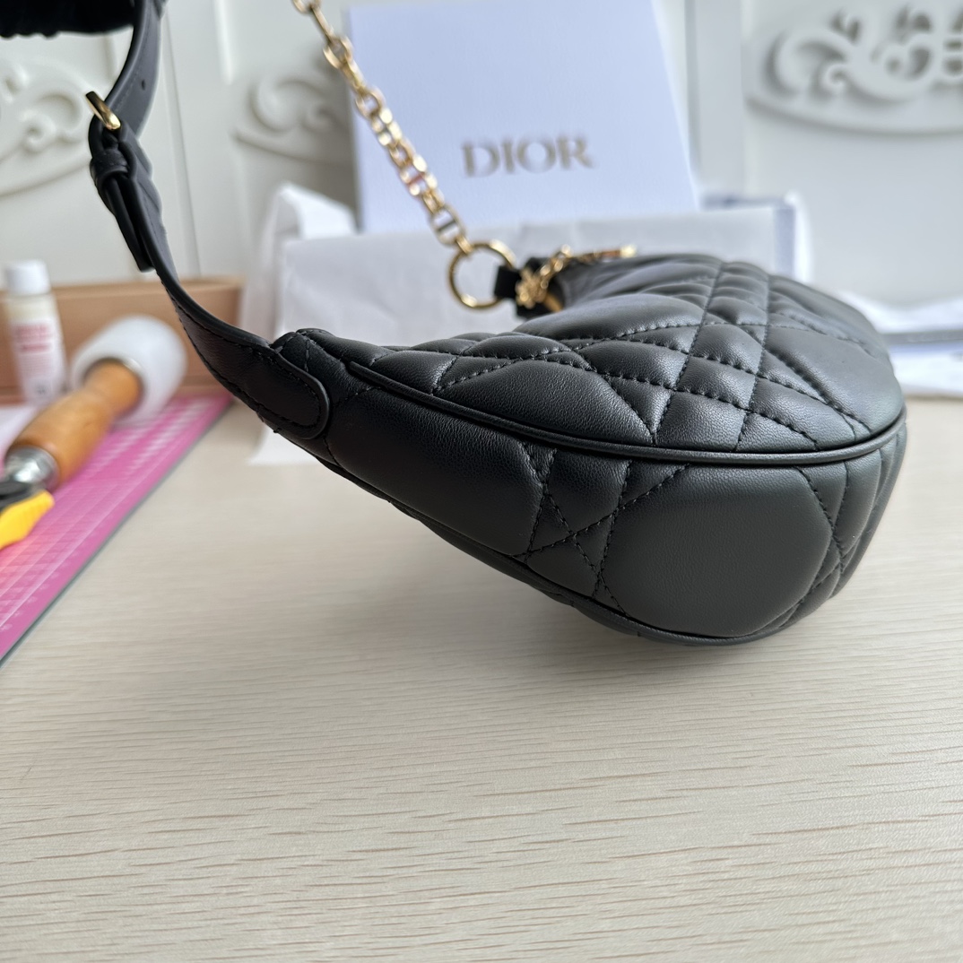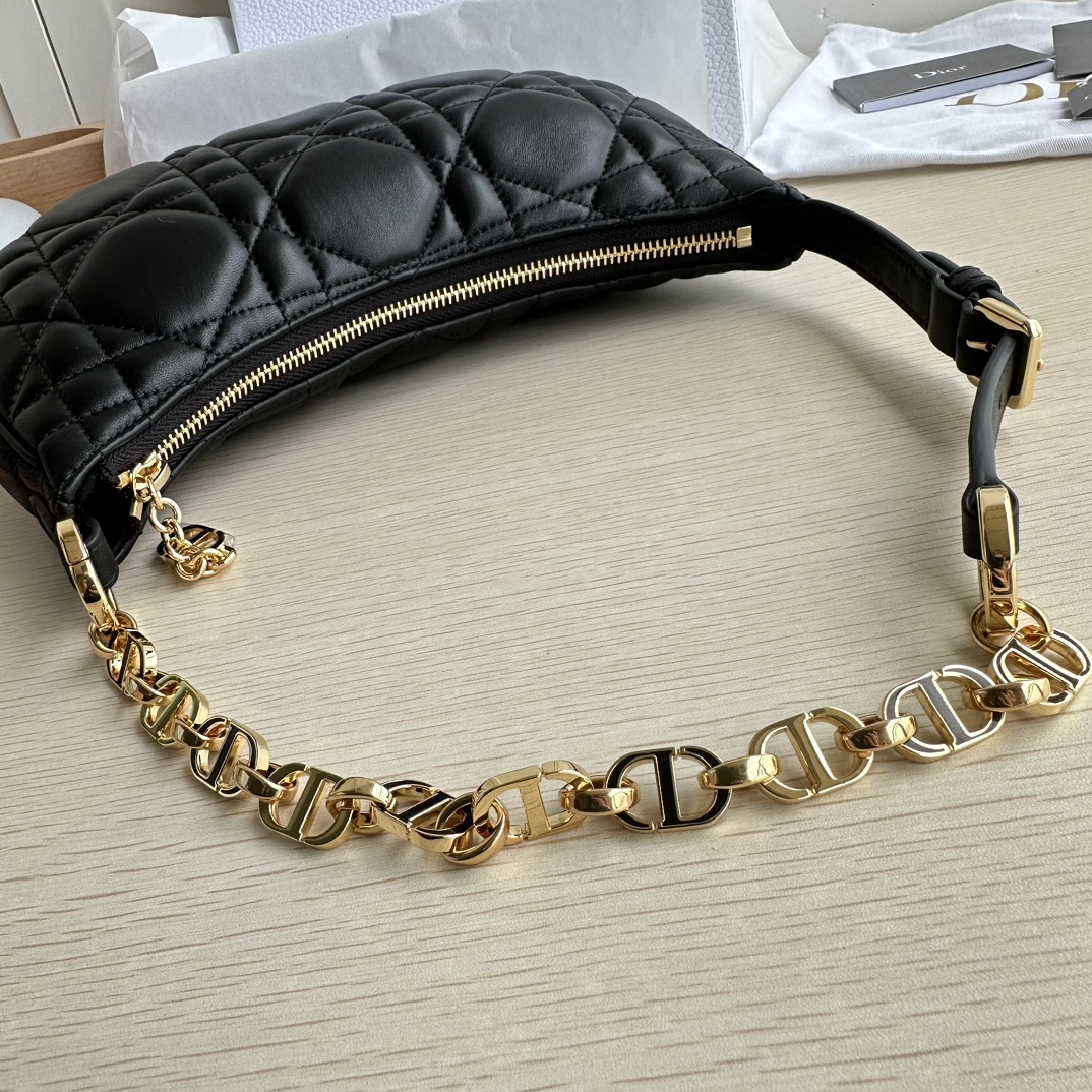 High-end quality, not common market goods, version-correct craftsmanship! This CD Lounge bag is a new summer release, showcasing Dior's modern aesthetics and haute couture style. Made from black lambskin fabric, adorned with large cannage stitching to enhance elegance. Features a classic chain and leather combination, alternately decorated with gold-finish metal and enamel links in the same color. Foldable design, can be carried on the shoulder or by hand. Zipper closure with CD zipper pull. Adjustable shoulder strap, the chain section consists of gold-finish metal and enamel CD links in the same tone as the leather, paired with a leather strap. Model: 22626. Color: Black. Dimensions: 26×15×5.5.