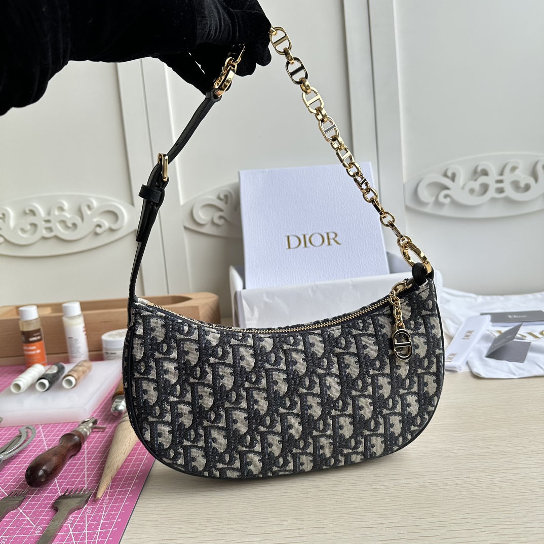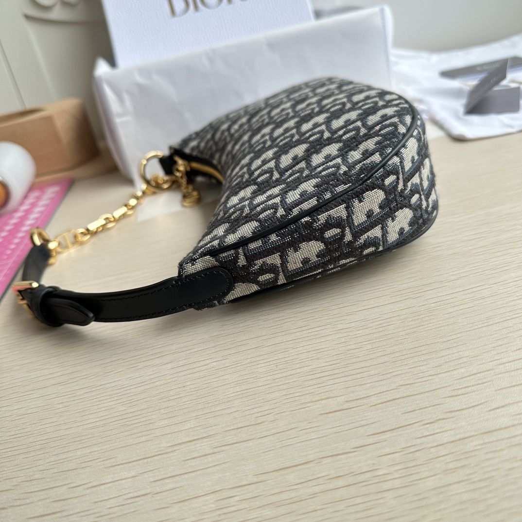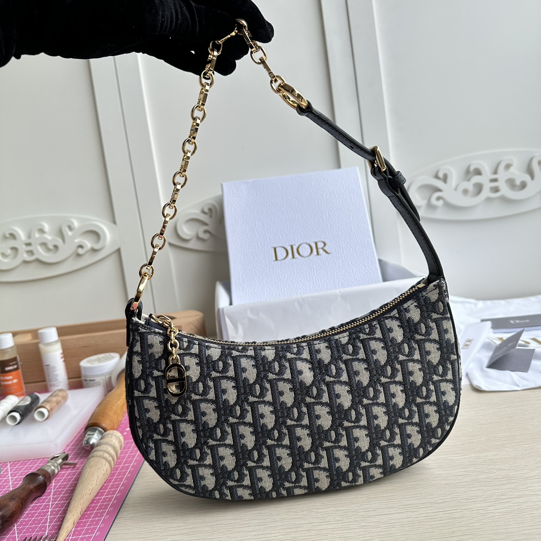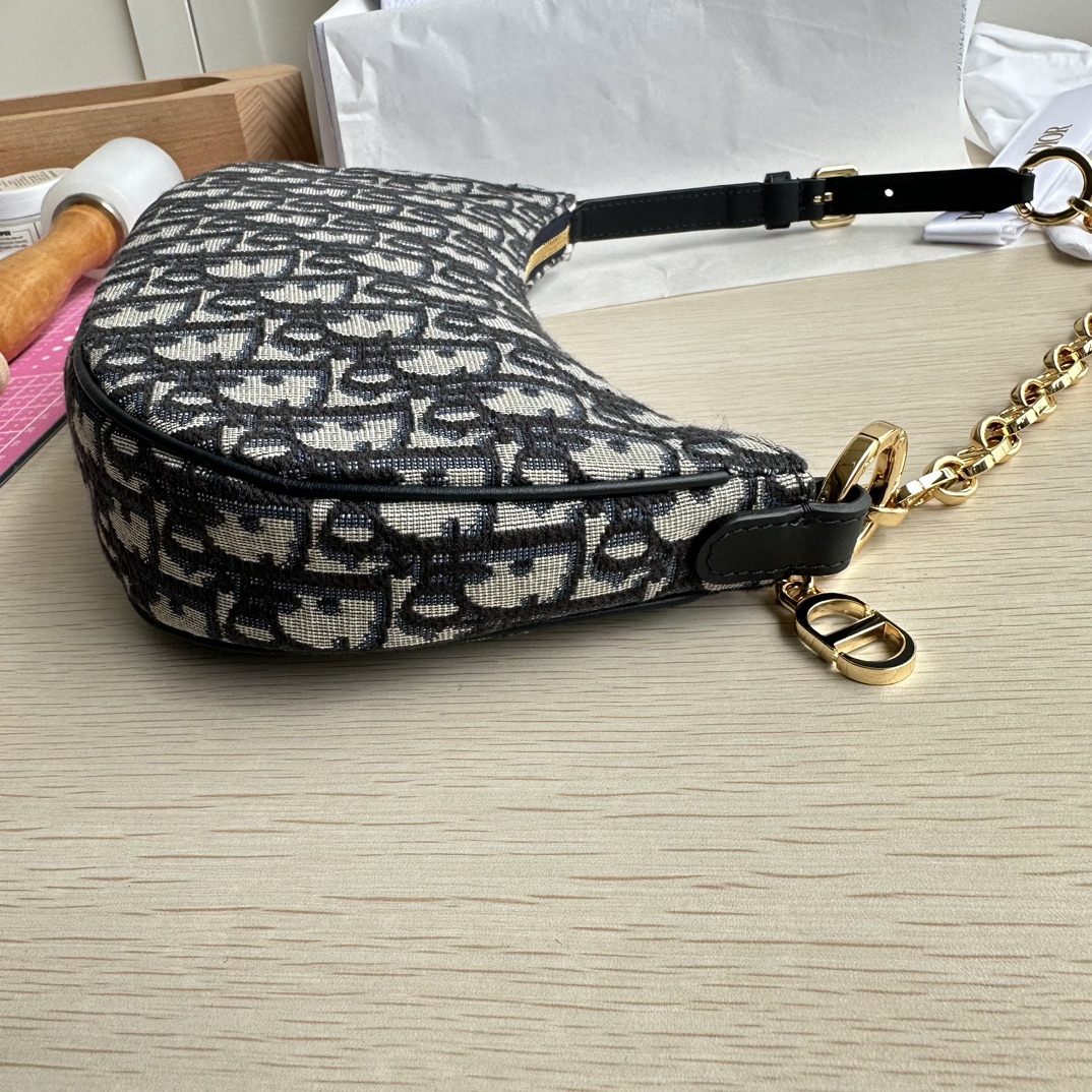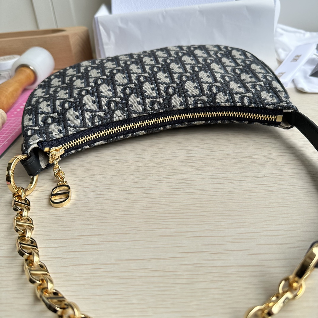 High-end quality, not common market goods, version-correct practices! This CD Lounge bag is a new summer release, showcasing Dior's modern aesthetics and haute couture style. Meticulously crafted from blue Oblique printed fabric, it highlights Dior's classic pattern. The classic chain is paired with leather, alternately adorned with gold-finish metal and enamel chain links in the same color. Features a foldable design, can be carried on the shoulder or by hand. Zipper closure with a CD zipper pull. Adjustable shoulder strap, the chain section consists of gold-finish metal and enamel CD chain links in the same tone as the leather, paired with a leather strap. Model: 22626. Color: Blue. Dimensions: 26×15×5.5.