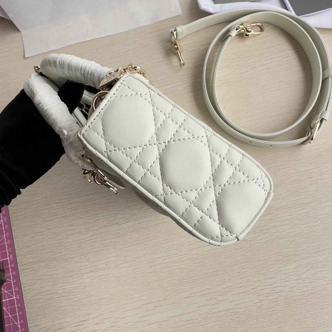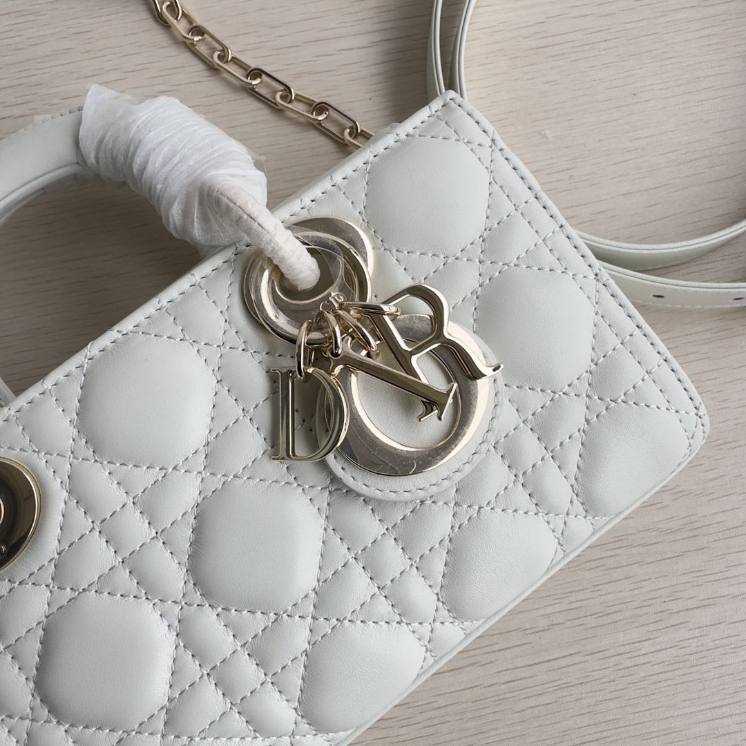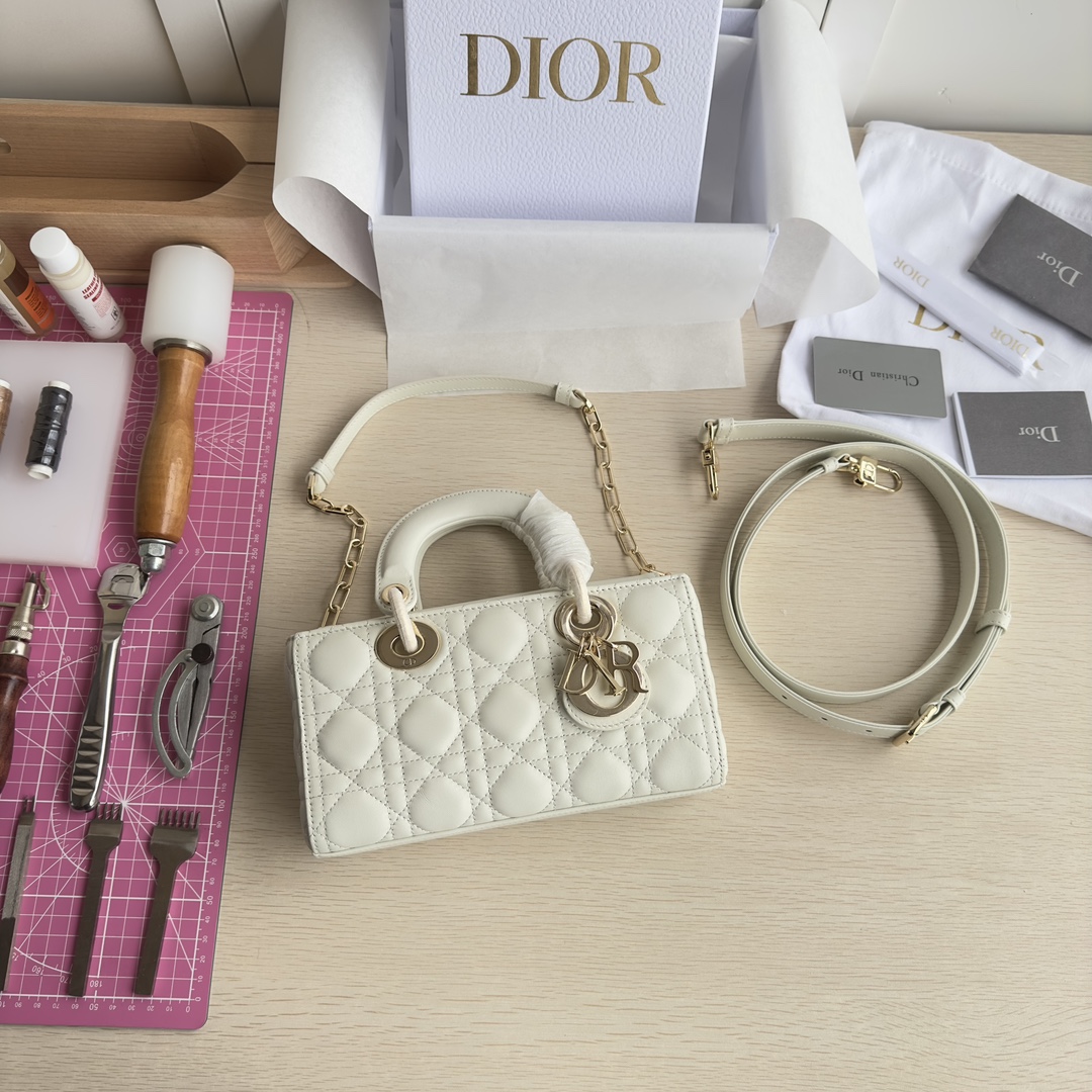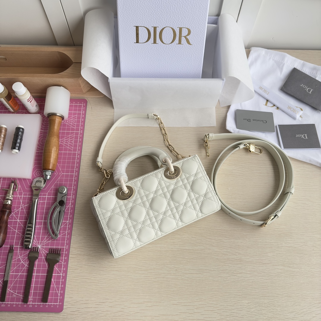 High-end quality, authentic craftsmanship, not common market goods. The Lady D-Joy bag is the new season's product, highlighting the minimalist aesthetic of the Lady Dior collection, embodying Dior's profound insight into elegance and beauty. Meticulously crafted from black lambskin, the stylish and elegant design is timeless. Adorned with cannage stitching and accented with a light gold-finished metal D.I.O.R. charm to enhance the style. Equipped with a detachable chain strap and an adjustable, detachable leather strap, it can be carried by hand, on the shoulder, or cross-body, making it an ideal companion for both day and evening wear. D.I.O.R. charm, detachable chain strap, adjustable leather strap. Dimensions: 22×12×6. Color: Black. Model: 0613