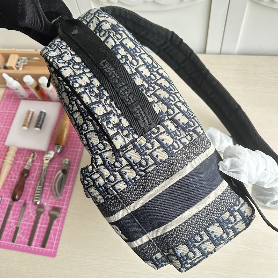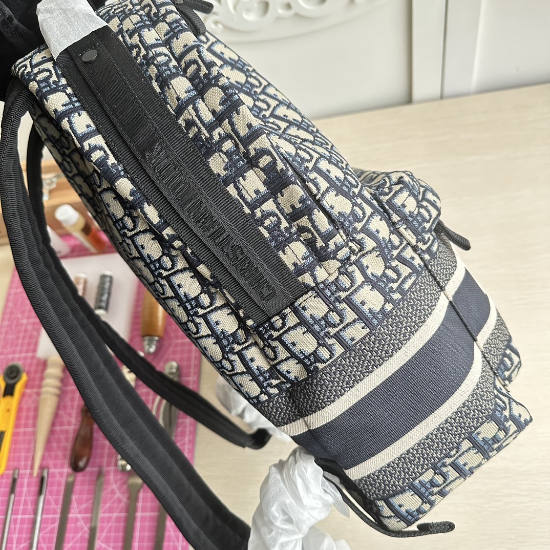High-end quality, authentic craftsmanship, not common market goods. This Dior Travel backpack skillfully blends Dior's iconic details with a stylish and practical design. Made from blue technical fabric, it features an all-over Oblique print and a prominent CHRISTIAN DIOR PARIS logo on the front. The spacious main compartment has a zipper for easy opening, making it convenient to store and access daily essentials. Equipped with handles and shoulder straps, it can be carried by hand or worn on the shoulder or as a backpack.