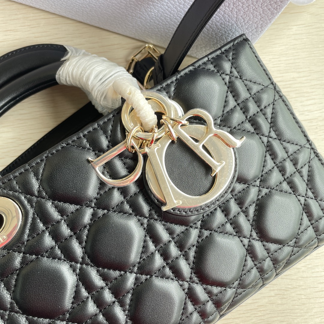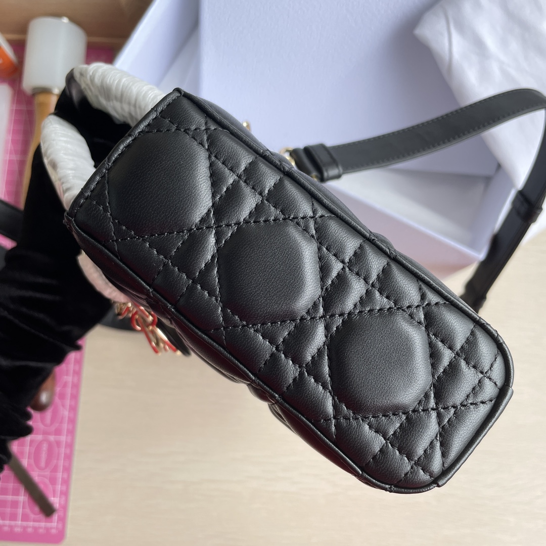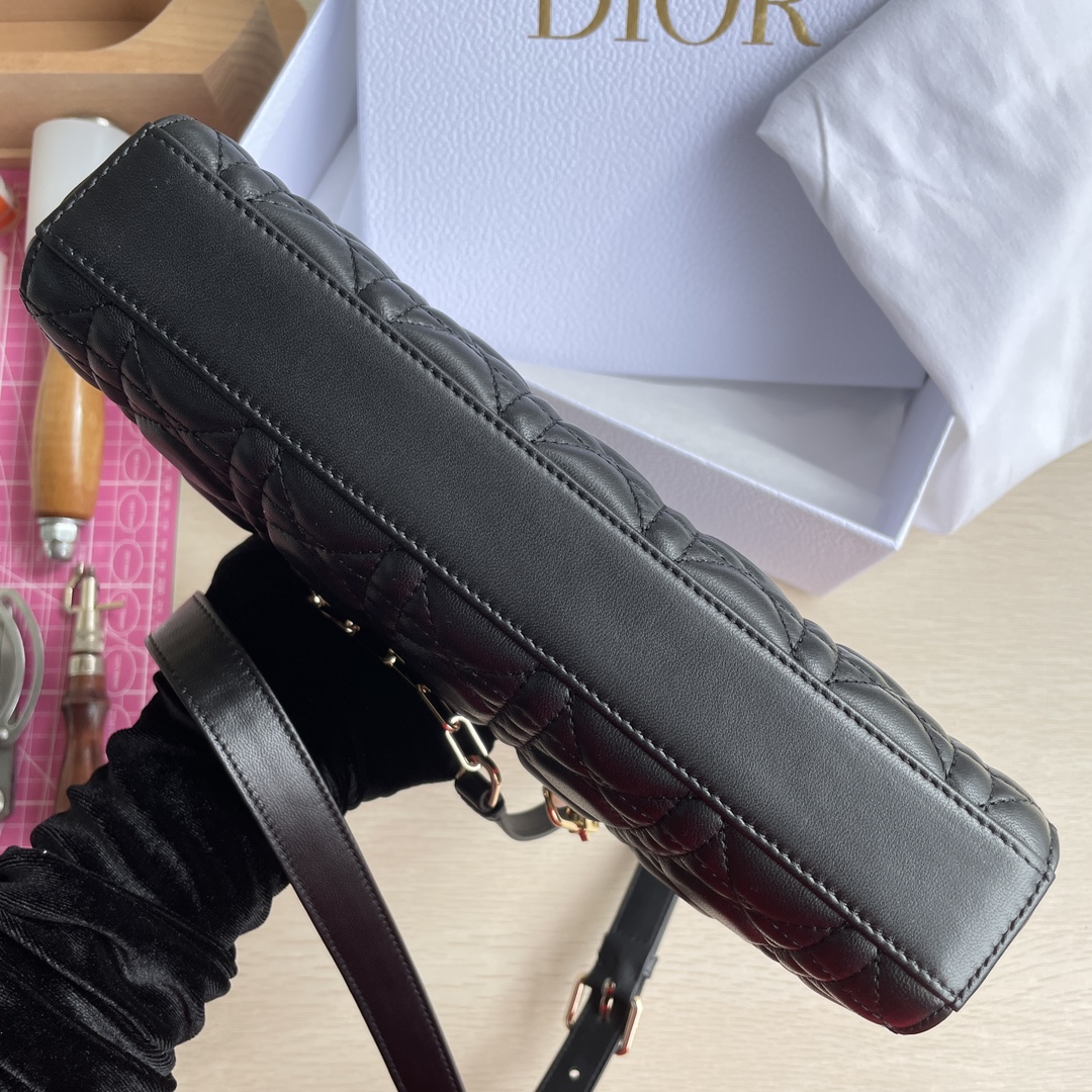 This Lady D-Joy bag interprets Dior's profound insight into elegance and beauty. It features a classic and sophisticated style, crafted from imported lambskin material. The bag is adorned with a gold-toned metal "D.I.O.R." charm that enhances its style, adding a touch of dynamism to the exquisite silhouette. It comes with a detachable chain shoulder strap and an adjustable, removable leather shoulder strap, making it suitable for hand carry, shoulder wear, or cross-body wear—an ideal choice for everyday styling. Dimensions: 26 x 13.5 x 5 cm