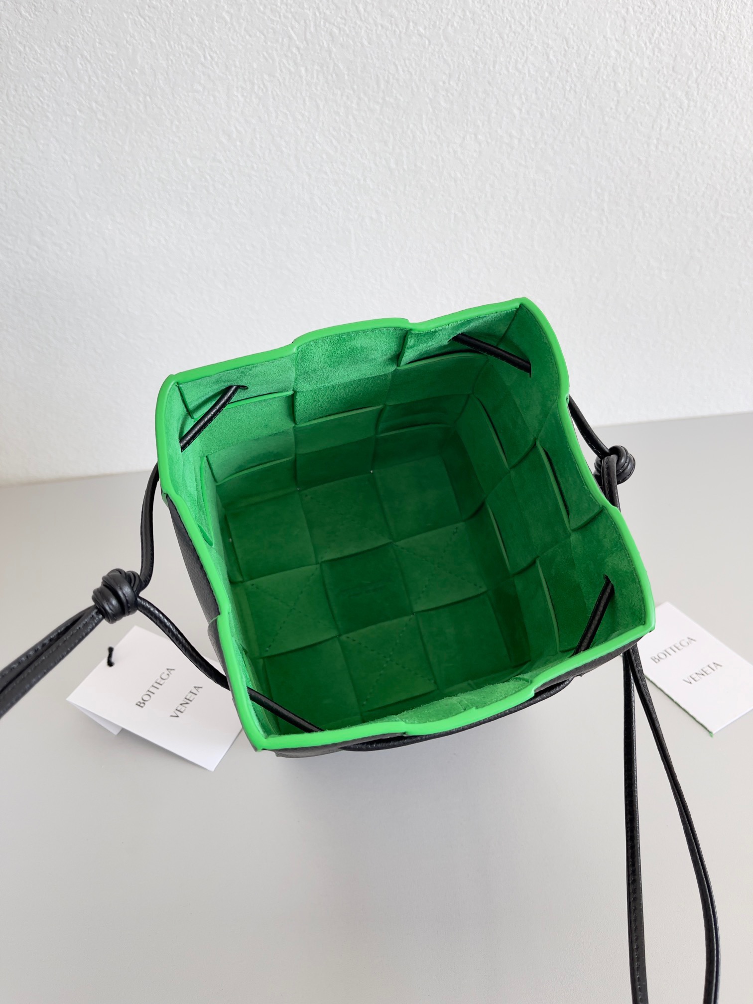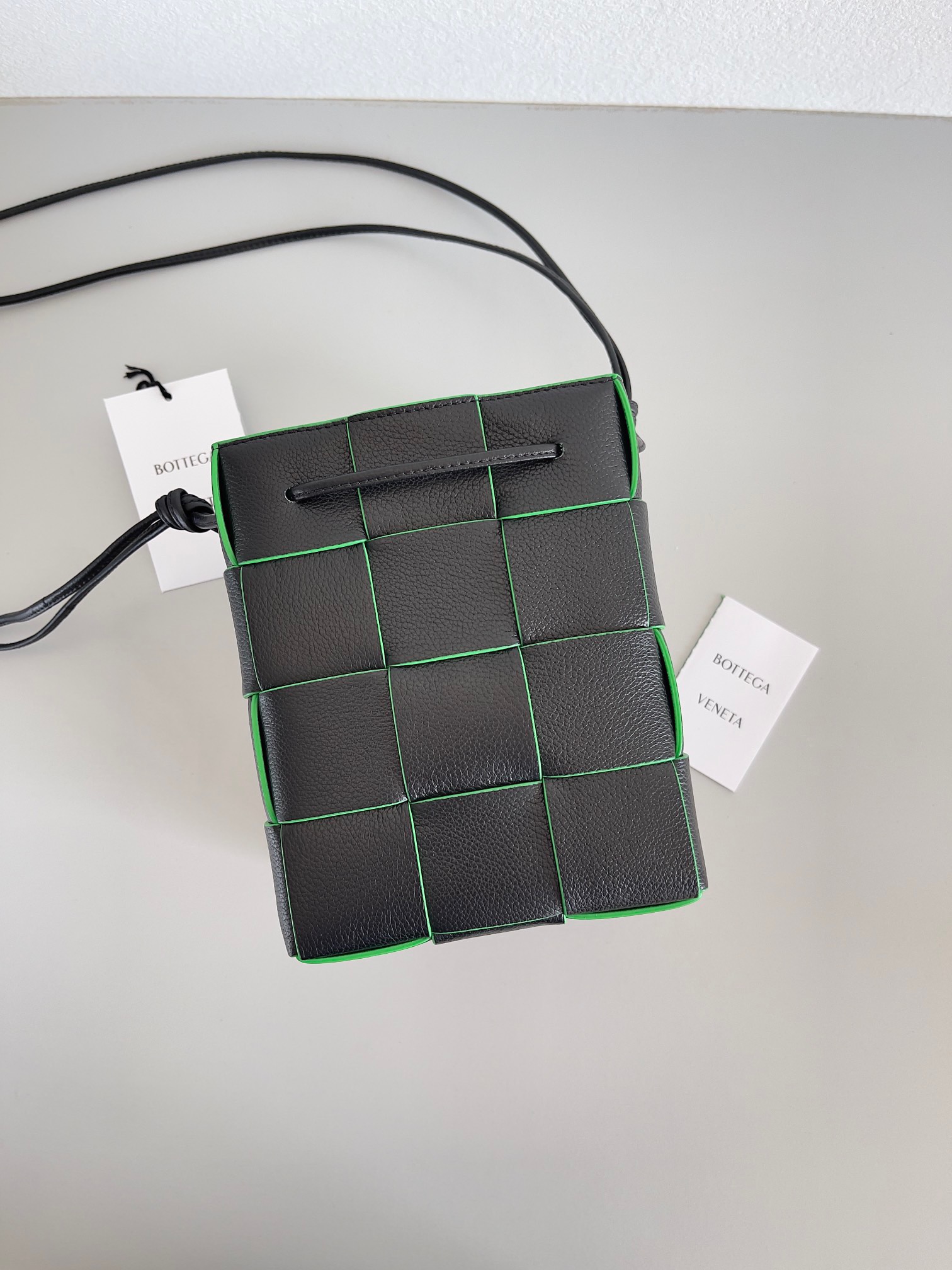 The latest cutie from BV, continuing Daniel Lee's minimalism. The small size may leave a bit of the phone exposed, while the large size has no issues at all—fits everything. Molded and entirely handwoven, the texture is perfect, only the highest end in the market. Welcome to compare.