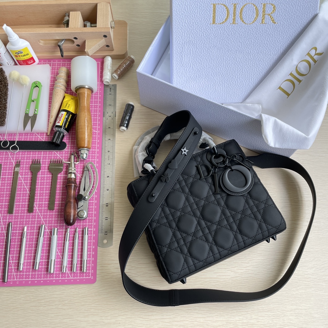 Imported original factory suede leather! High-end quality, not ordinary market goods! LADY D-JOY Handbag. This Lady D-Joy handbag interprets Dior's profound insight into elegance and beauty. A classic and elegant style, made from imported original factory suede leather. Paired with black metal hardware featuring the "D.I.O.R." charm to enhance the style, adding a touch of dynamism to the exquisite silhouette. Comes with a detachable and adjustable leather strap, allowing it to be carried by hand, on the shoulder, or cross-body, making it an ideal choice for everyday looks. Color: Suede Black. Dimensions: Four compartments 20.5*8.5*17.