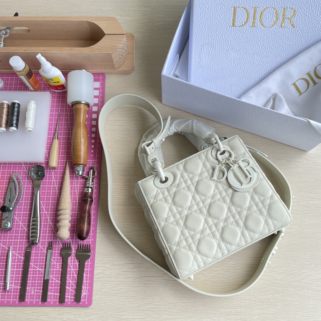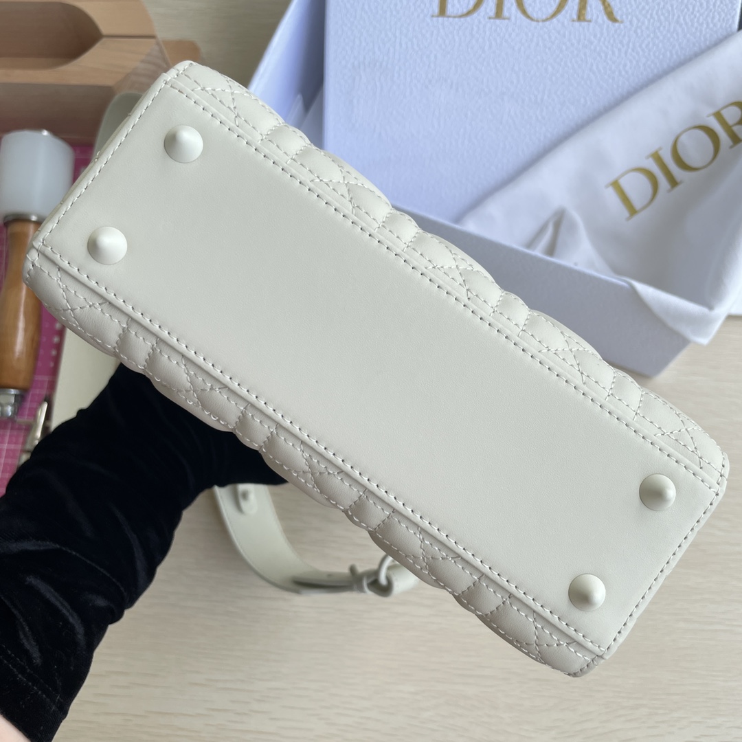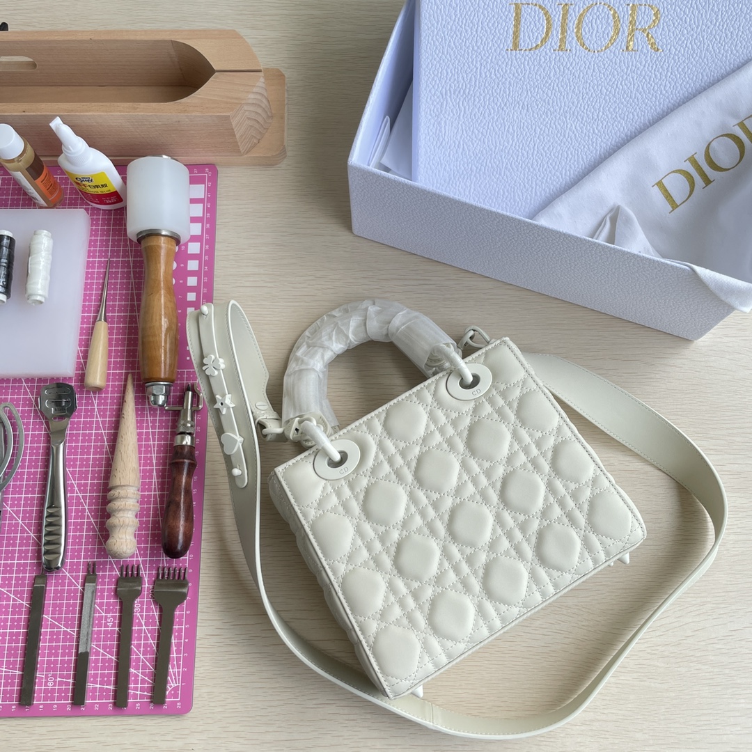 Imported original factory suede leather! High-end quality, not ordinary market goods! LADY D-JOY Handbag. This Lady D-Joy handbag interprets Dior's profound insight into elegance and beauty. A classic and elegant style, made from imported original factory suede leather. Paired with white hardware-finish metal "D.I.O.R." charm to enhance the style, adding a touch of dynamism to the exquisite silhouette. Comes with a detachable and adjustable leather shoulder strap, can be carried by hand, on the shoulder, or cross-body, making it an ideal choice for everyday styling. Color: Suede White. Dimensions: Four compartments 20.5*8.5*17.