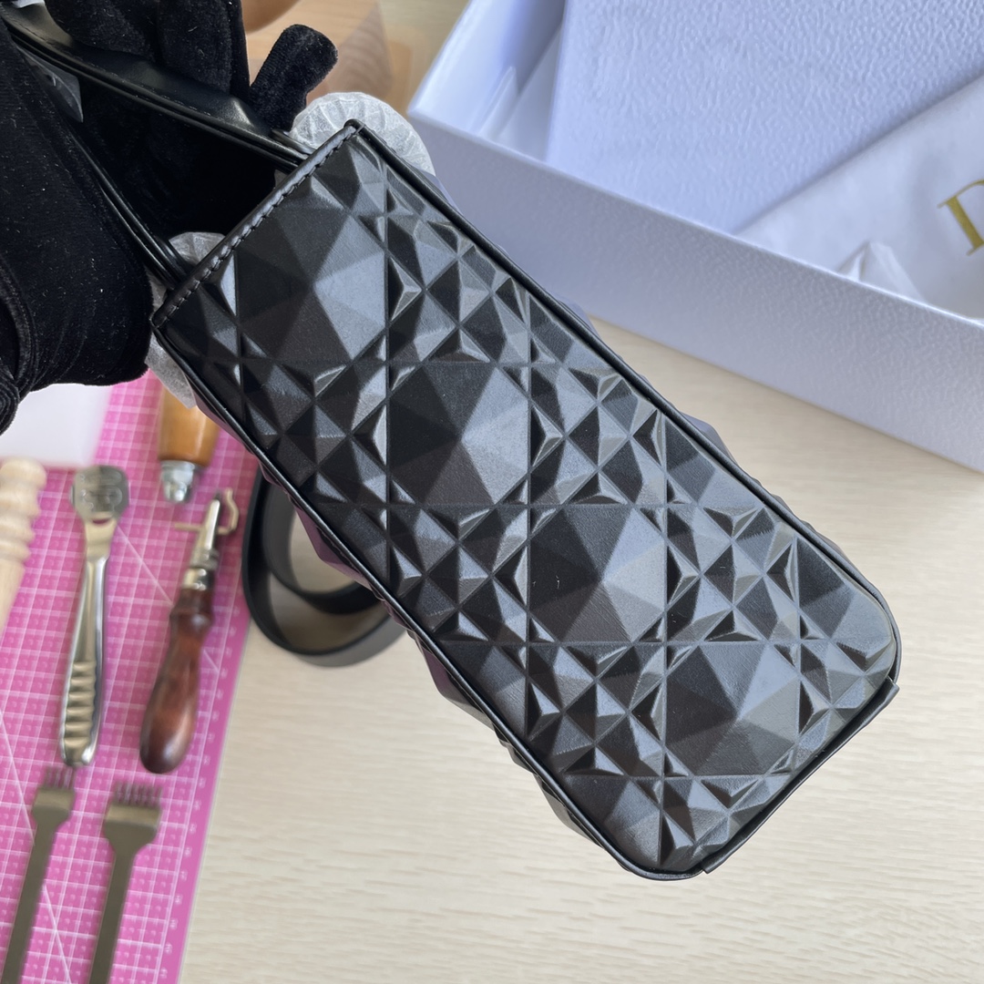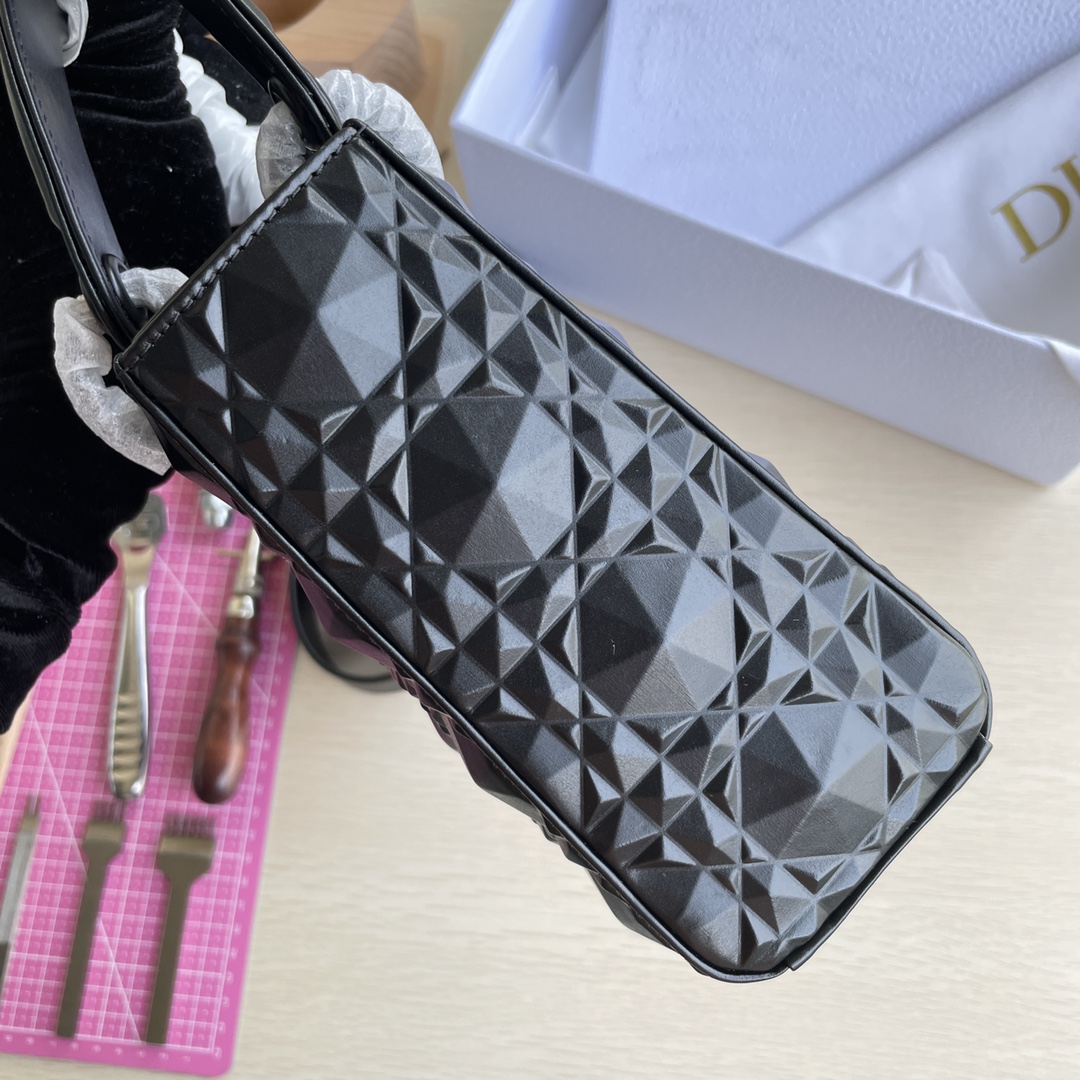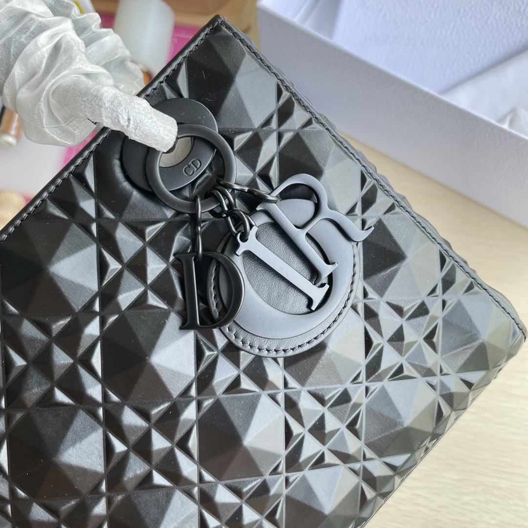 This Lady D-Joy handbag interprets Dior's profound insight into elegance and beauty. The elegant and classic style features diamond-patterned calfskin fabric. It is adorned with a black metal "D.I.O.R." charm that enhances the style, adding a touch of dynamism to the exquisite silhouette. It comes with a detachable and adjustable leather strap, allowing it to be carried by hand, on the shoulder, or cross-body, making it an ideal choice for everyday styling. Dimensions: Four compartments 20.5*8.5*17