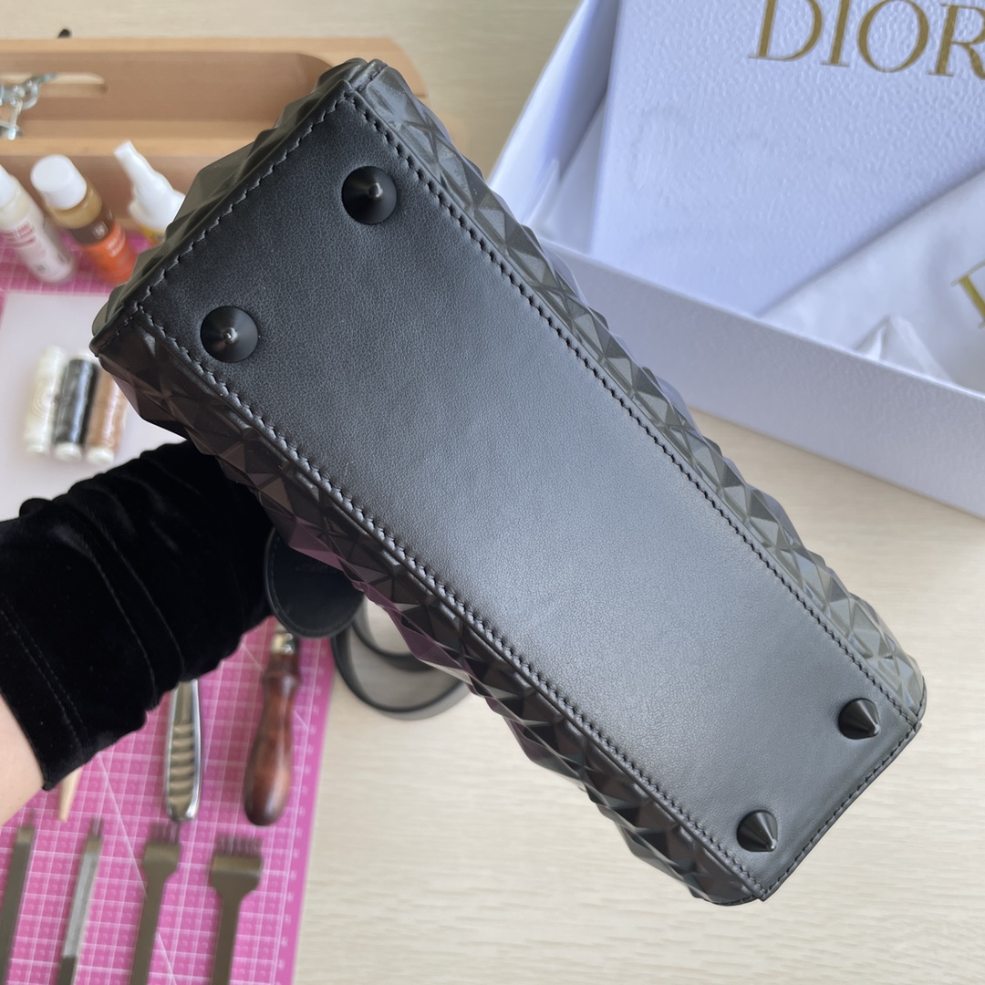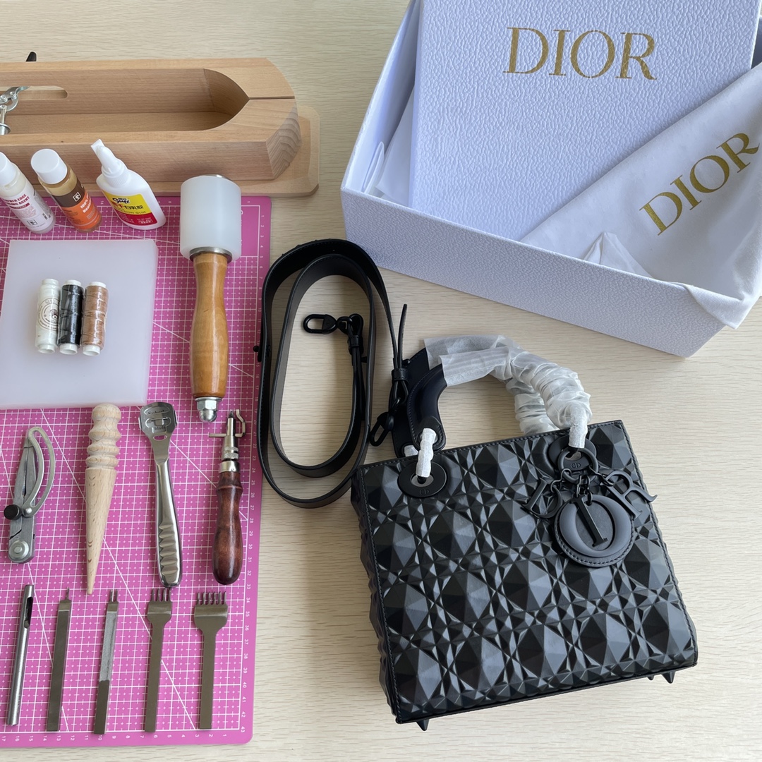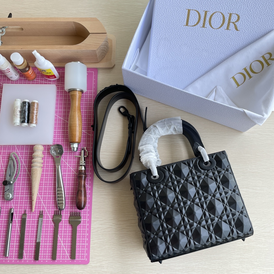 This Lady D-Joy handbag interprets Dior's profound insight into elegance and beauty. The elegant and classic style features diamond-patterned calfskin fabric. It is adorned with a black metal "D.I.O.R." charm that enhances the style, adding a touch of dynamism to the exquisite silhouette. It comes with a detachable and adjustable leather strap, allowing it to be carried by hand, on the shoulder, or cross-body, making it an ideal choice for everyday styling. Dimensions: Four compartments 20.5*8.5*17