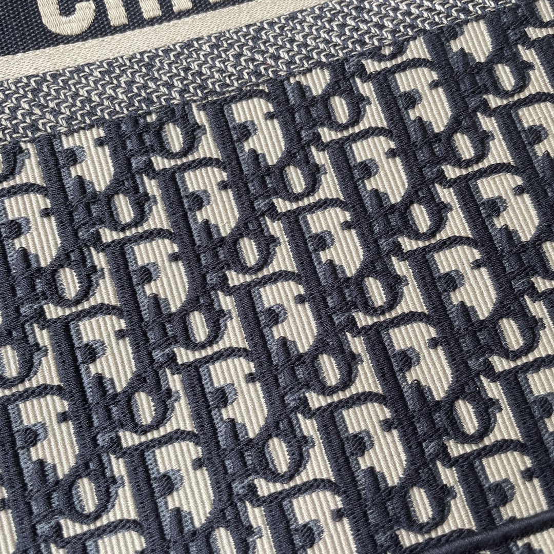 This Book Tote bag is designed by Dior's women's creative director Maria Grazia Chiuri and is a flagship item that embodies Dior's aesthetic. The large size can hold various daily essentials and is fully adorned with blue embroidered Oblique print. The front features the "CHRISTIAN DIOR" logo. This bag showcases Dior's iconic craftsmanship and can be carried by hand or on the shoulder. The front has the "CHRISTIAN DIOR" logo. Dimensions: 41.5x 35x 18 cm. Color: Blue.