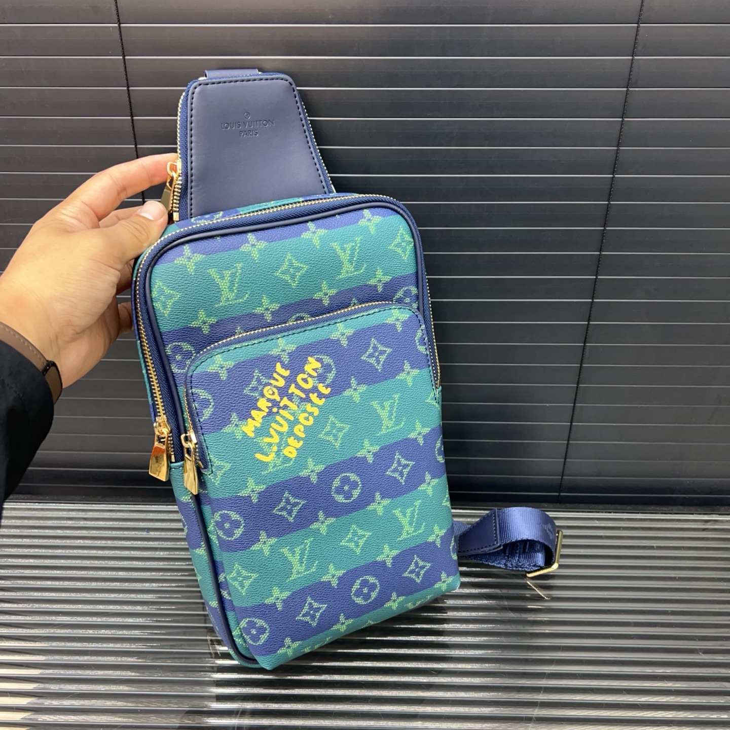 LV AVENUE Series Chest Bag, Calfskin Crossbody Bag, Unisex Shoulder Bag, Classic and Versatile. Real Product Photography. Original Factory Materials. Includes Dust Bag. 32 x 21 cm.