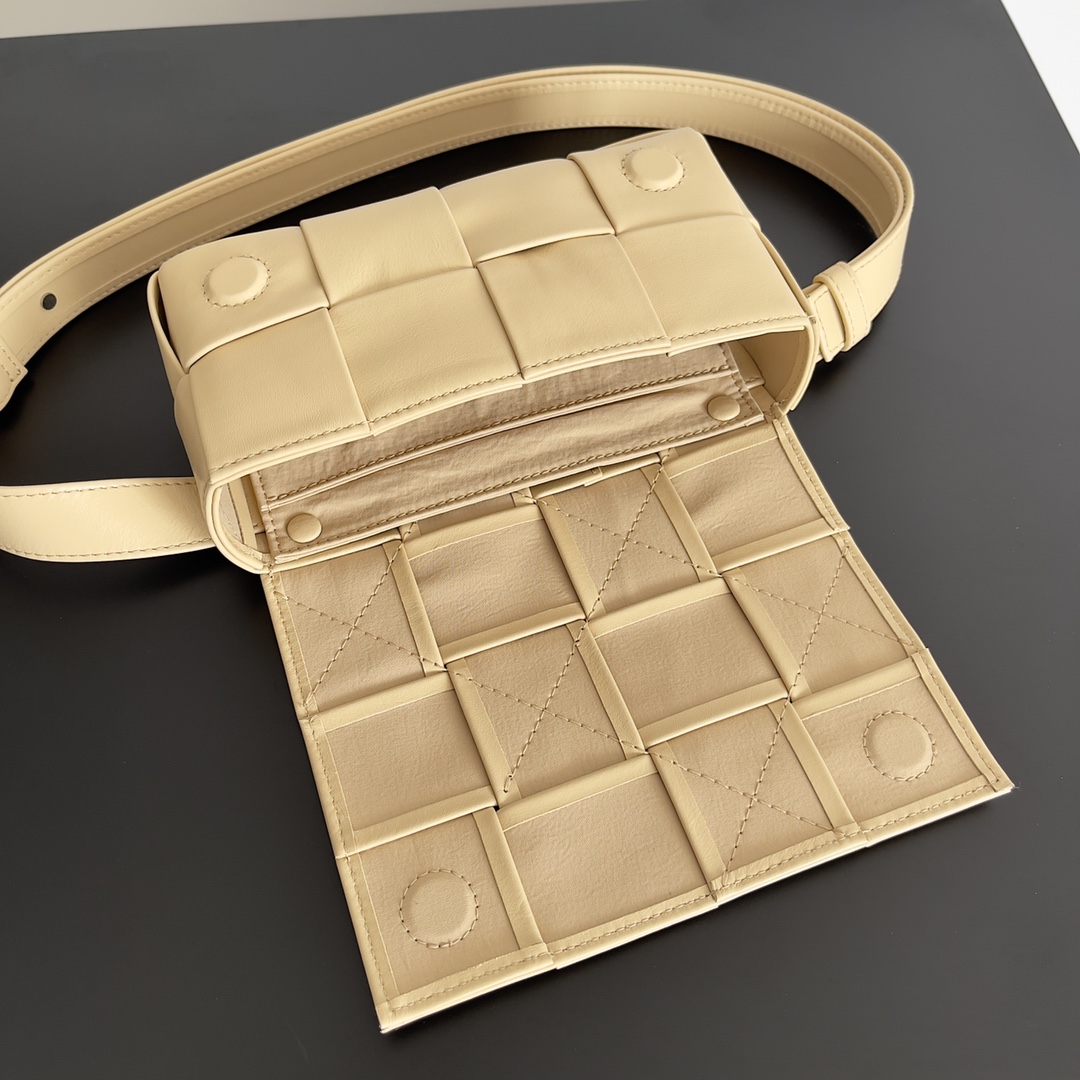 The popular cassette has a new version! Top-grade waxed calfskin material is very lightweight and full of high-end feel. Can be worn as a crossbody, handheld, waist bag, or shoulder bag (adjustable strap). It continues the square shape of the cassette, and won't deform when items are placed inside, making it great for styling! Only the highest end in the market, welcome to compare.
