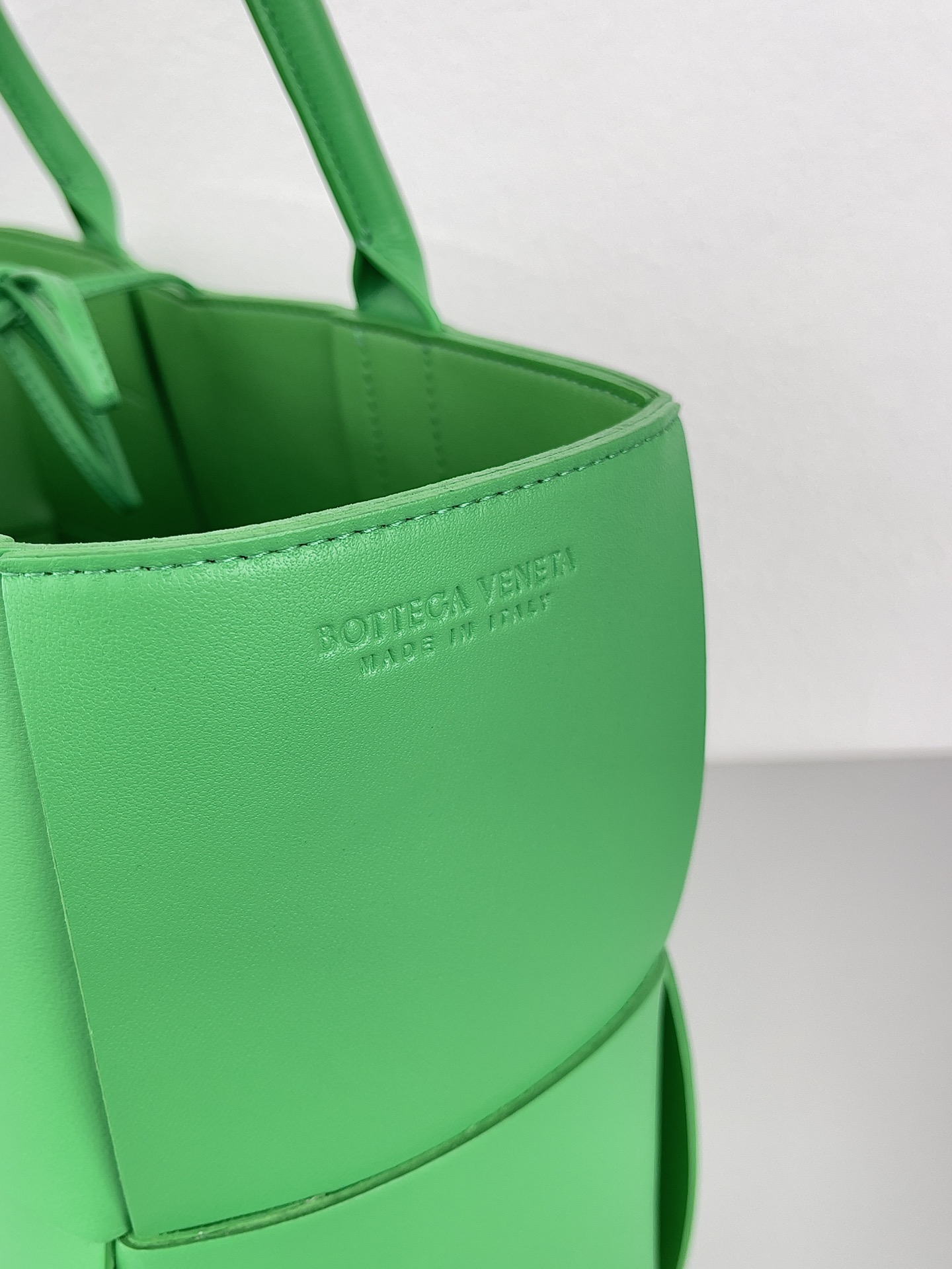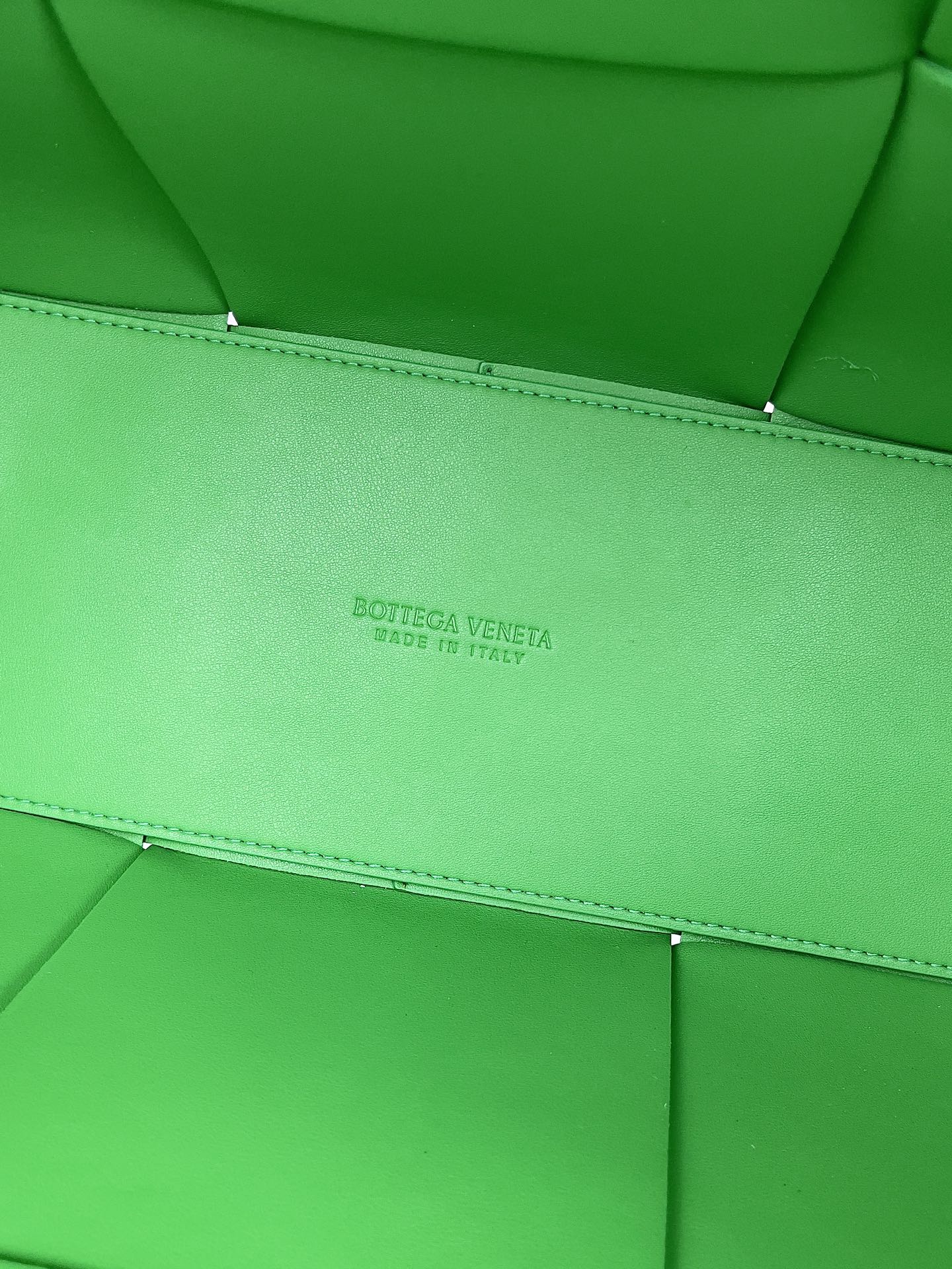 Home • Luggage • Botega Veneta large rectangular tote bag in parrot green. Features traditional intrecciato woven leather, includes small card holder. Size: 38*25*14cm. Model: 609175.