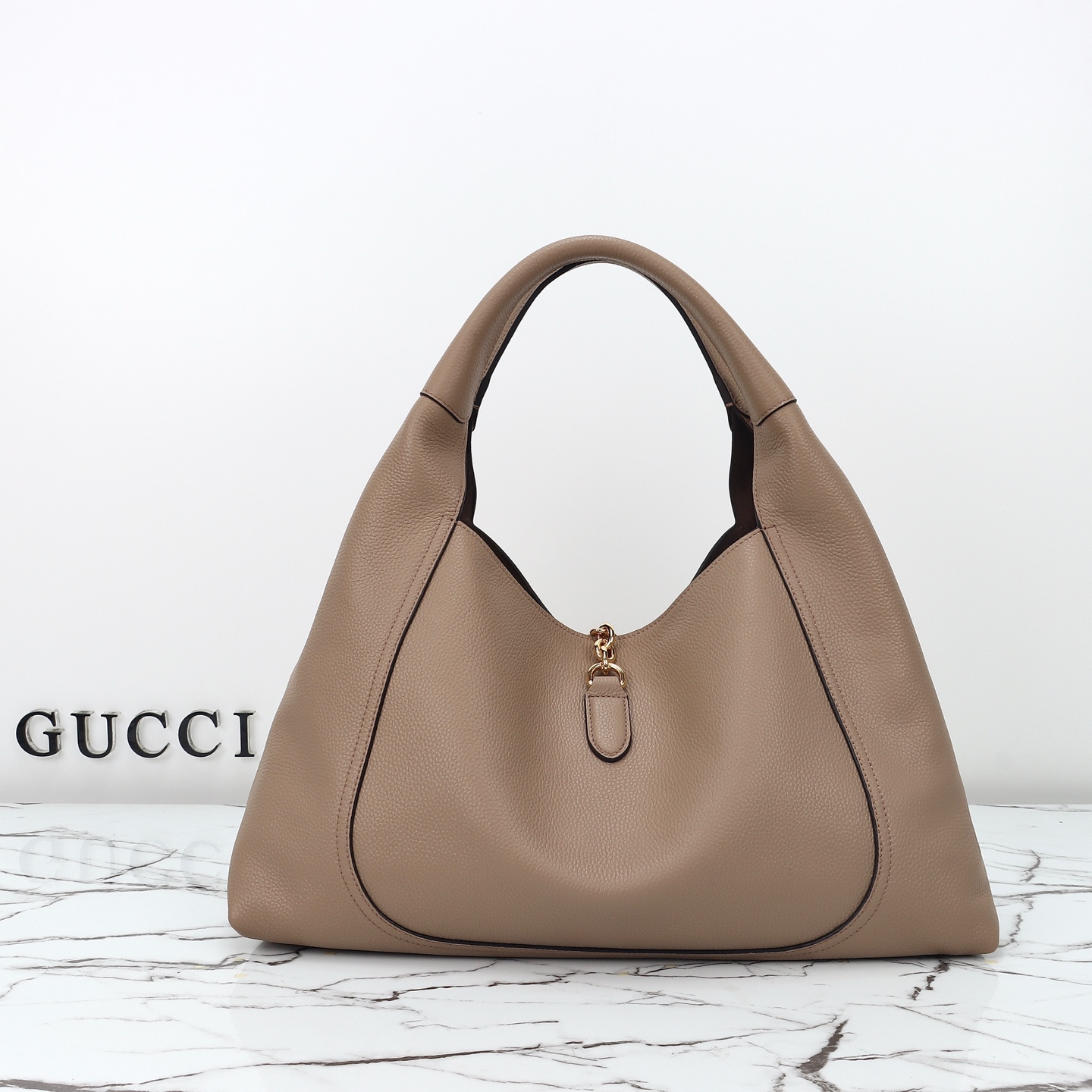 Genuine leather, style number 837466 in taupe. Dimensions: width 46 x height 26 x side width 16. Ready stock available for shipment!
