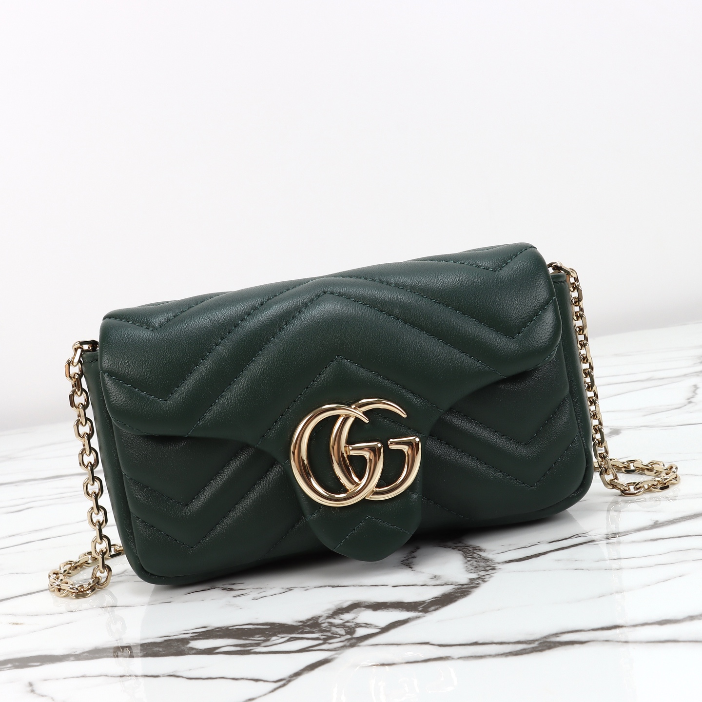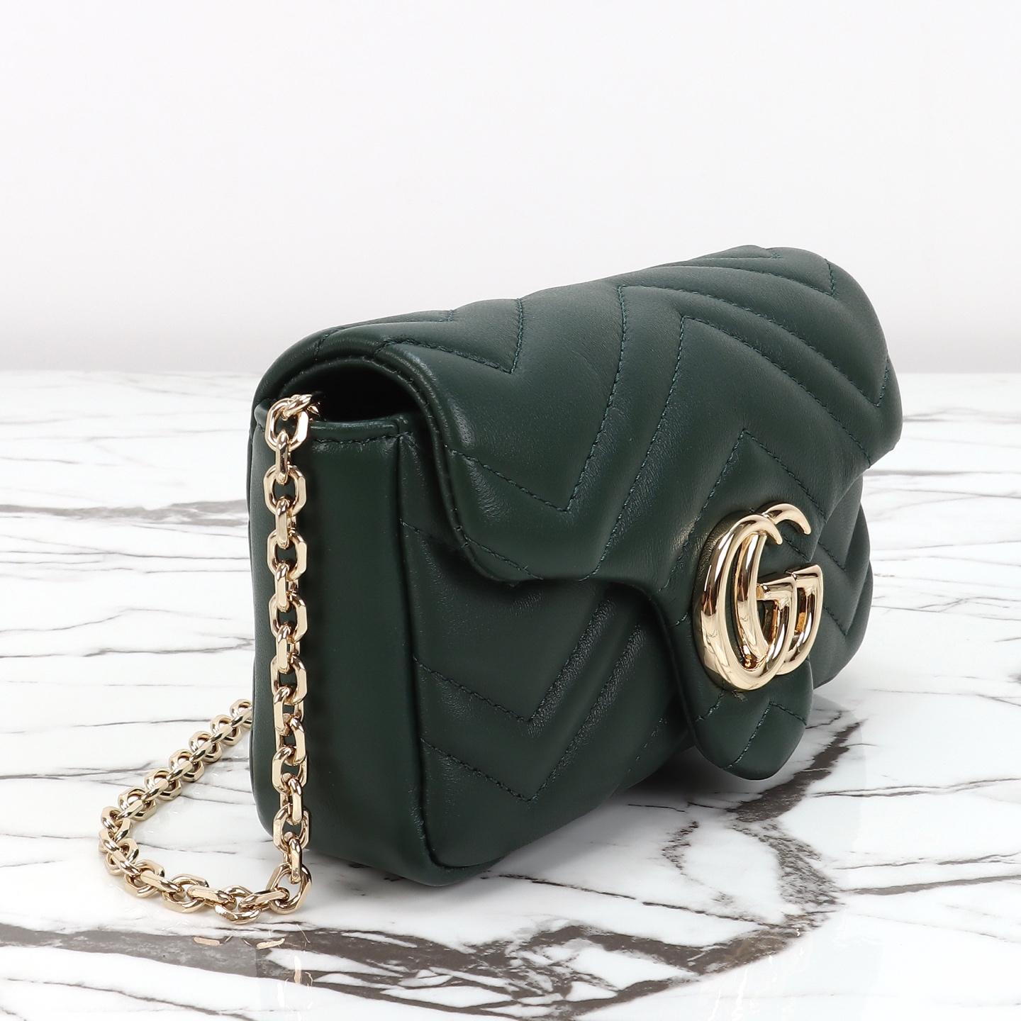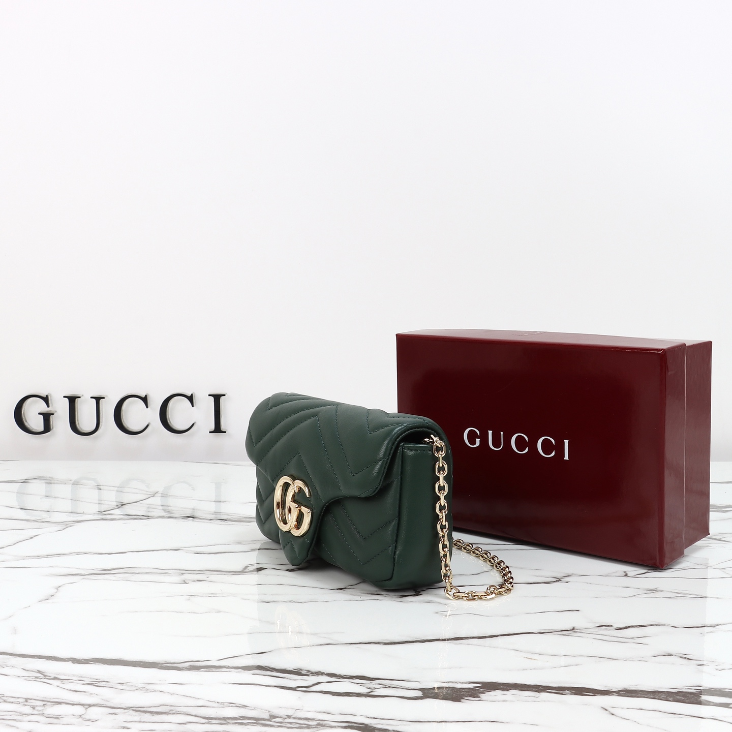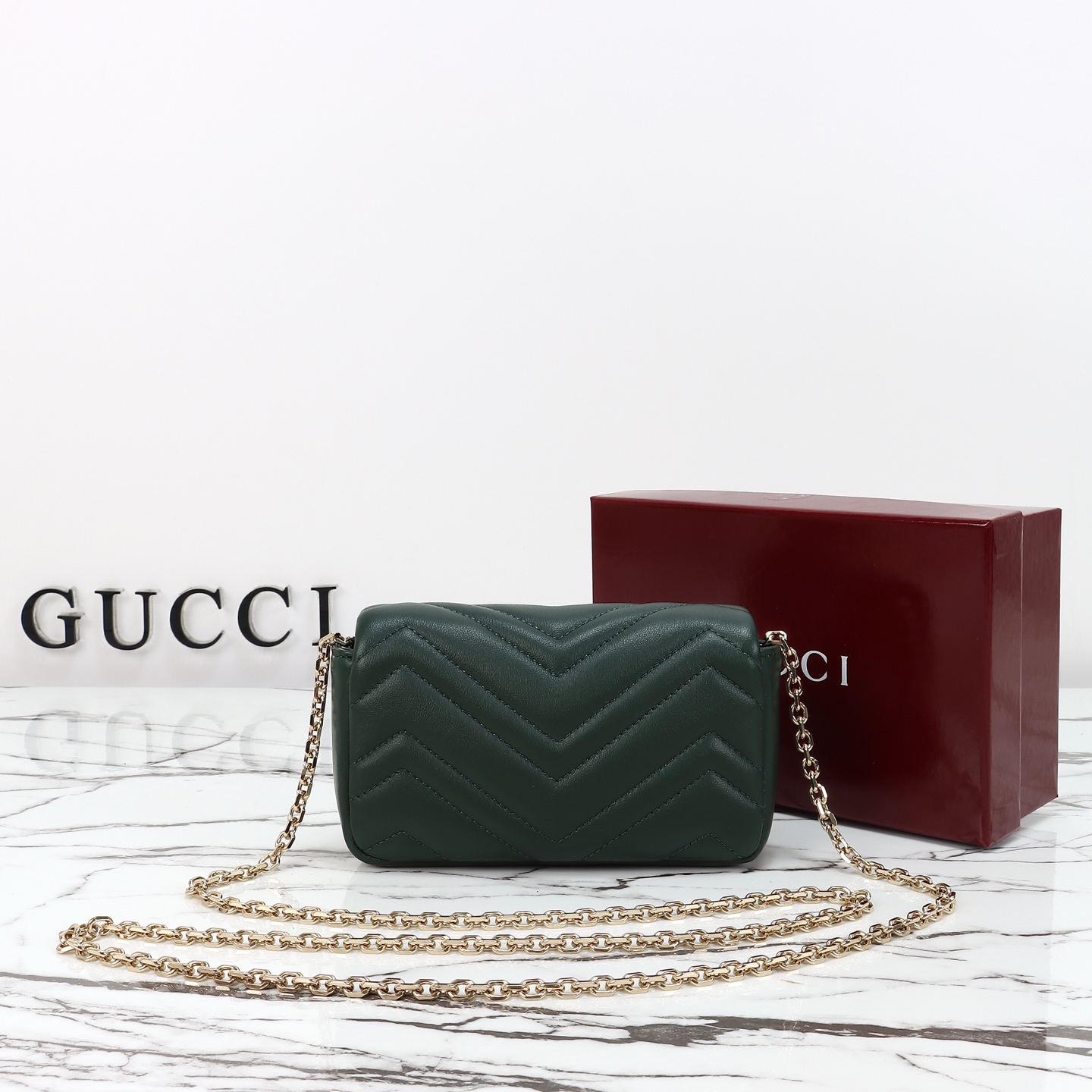 Counter quality, original factory leather, style number 841290 green leather. Dimensions: width 16.5 x height 9.5 x side width 4.5. Ready stock available!