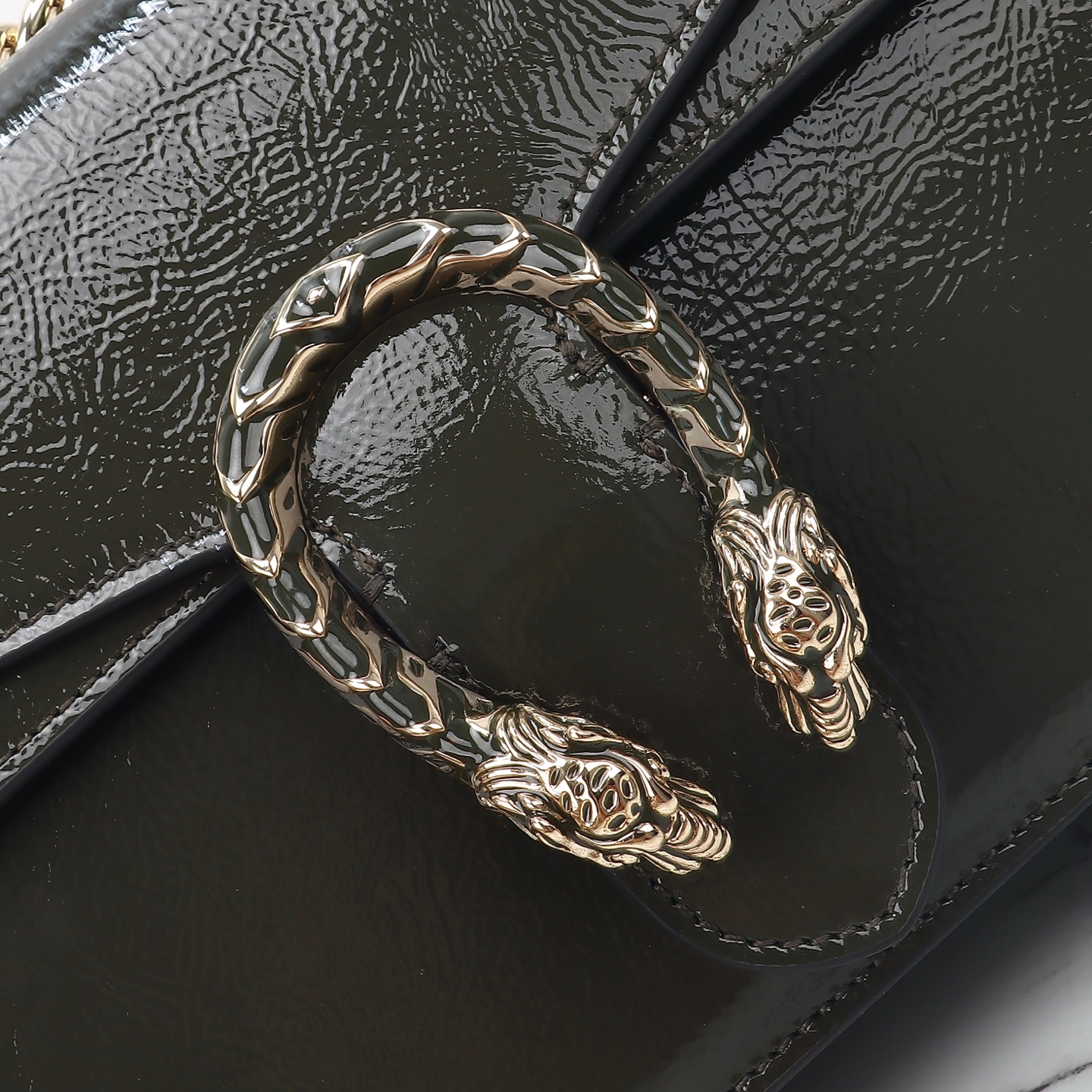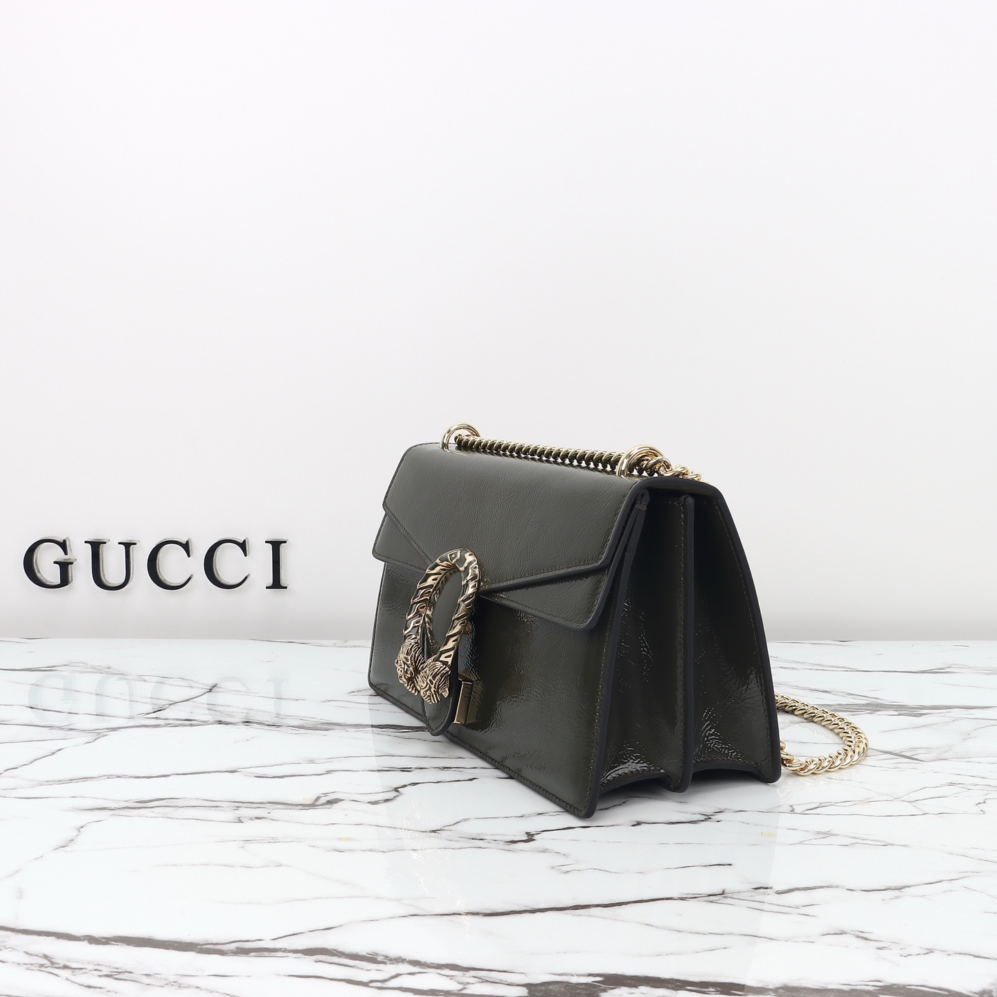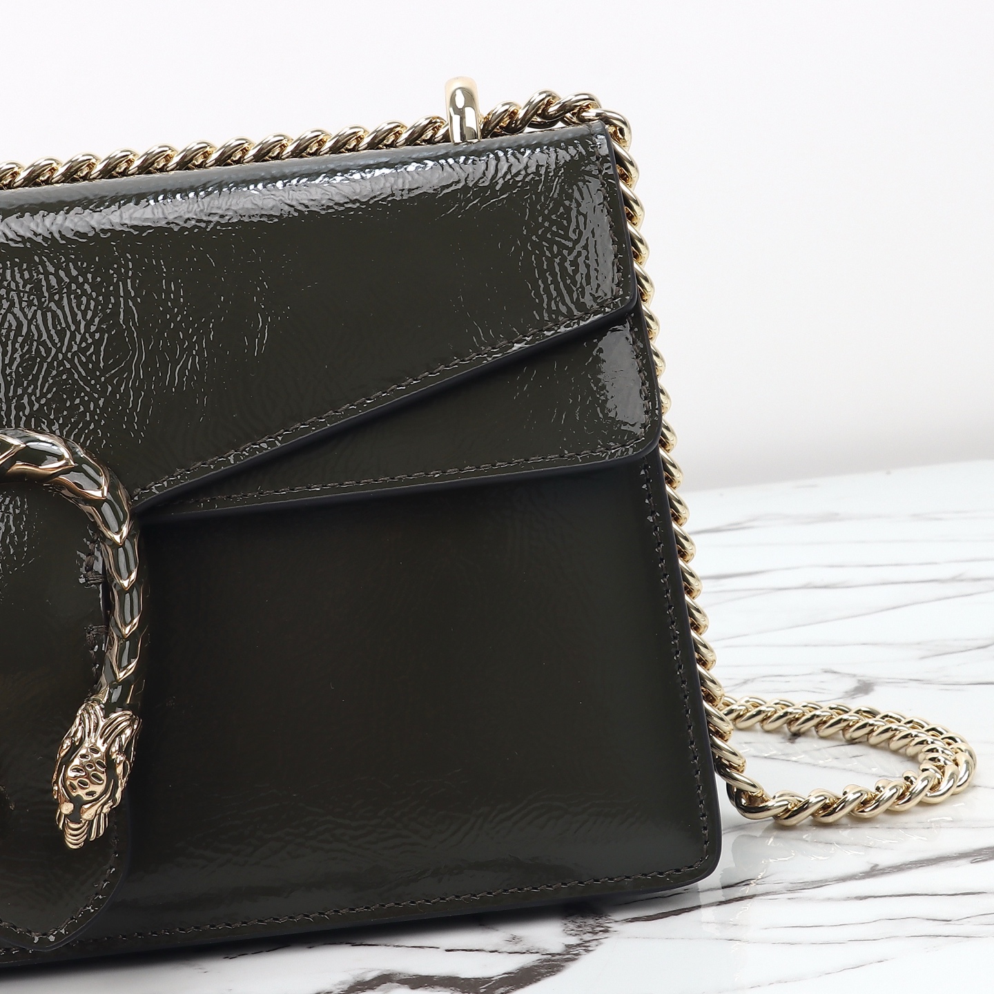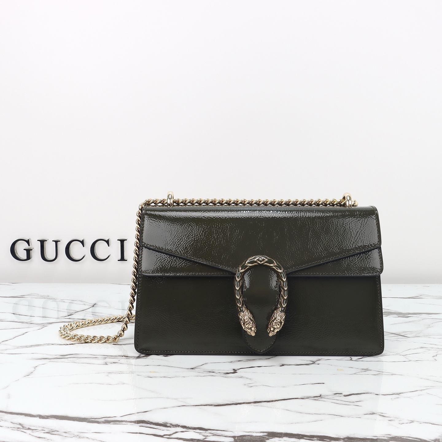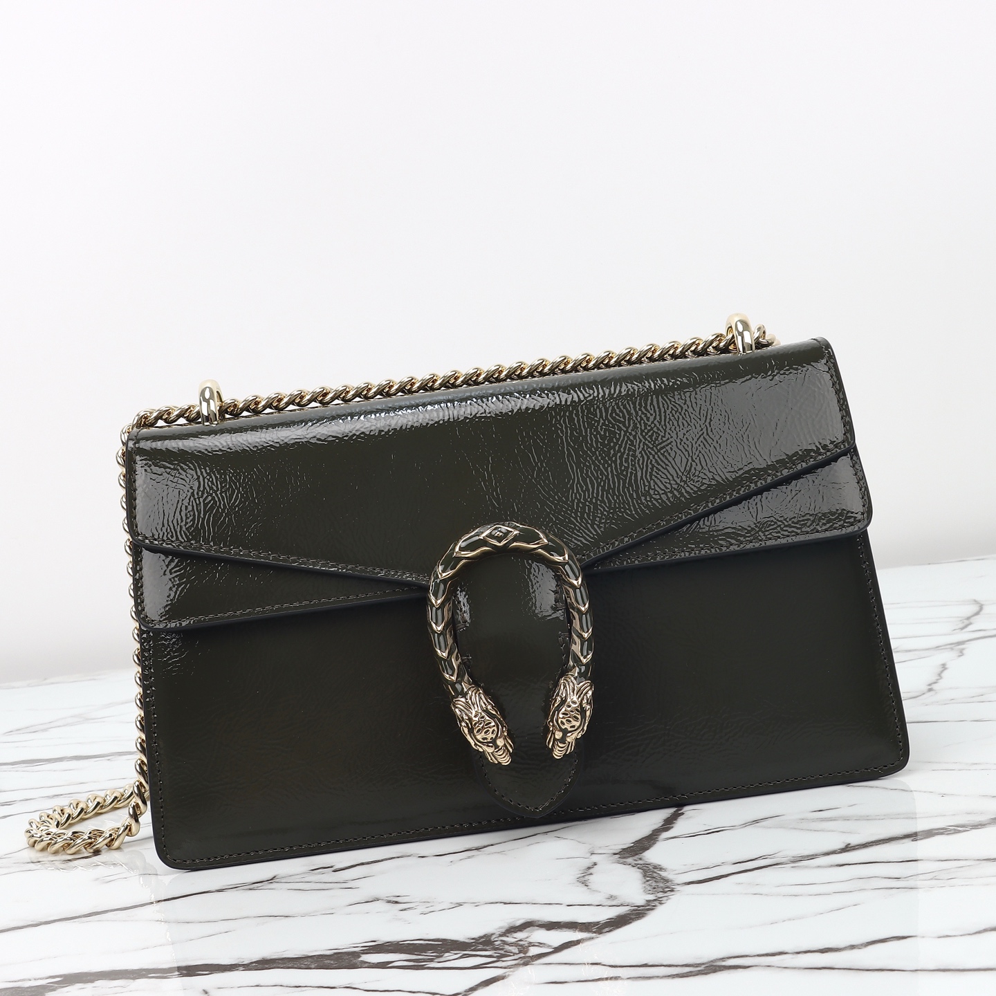 Batch 610, counter quality, original factory leather, style number 795005 forest green patent leather. Dimensions: width 28 x height 16 x side width 10.5. Ready stock available!