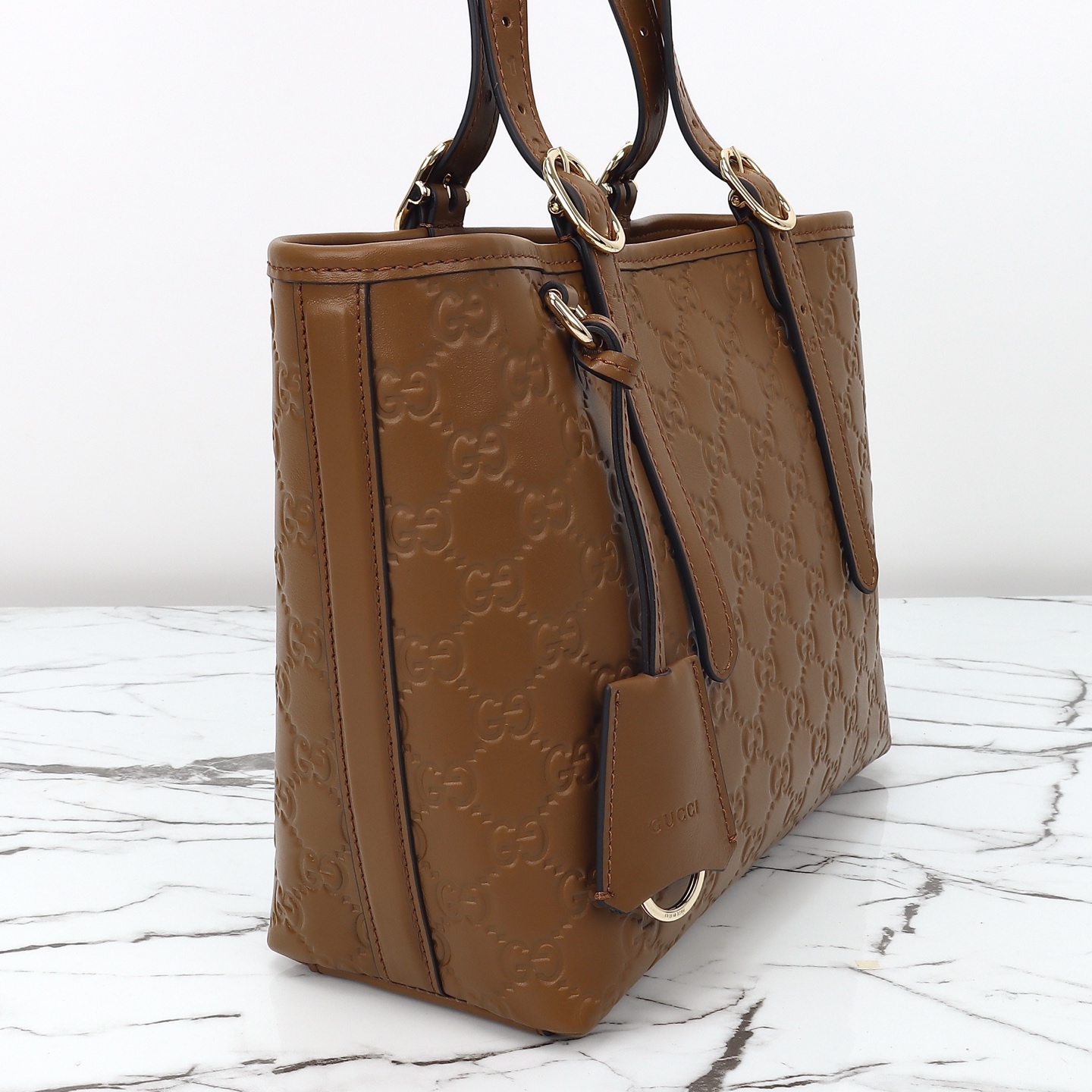 Batch 450, counter quality, original factory leather, style number 847456 brown embossed. Dimensions: width 25 x height 20 x side width 10. Ready stock available!