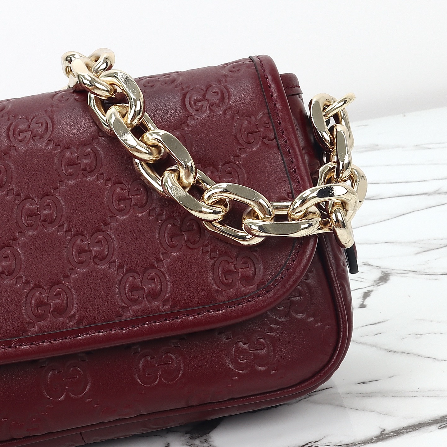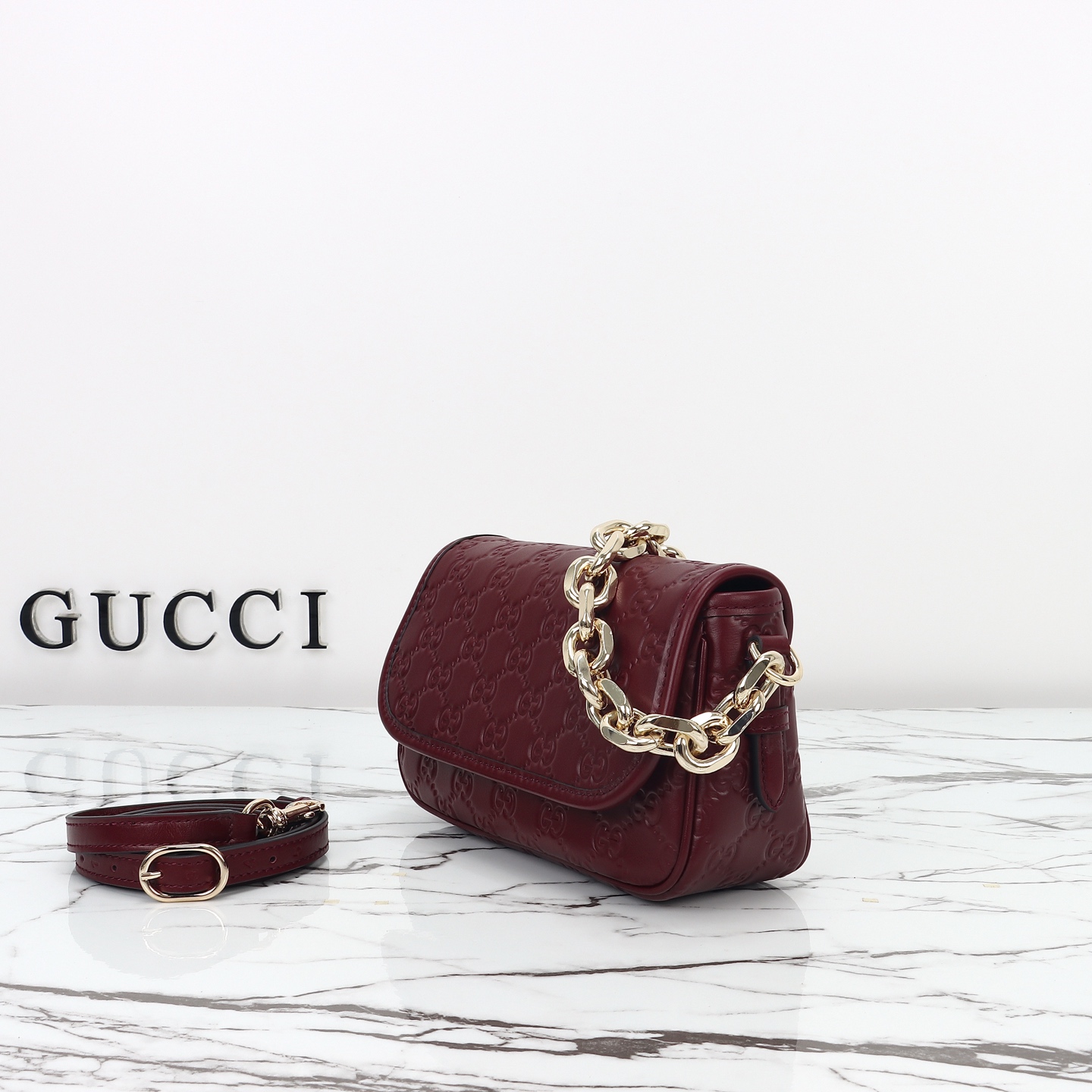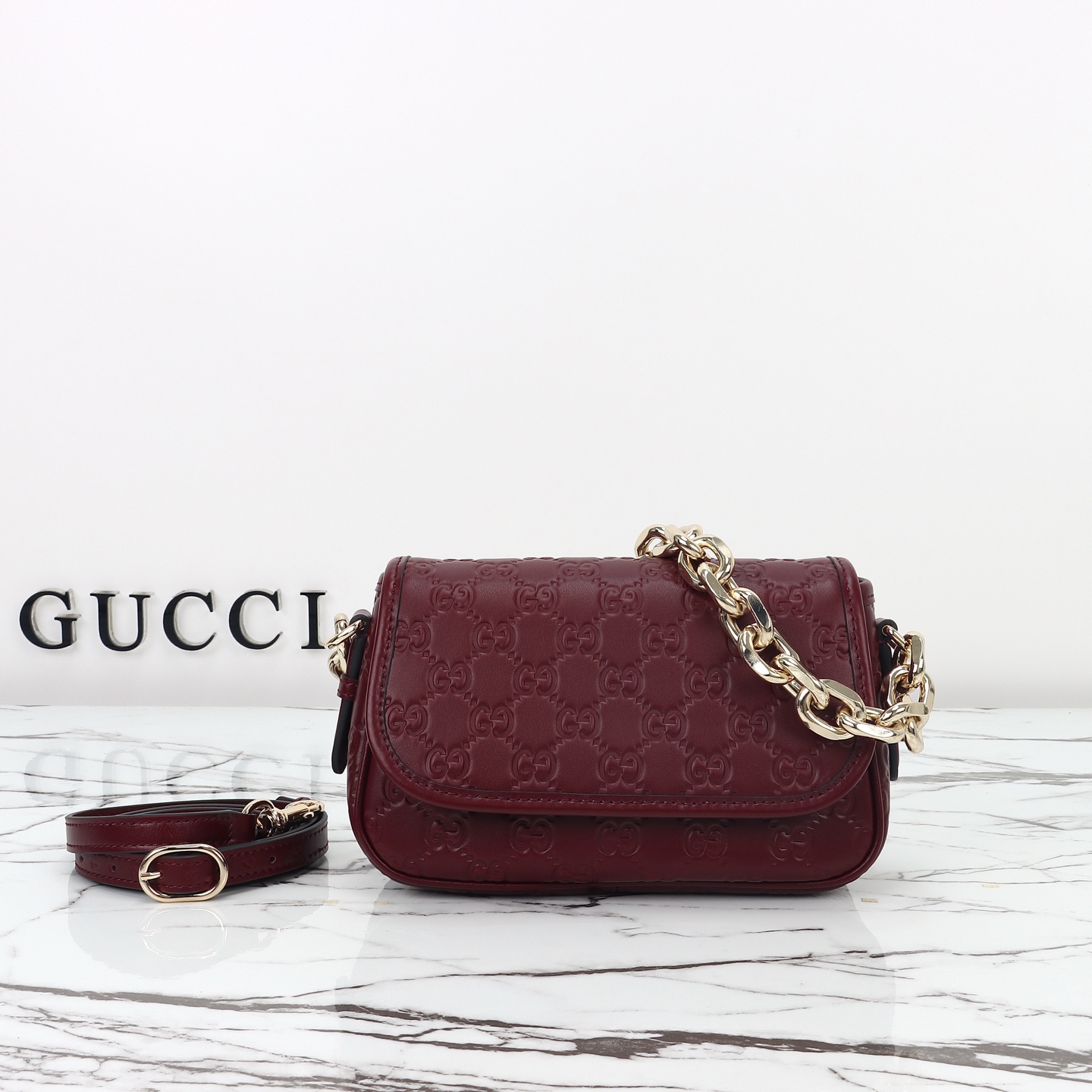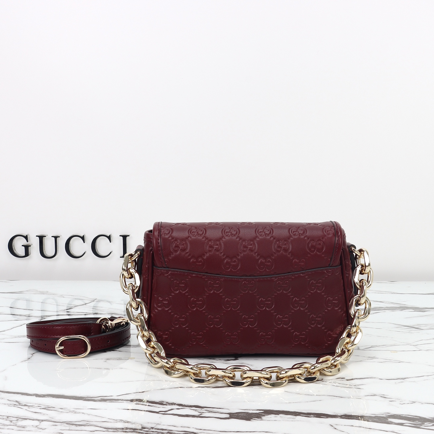Counter quality, original factory leather, style number 847448 red embossing. Dimensions: width 20.5 x height 13 x side width 7. Ready stock available!