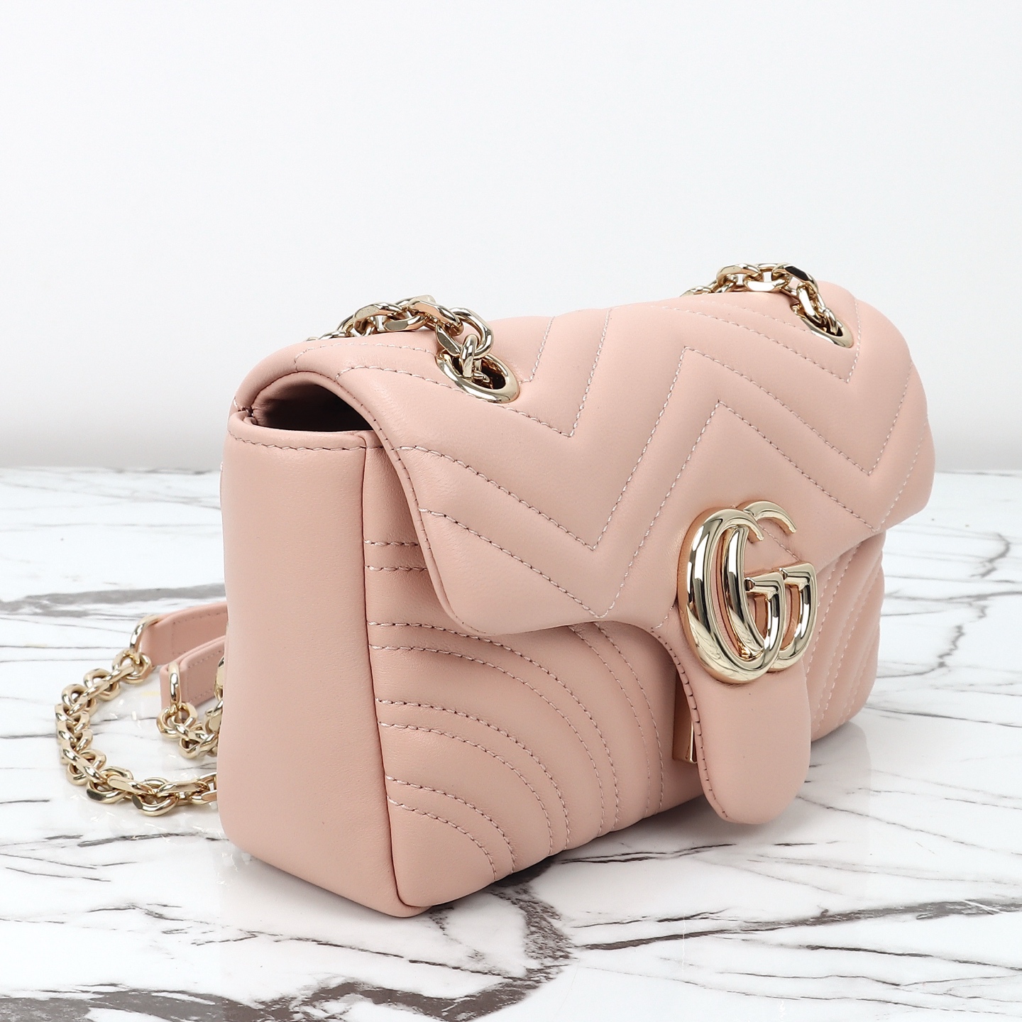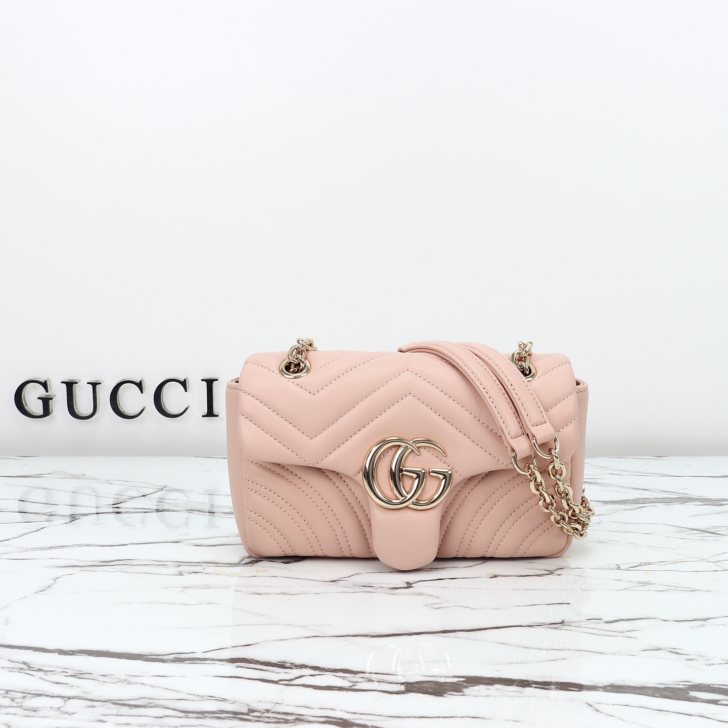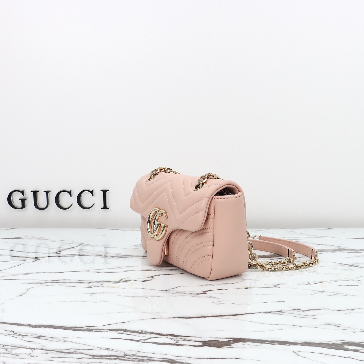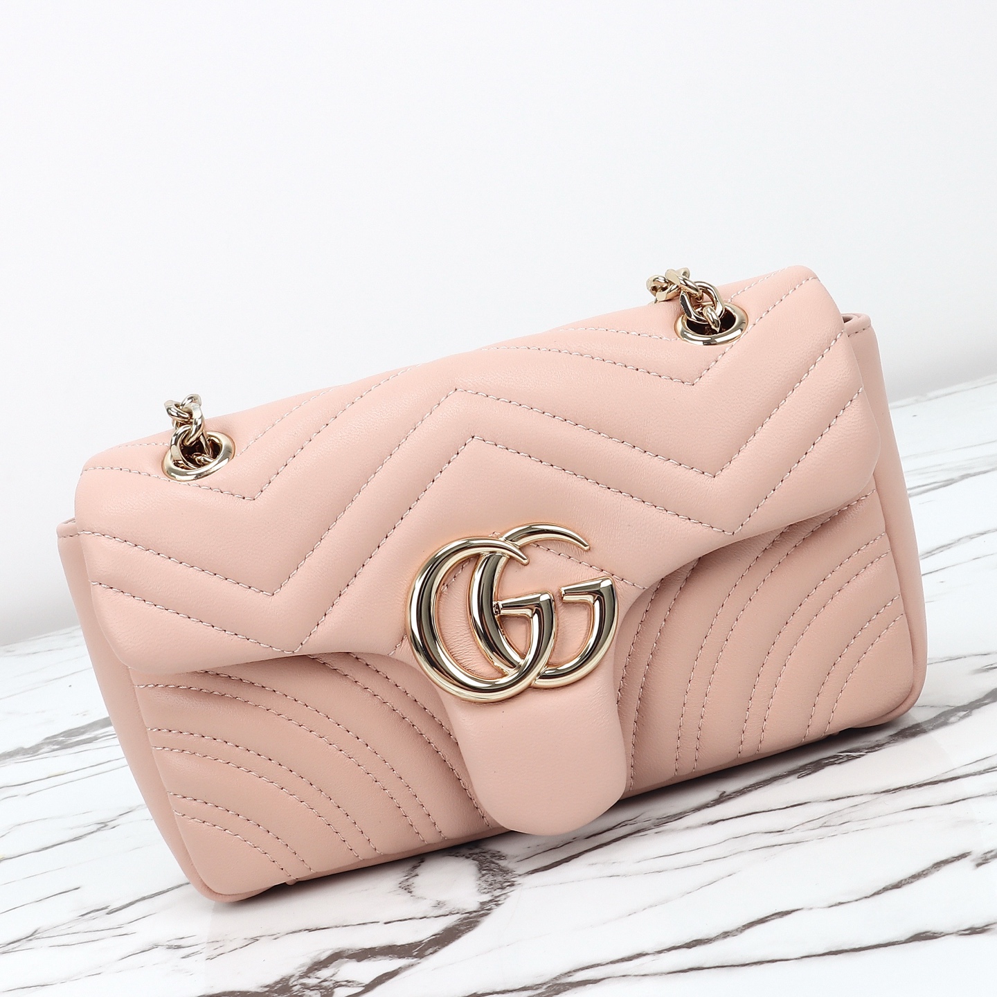 Counter quality, original factory leather, style number 837280 light pink. Dimensions: width 22 x height 12.5 x side width 6. Ready stock available for shipment!