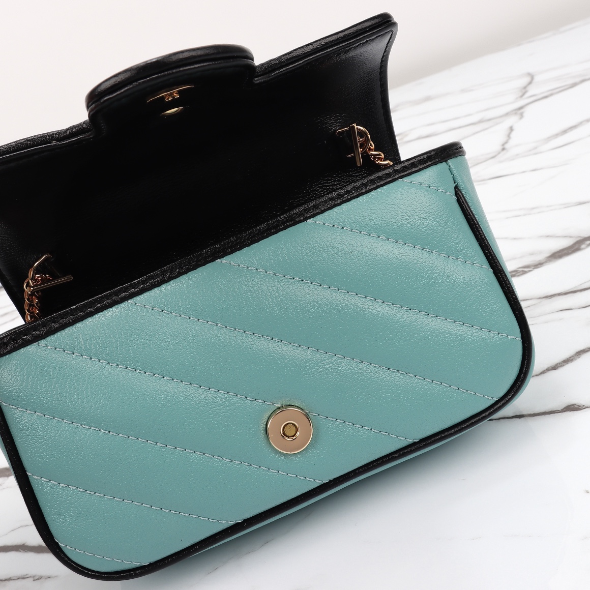 Wholesale 310, counter quality, original factory leather, style number 574969 Apricot Blue. Size: width 17.5 x height 11.5 x side width 4. Ready stock available for shipment!