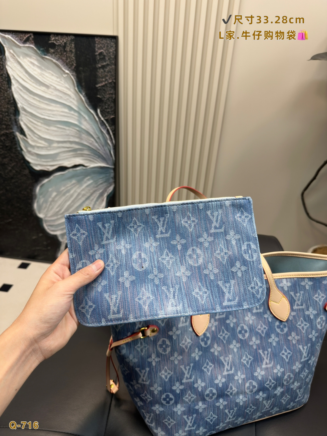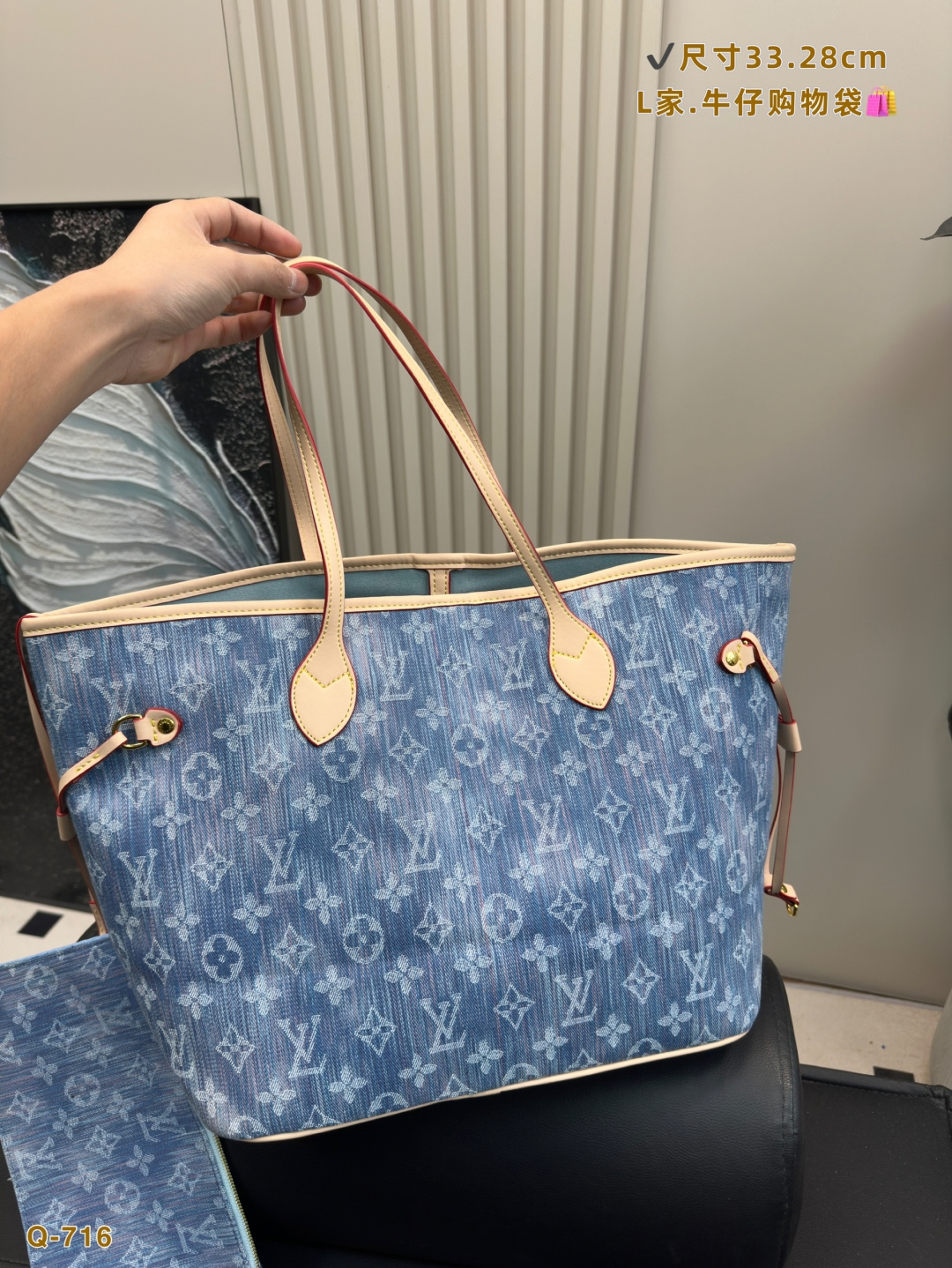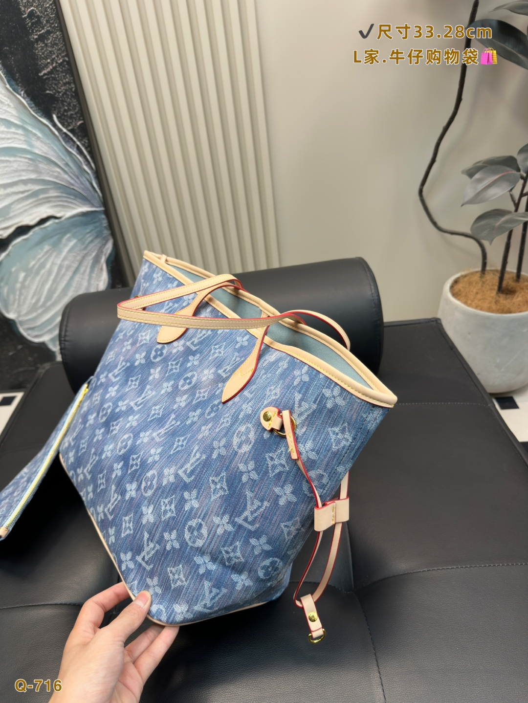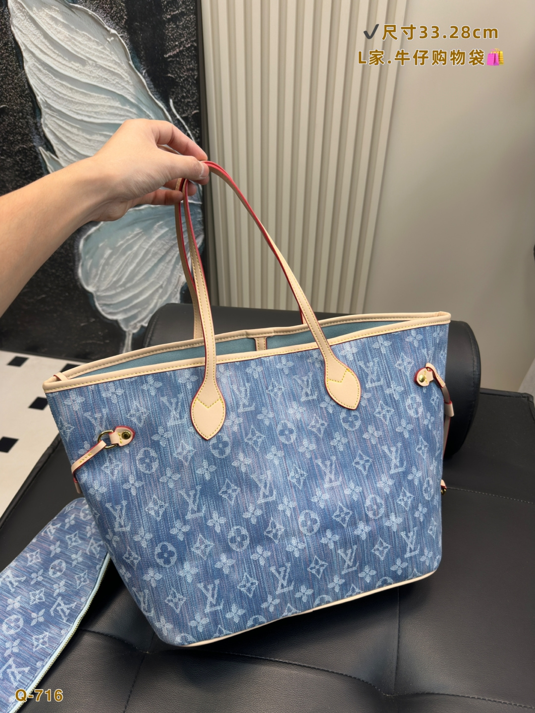 LV Neverfull denim tote bag. I never understood the appeal of the classic NF bag before. The LV Neverfull is arguably one of Louis Vuitton's most iconic bag styles and is often the first luxury bag or first LV bag choice for many. I didn't use it much before, thinking it was too big or a bit outdated and hard to style. Until one day, I took an LV scarf that I originally bought as part of a purchase requirement and tied it onto the NF bag—suddenly, it looked incredibly beautiful! The main compartment is perfect for holding touch-up makeup, and the space is super spacious and practical. The thin straps look great whether worn on the shoulder or carried by hand. A classic is truly a classic—no matter how much time passes, it always feels timeless and intriguing. It's a highly valuable LV piece.