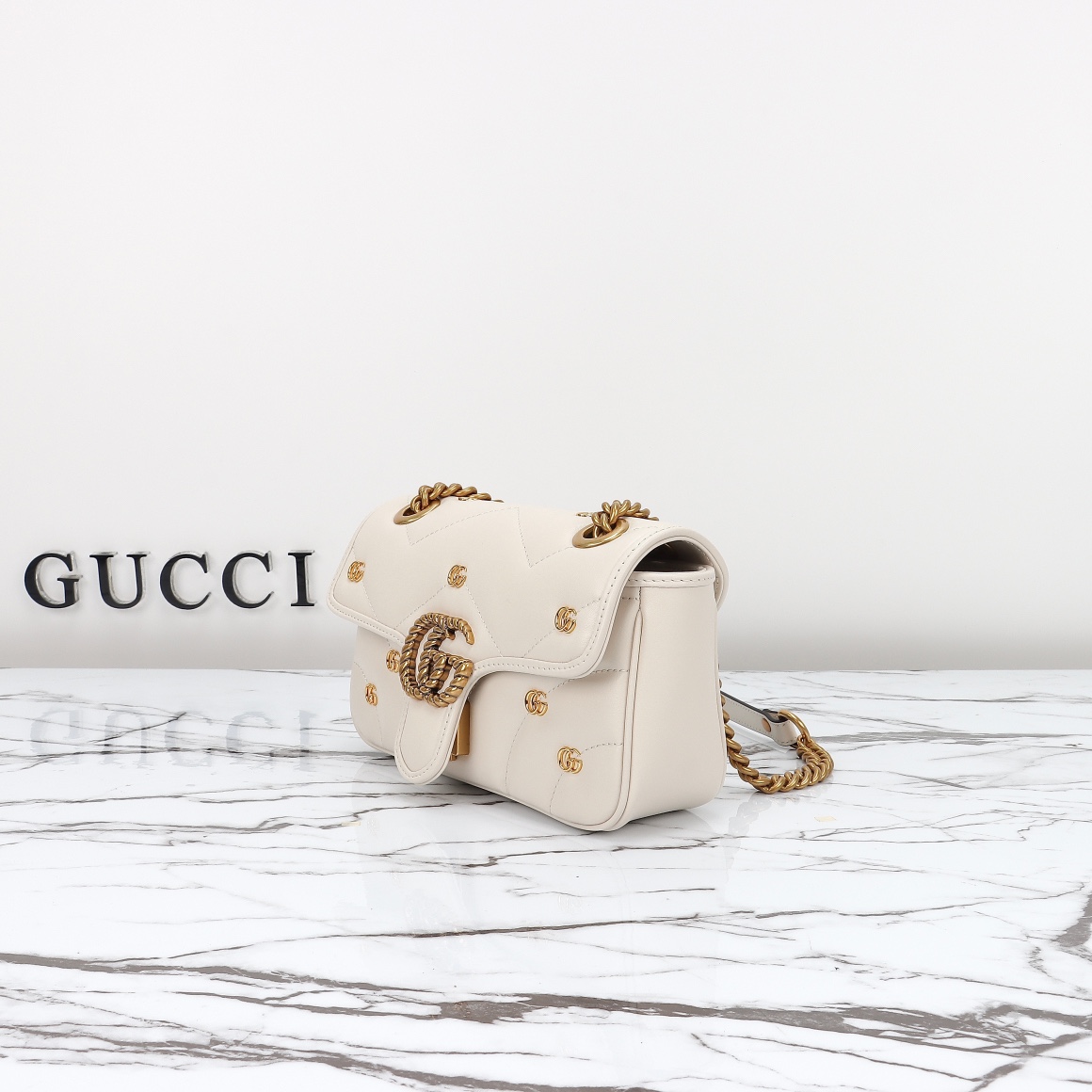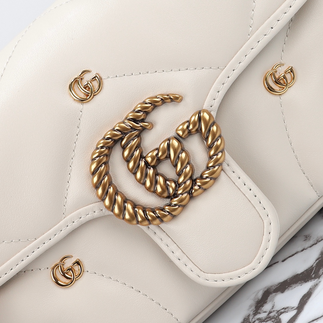 Counter quality, original factory leather, style number 446744 white leather small double G. Dimensions: width 22 x height 13 x side width 6. Ready stock available!