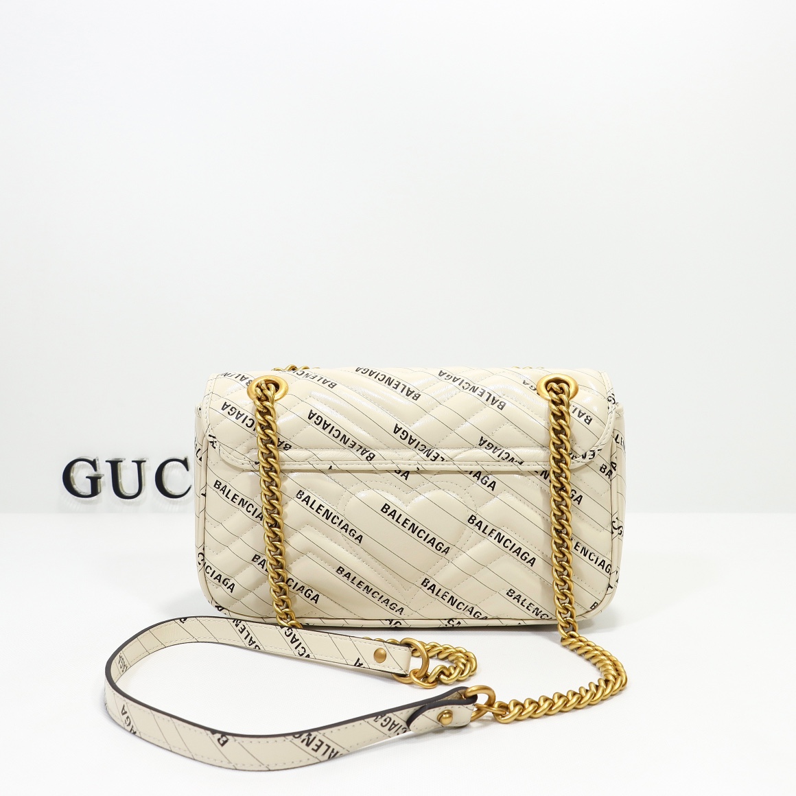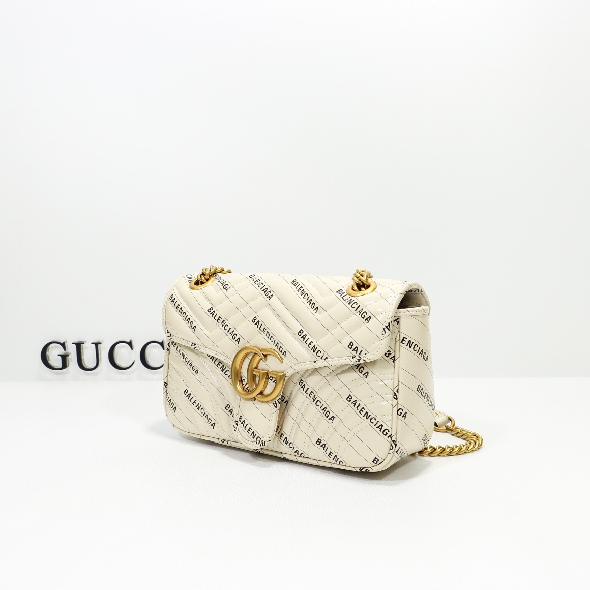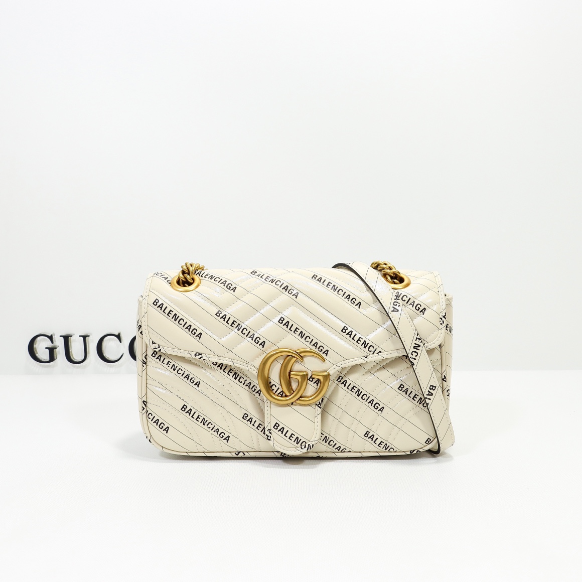 Batch 500, counter quality, original factory leather, style number 443497 white leather collaboration. Dimensions: width 26 x height 15 x side width 7. Ready stock available now!