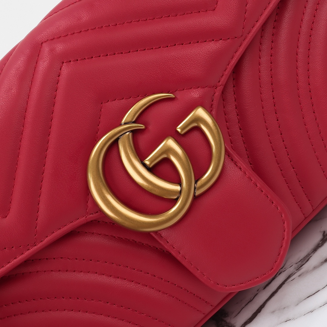 High-quality, genuine leather, style number 443497 new red. Dimensions: width 26 x height 15 x side width 7. Ready stock available now!