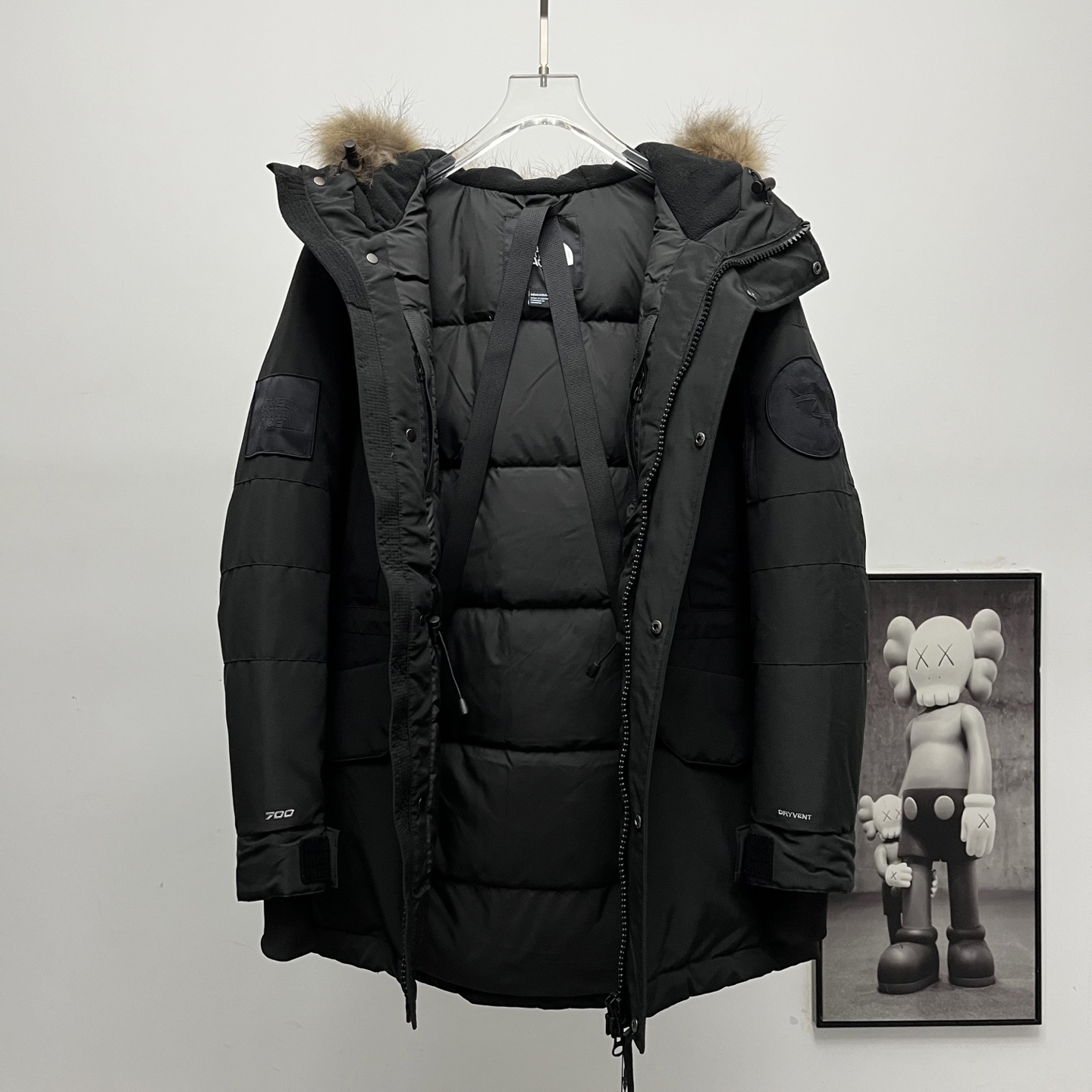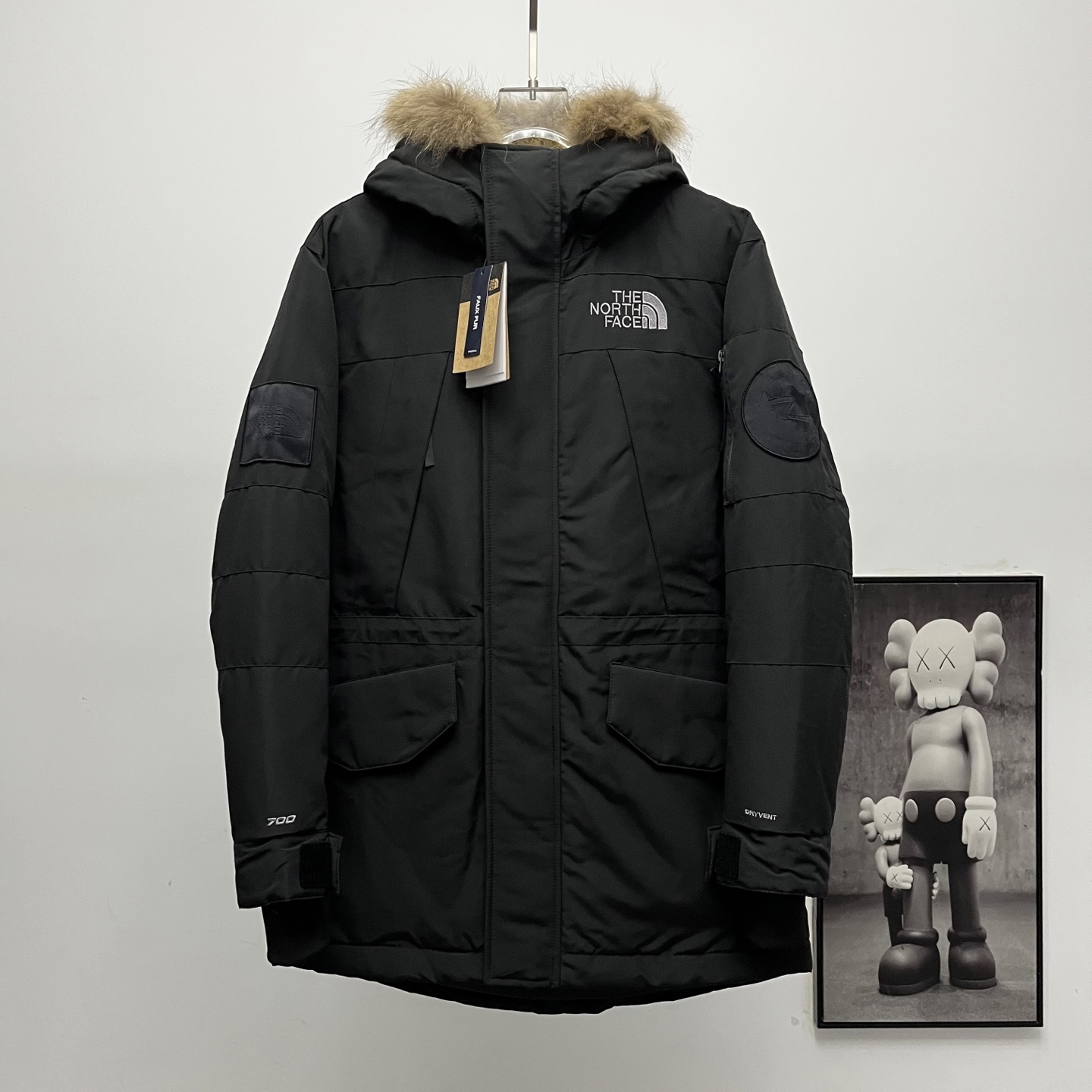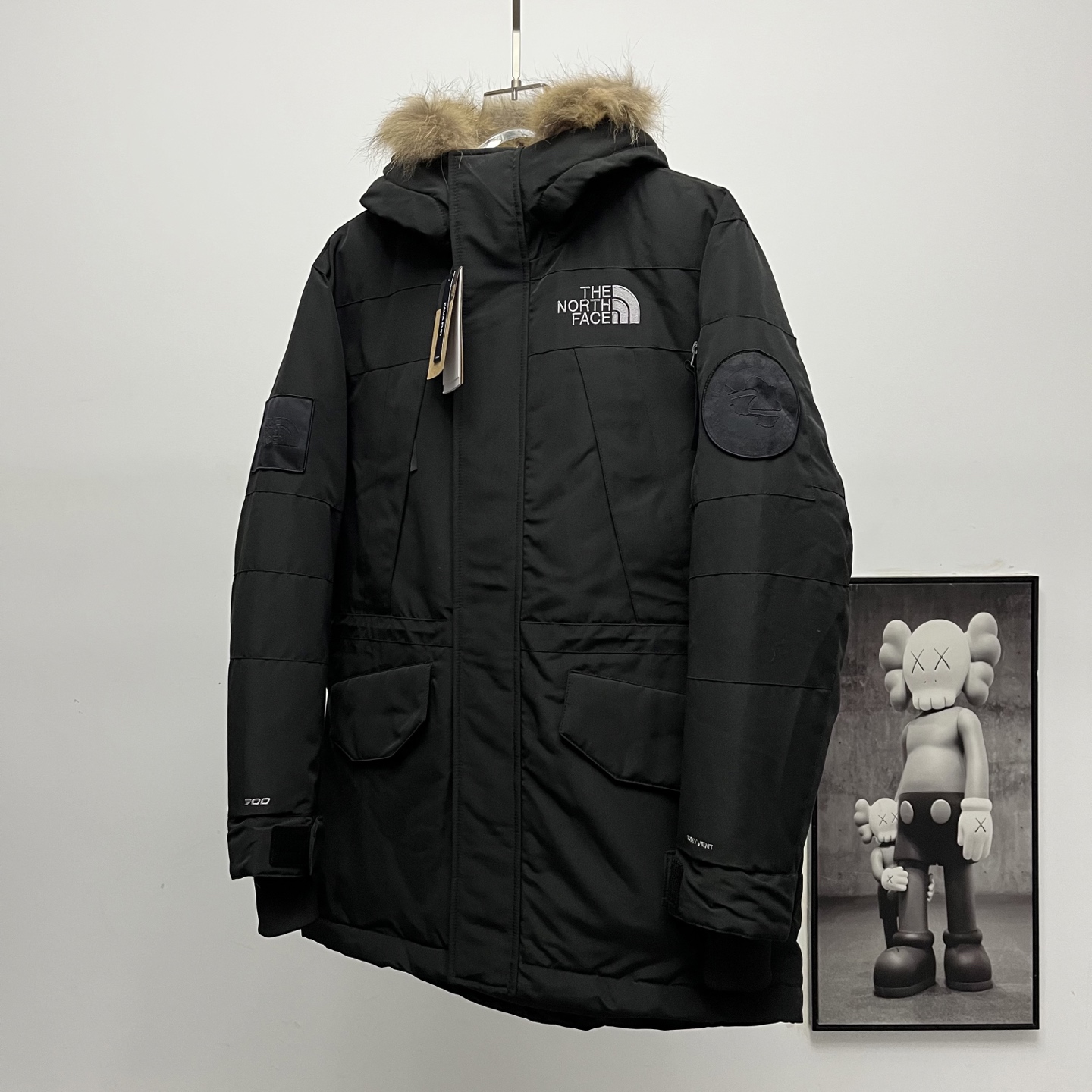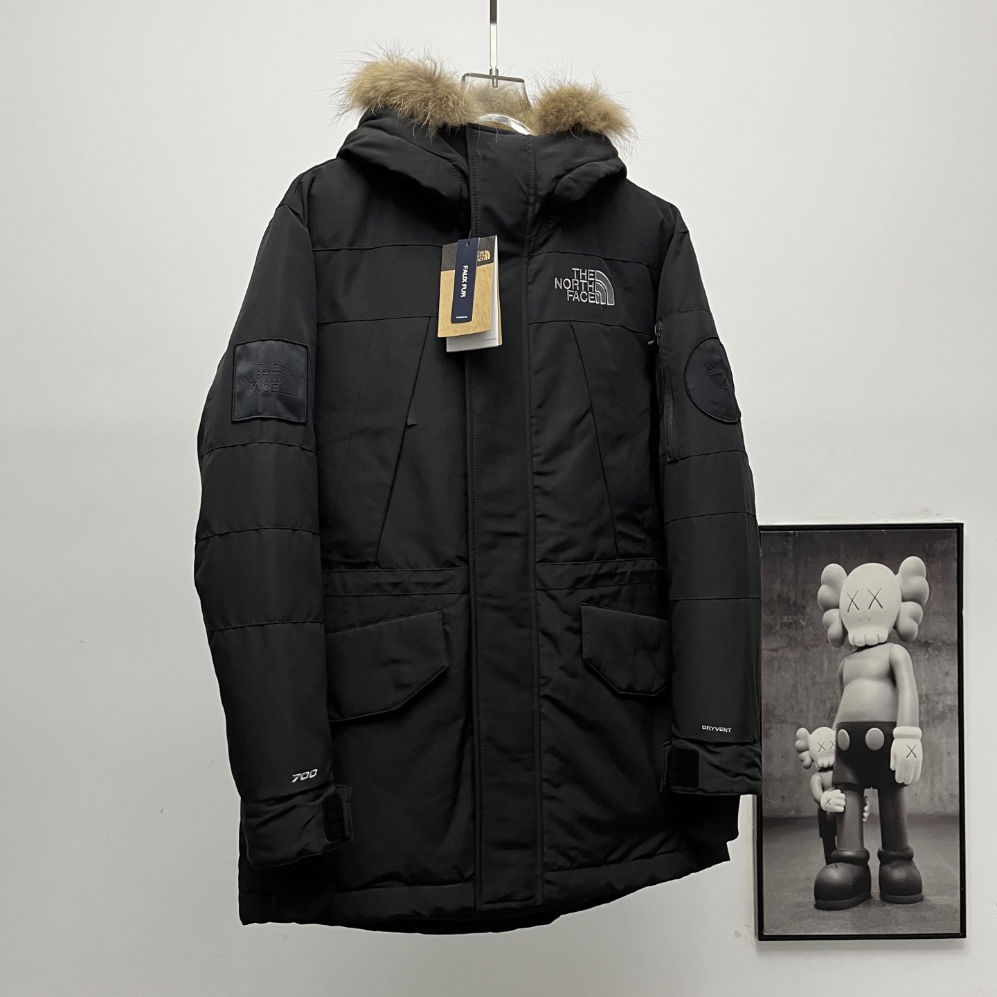 Terminal supply TNF North Face Expedition long down jacket with large fur collar.