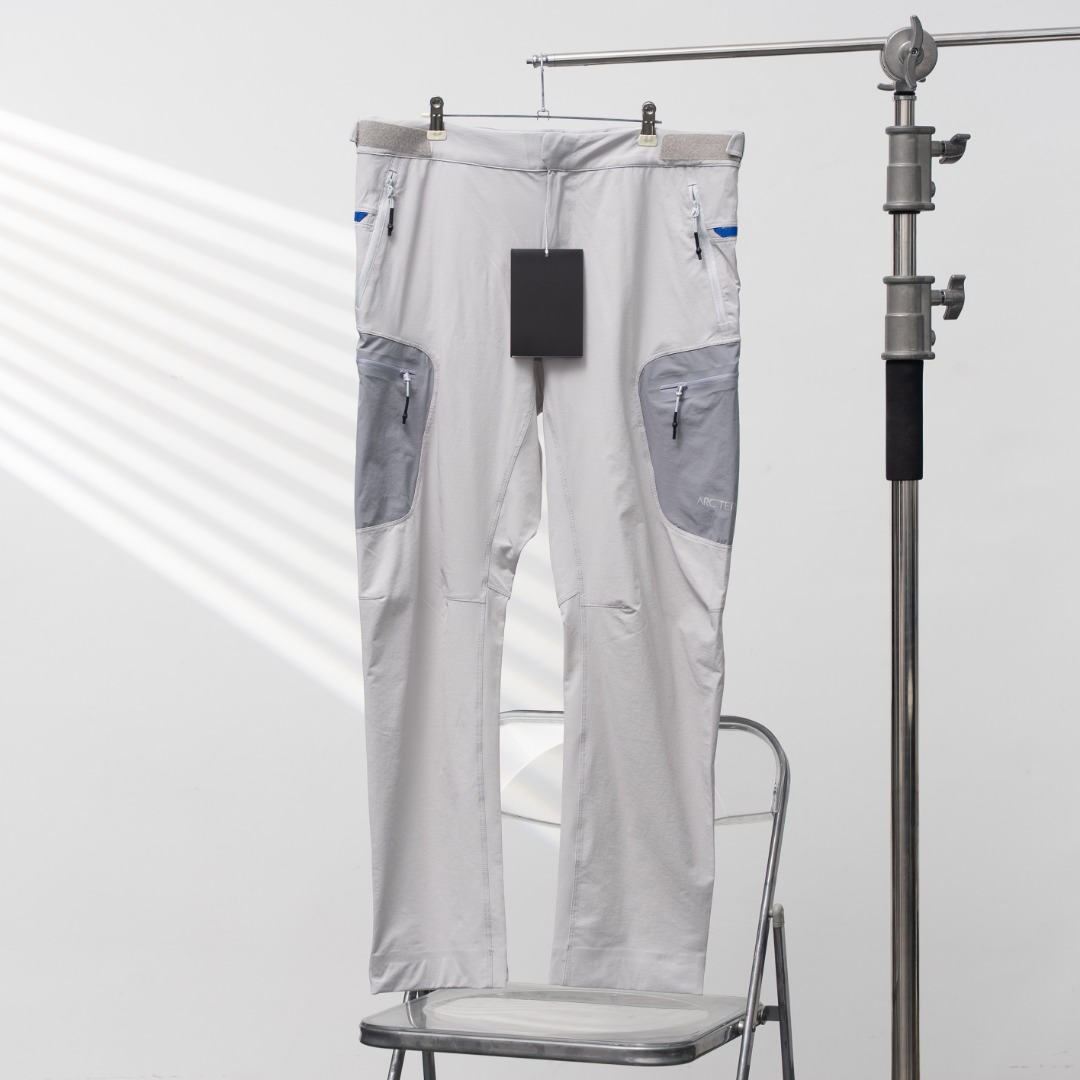 Factory direct Arc'teryx printed straight-leg pants in white, sizes M-XXL.