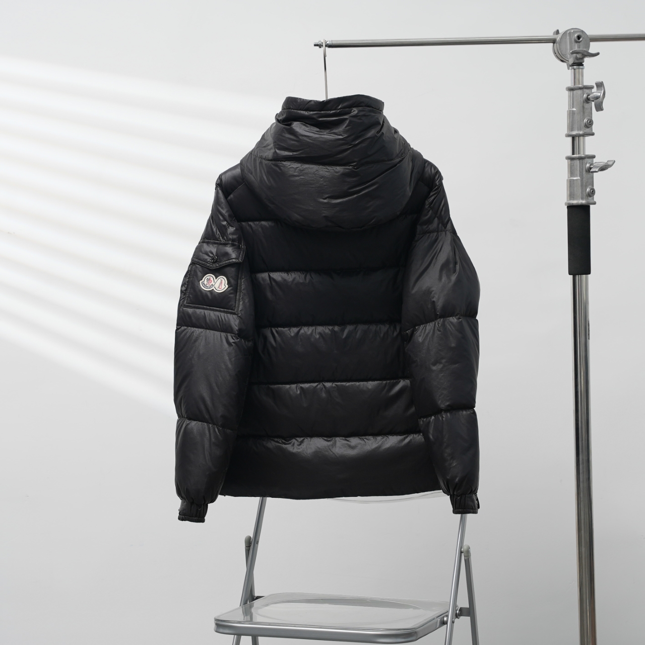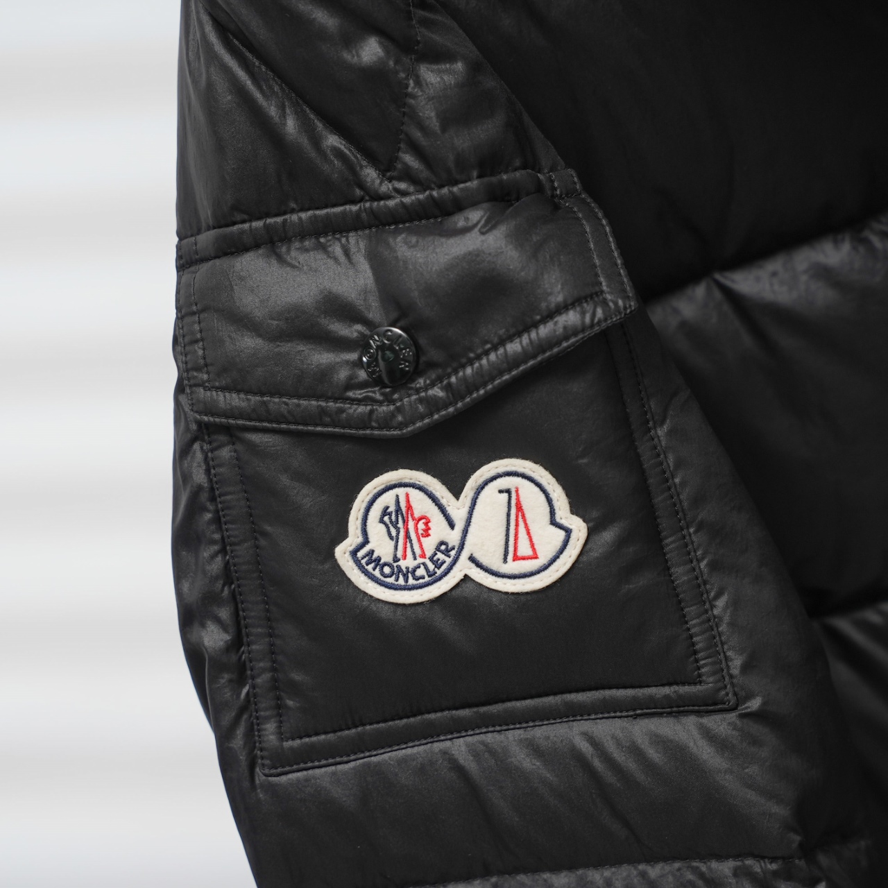 Factory direct Moncler 70th anniversary hooded down jacket in black, sizes 1-5.