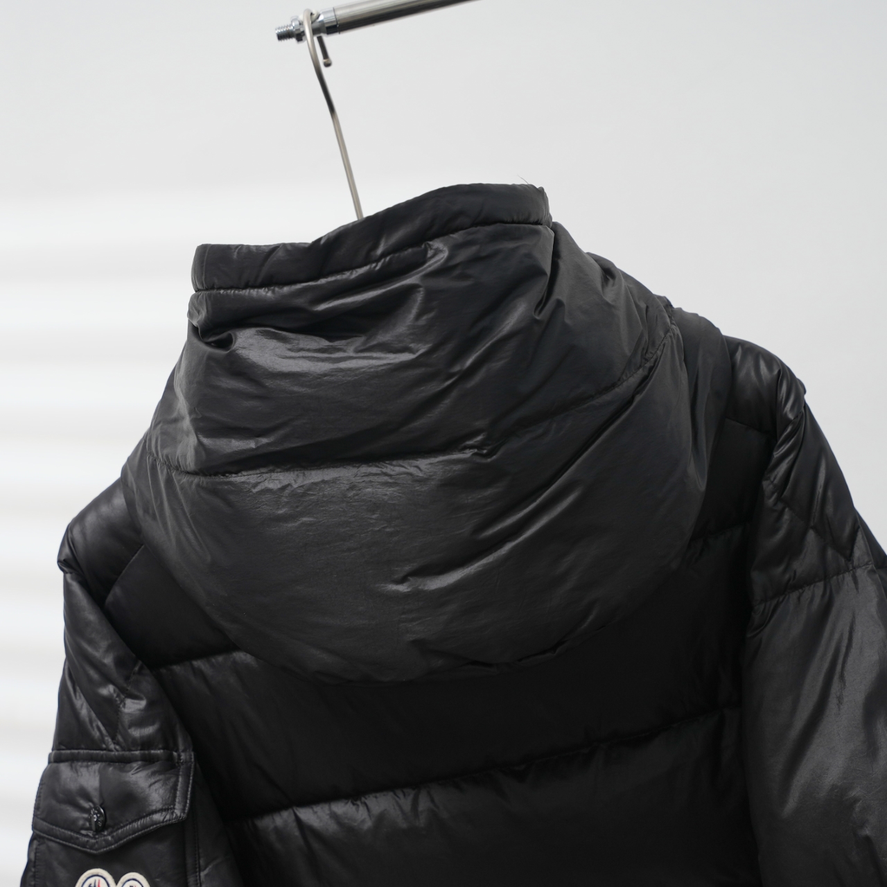 MONCLER 70th Anniversary Matte Dual-Logo Hooded Down Jacket in Black, Sizes 1-5.