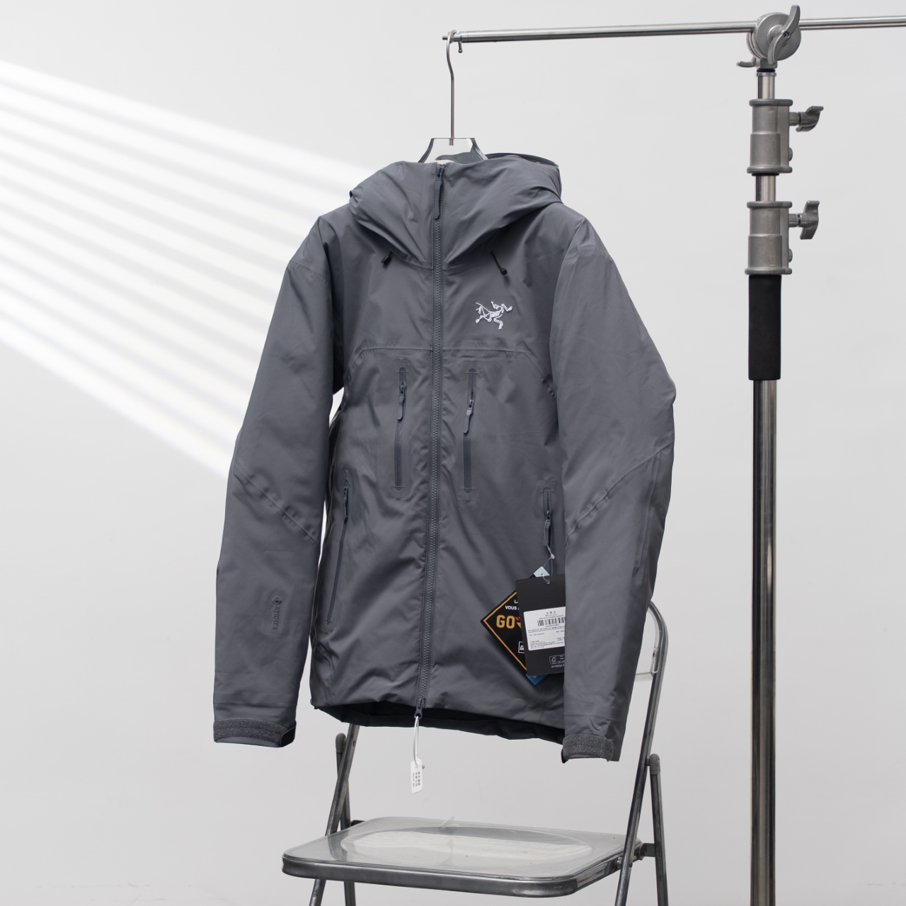Factory direct Arc'teryx Beta DOWN hooded down jacket in dark gray, sizes S-XXL.