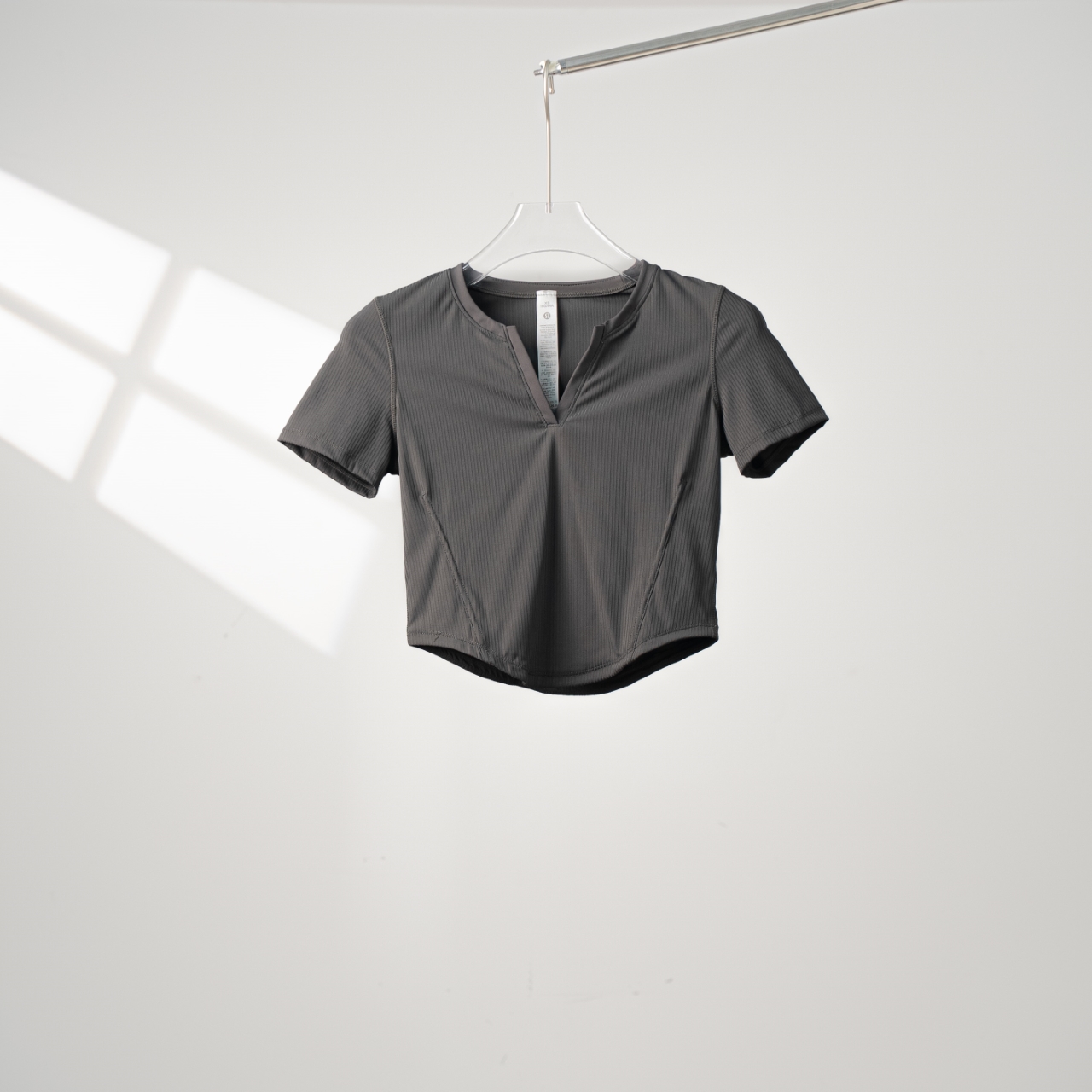 Lululemon Ribbed V-Neck Short Sleeve T-Shirt. Color: Gray. Sizes: XS-XL.