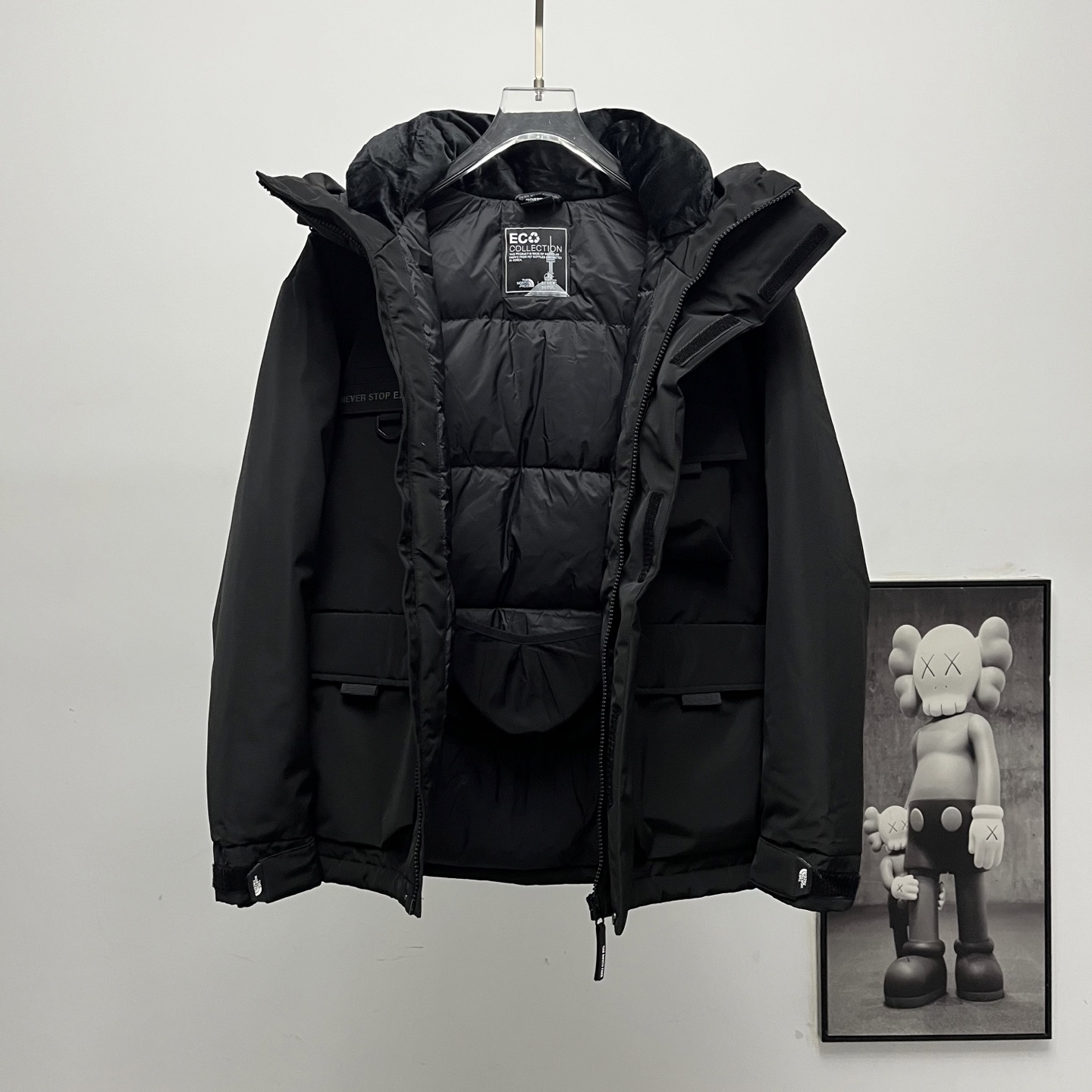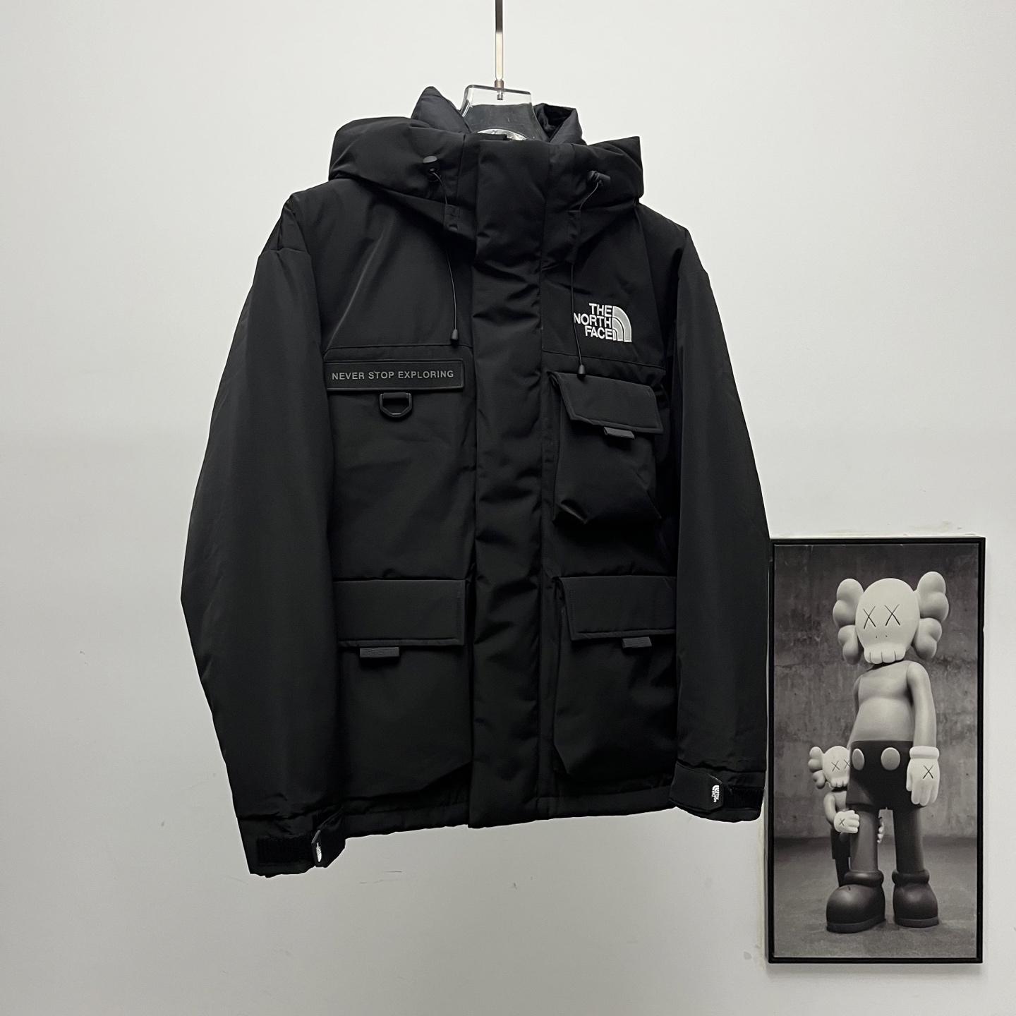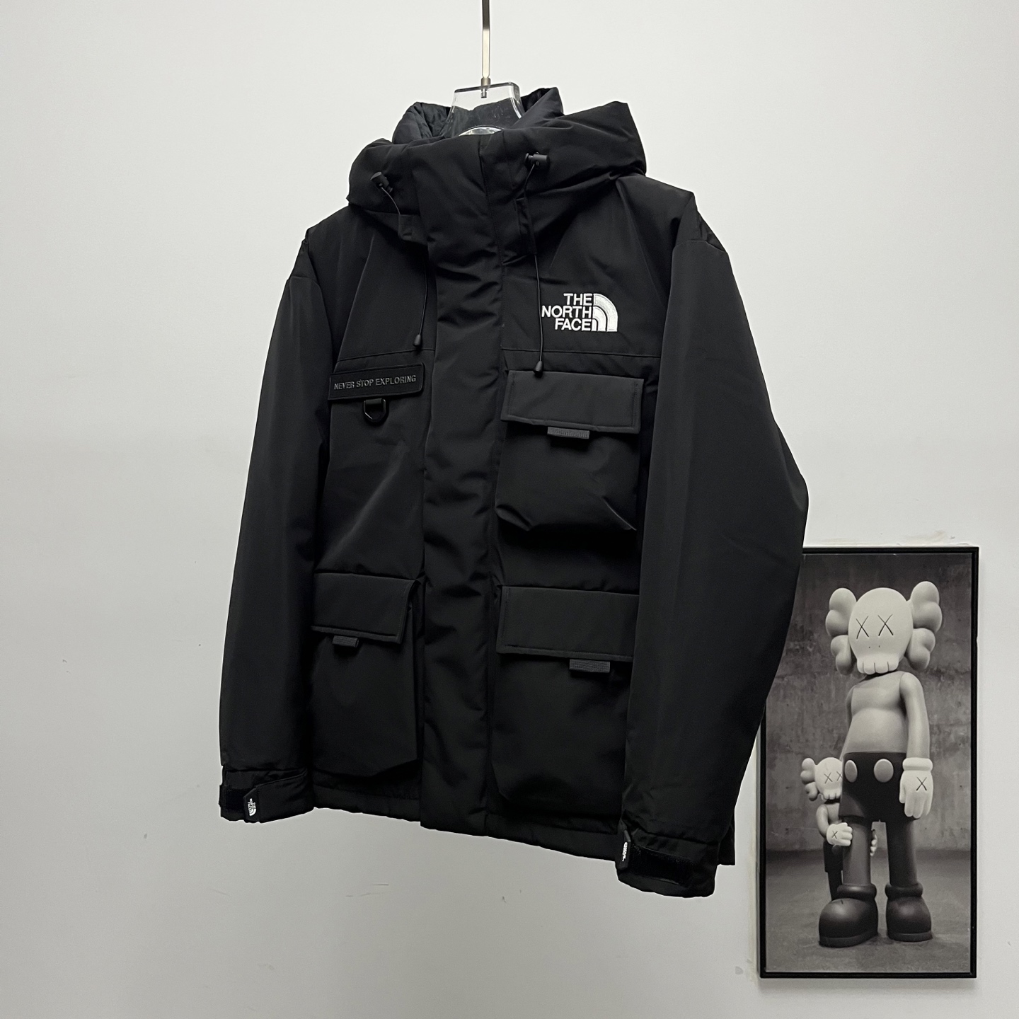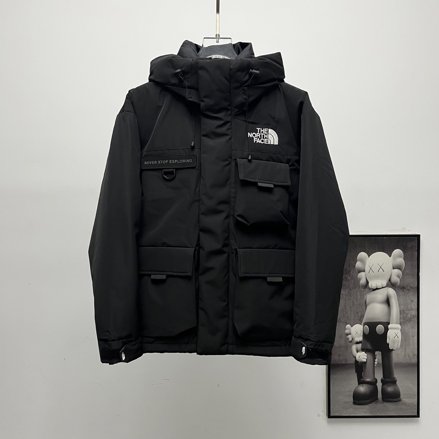 Terminal supply TNF North Face classic logo multi-pocket workwear down jacket.