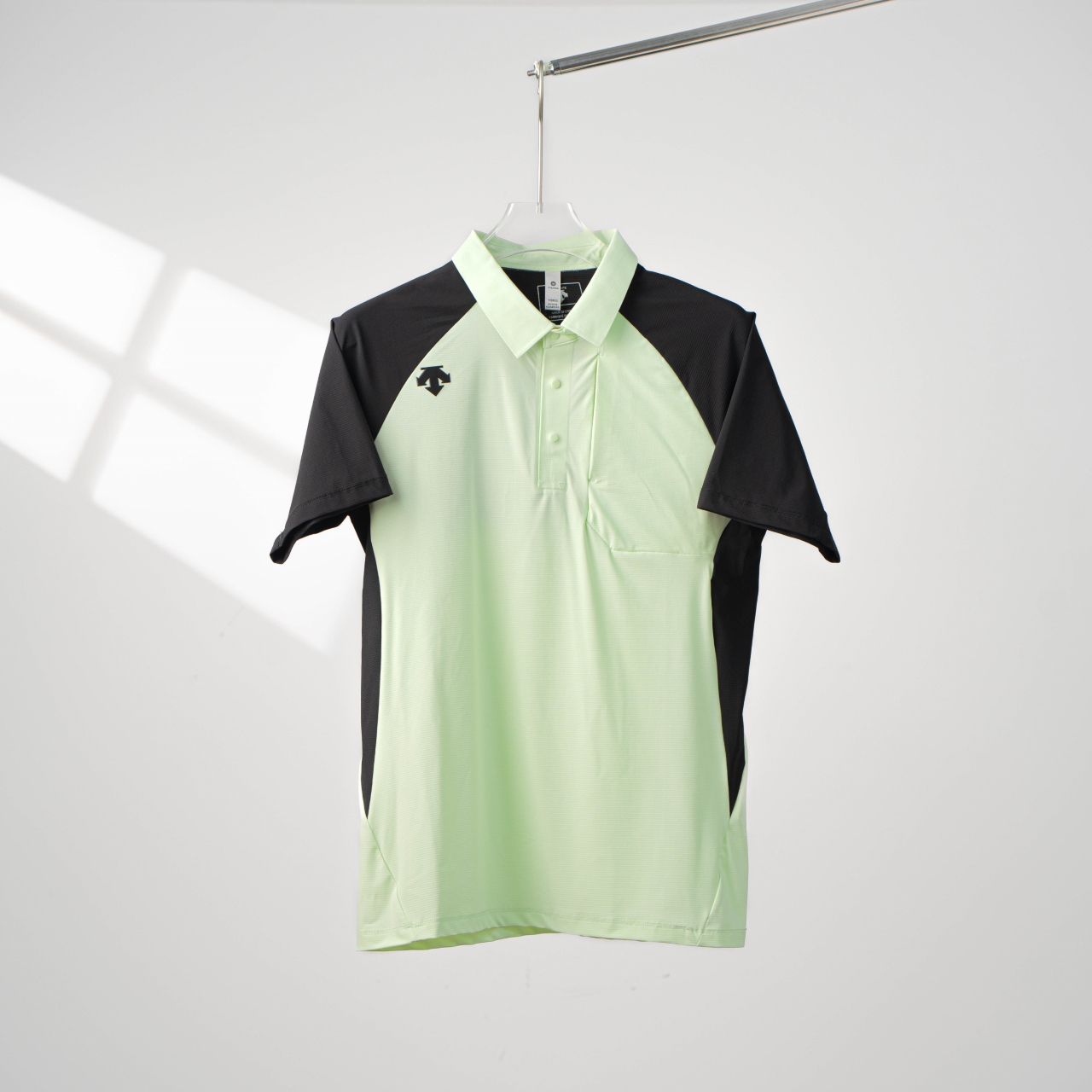 DESCENTE color-blocked ice silk POLO shirt. Colors: black/green. Sizes: M-5XL.