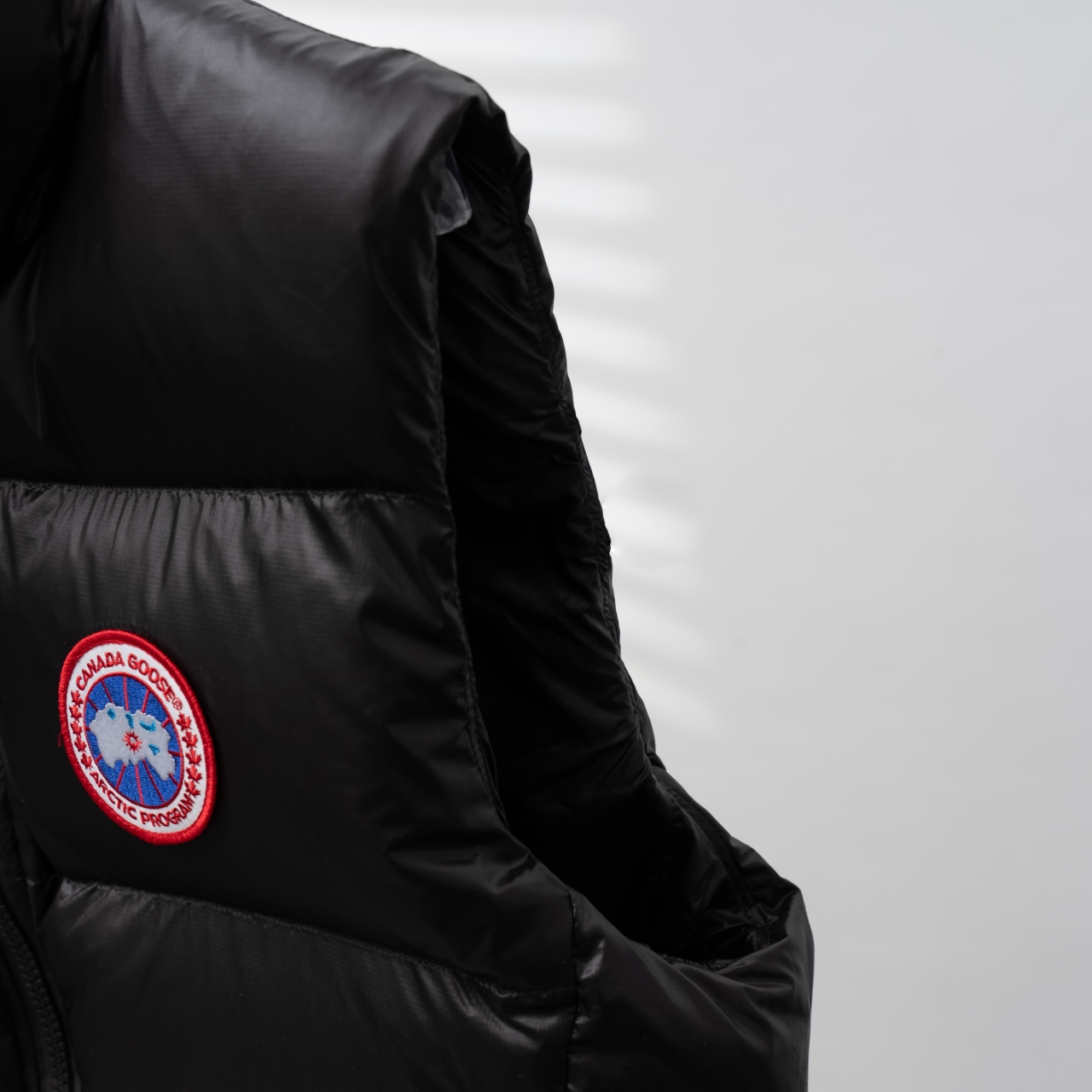 Canada Goose Crofton 2257MB Stand Collar Vest. Color: Black Red Logo. Sizes: XS-XL.