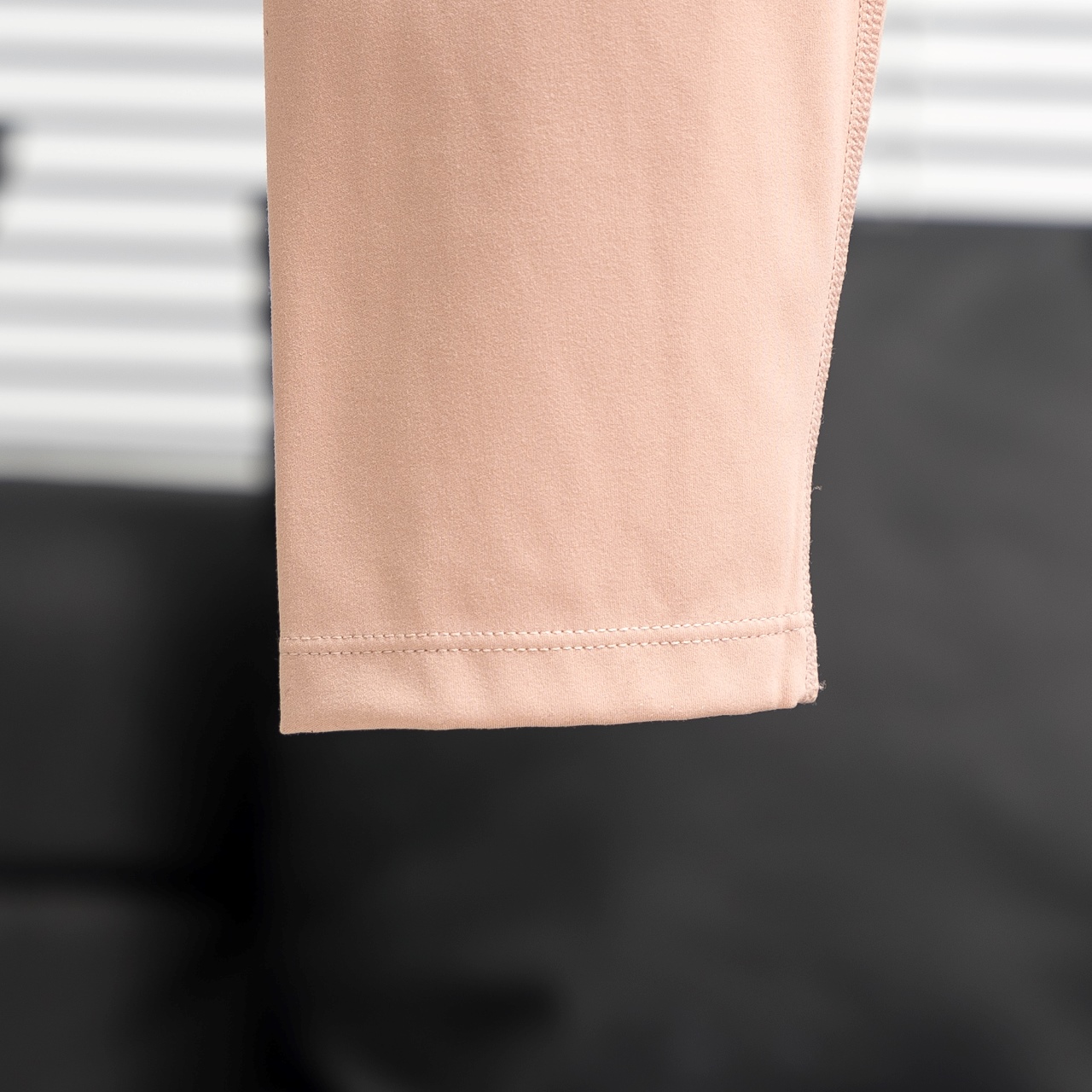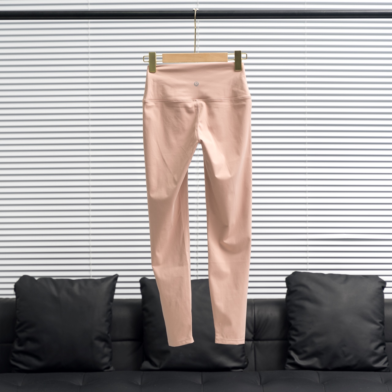 Lululemon cropped pants with silver/gold waist/leg logos. Color: nude pink. Sizes: 2-12.