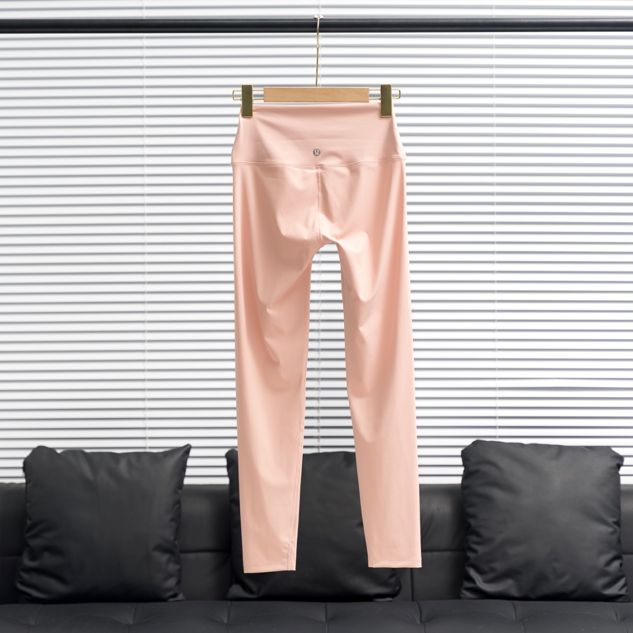 Lululemon crop pants with silver/gold waist/leg logo. Colors: Sakura pink. Sizes: 2 4 6 8 10 12.