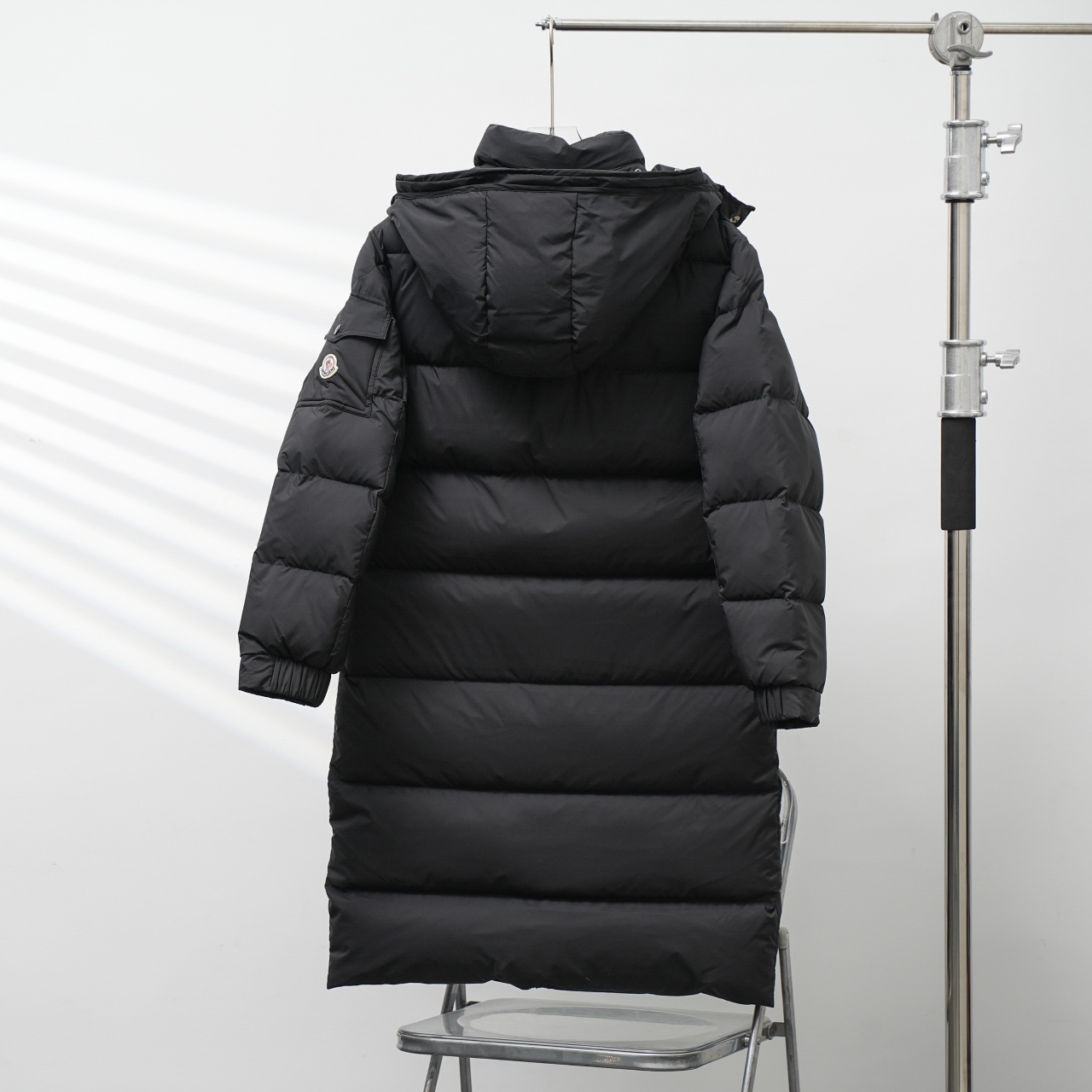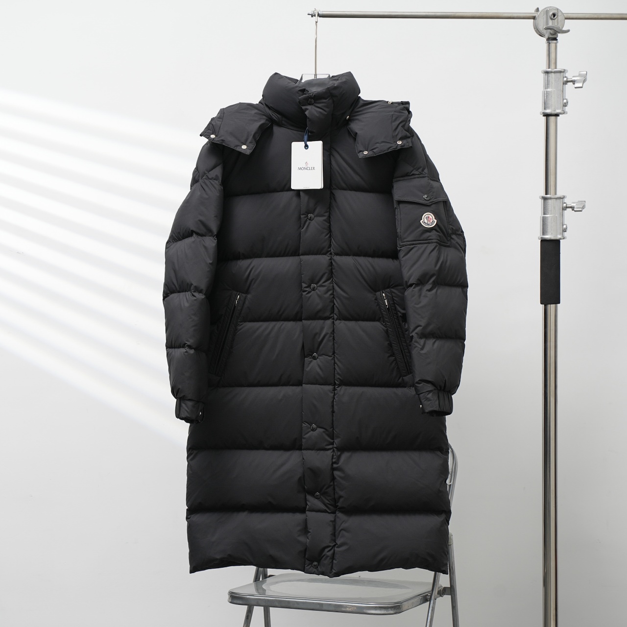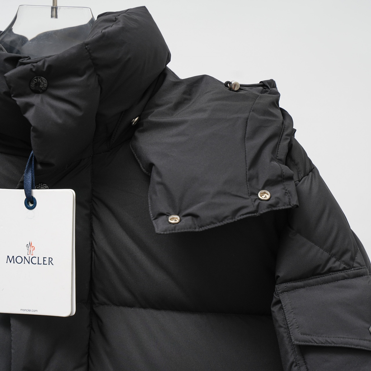 Factory direct Moncler long hooded matte down jacket. Sizes: C factory 1-5, S factory 0-4.
