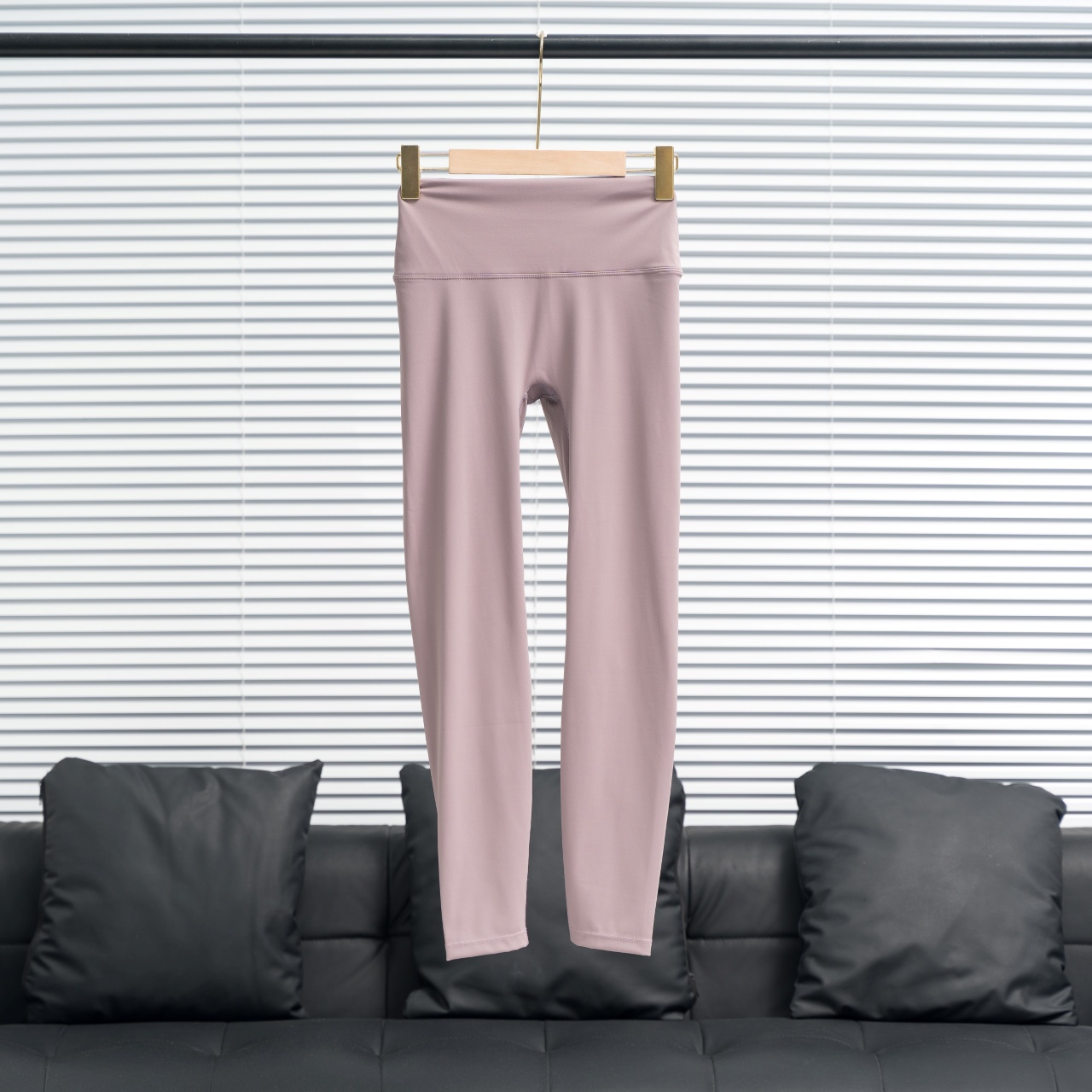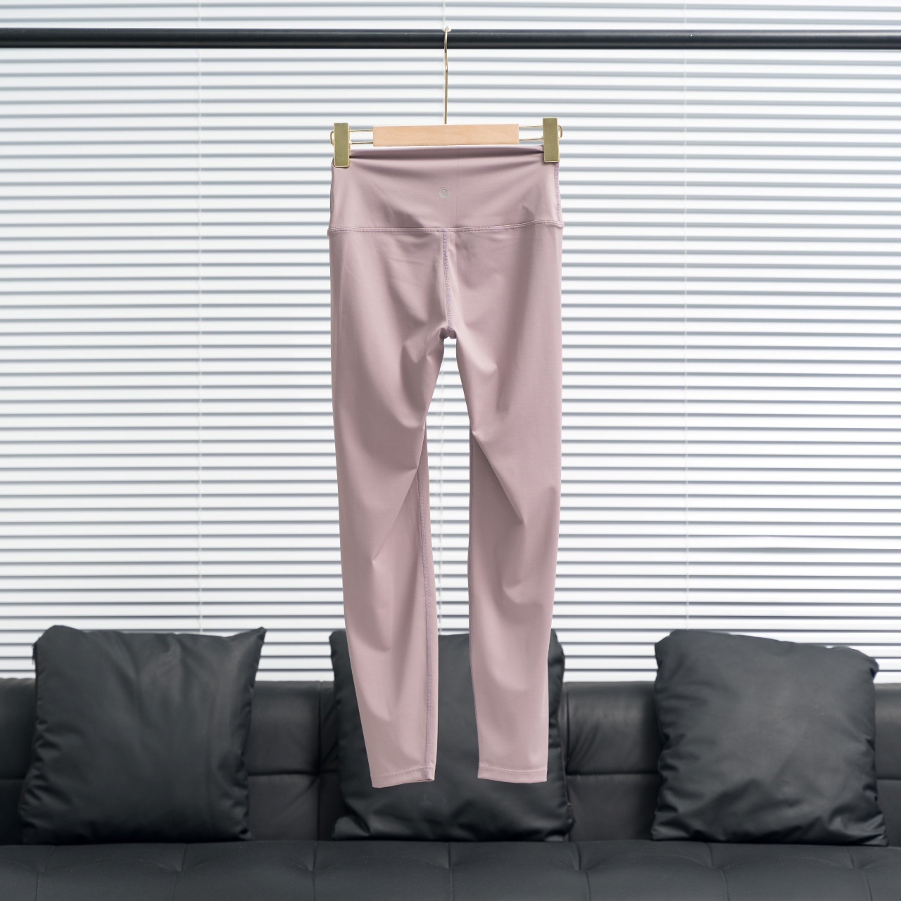 Lululemon ankle pants with silver or gold waist and leg logos. Colors: Misty Pink. Sizes: 2-12.