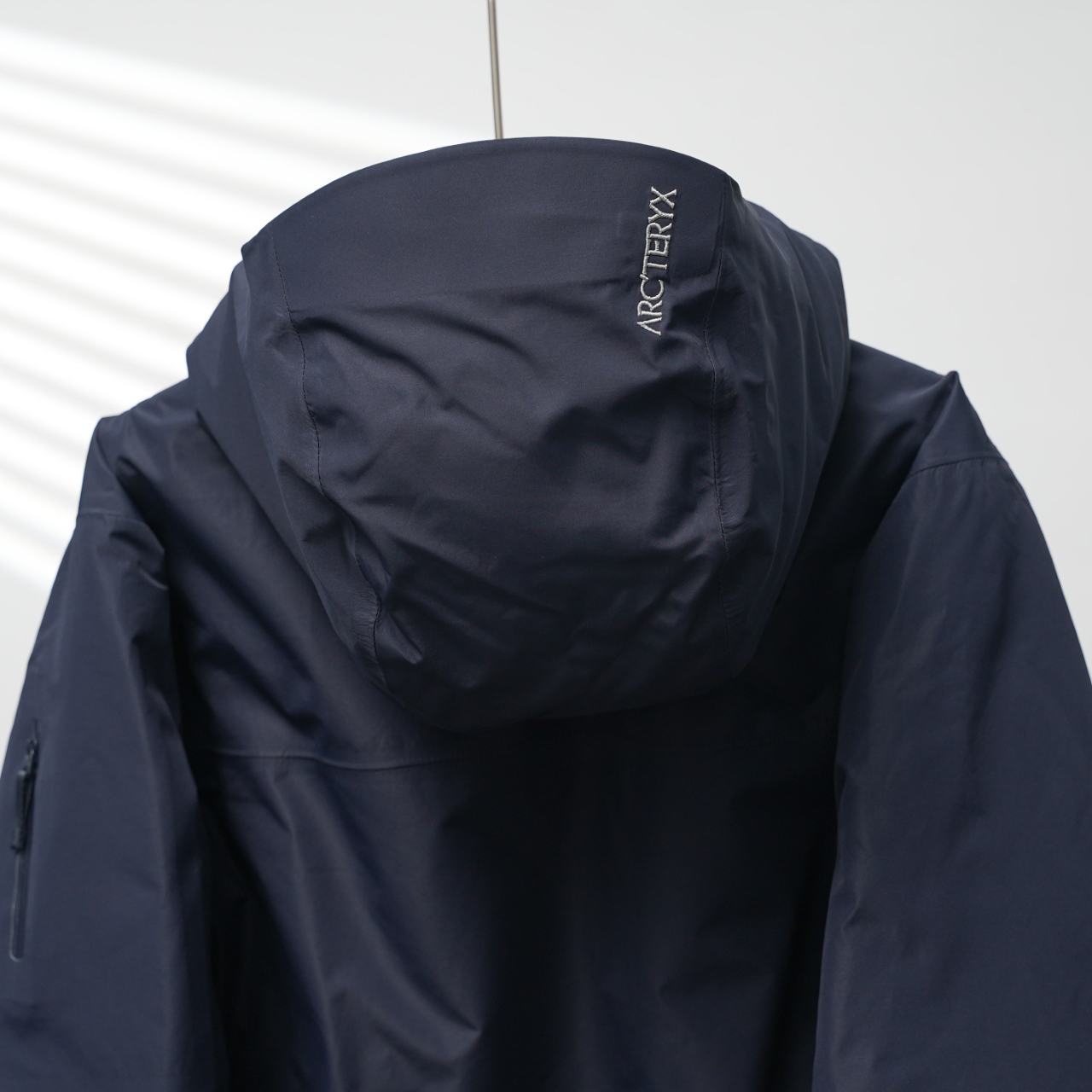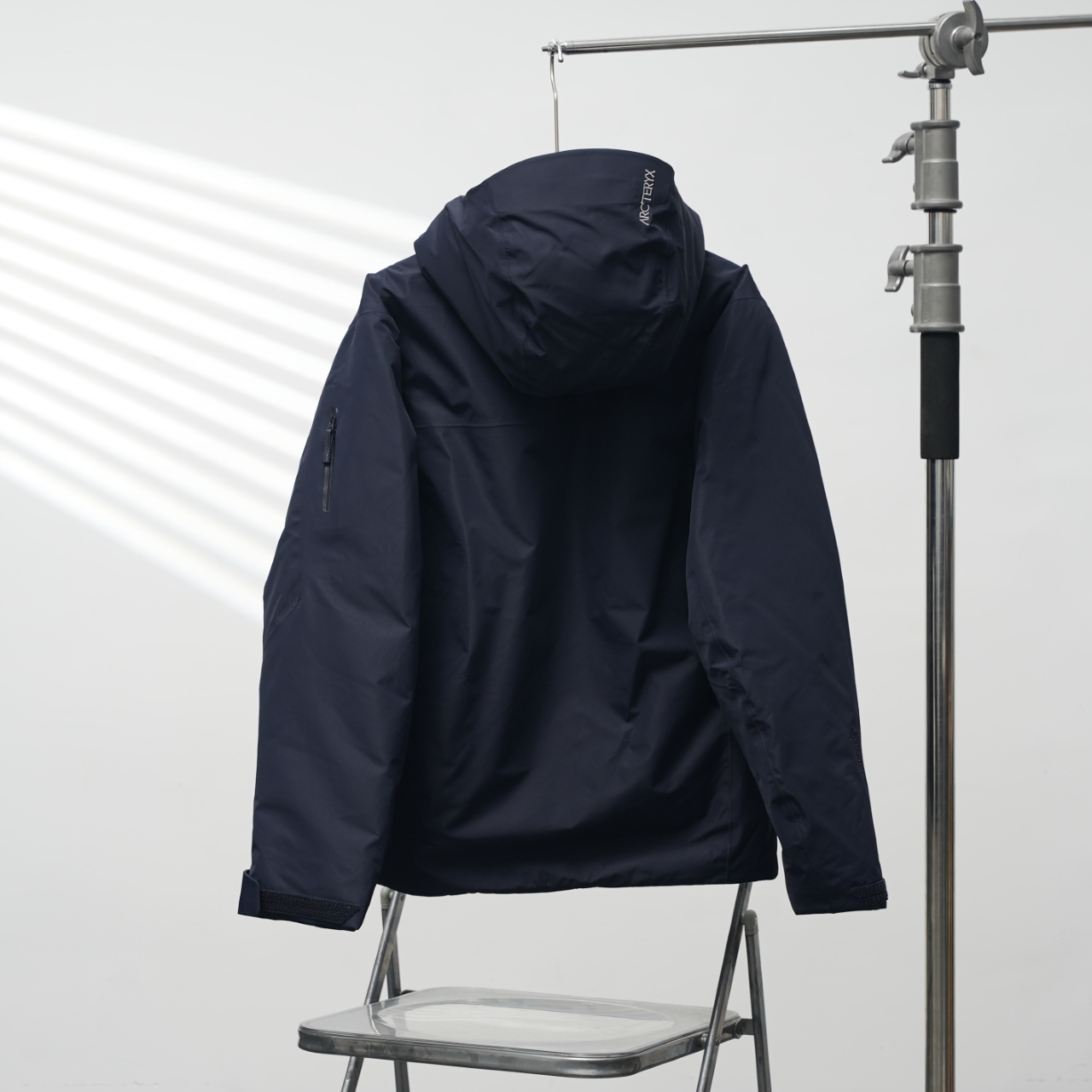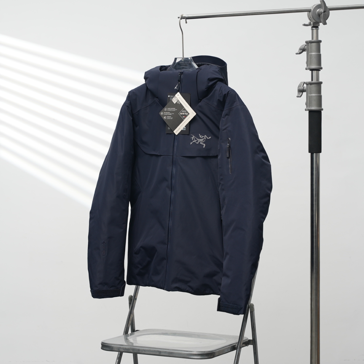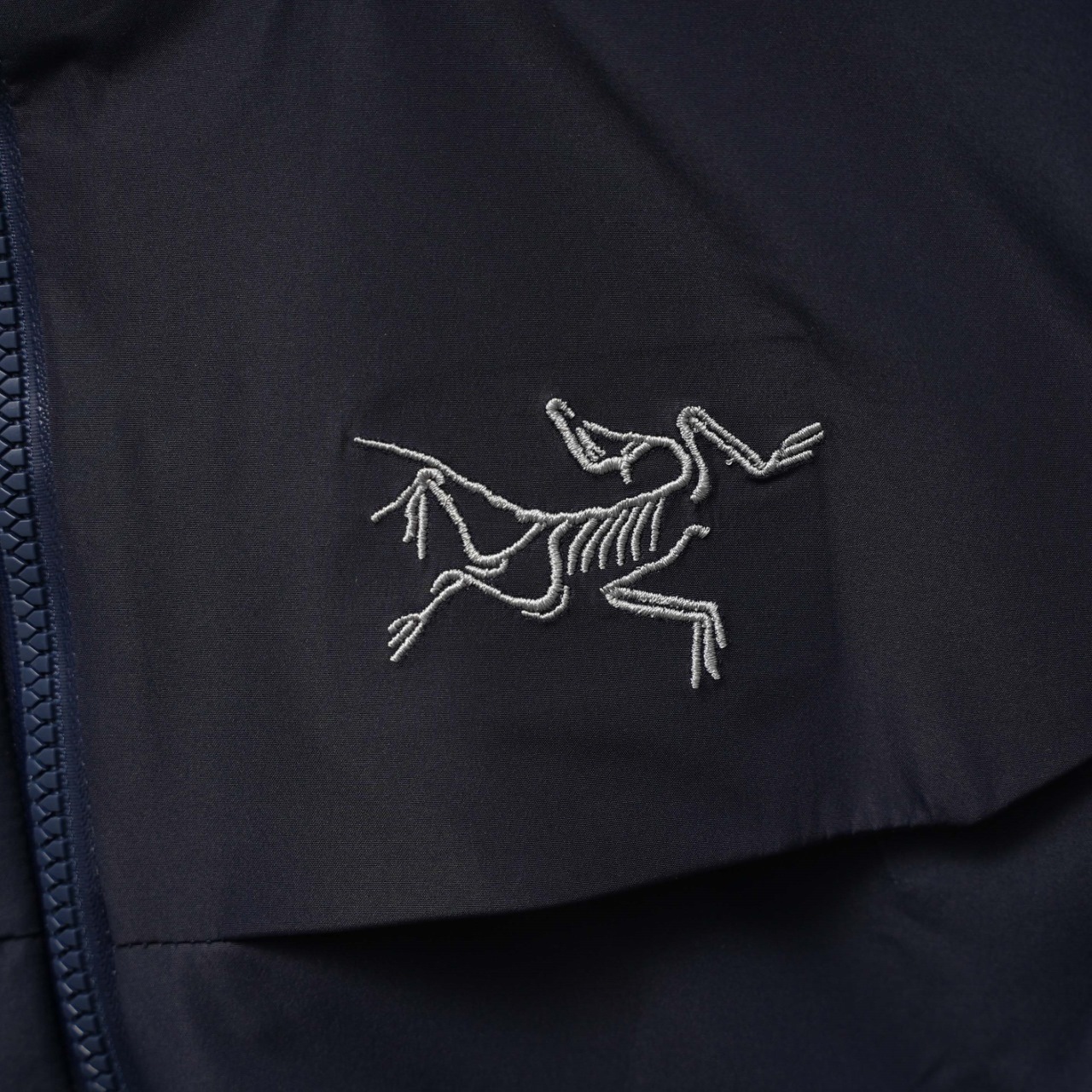 Factory direct Arc'teryx Macai down hooded jacket. Colors: Black, Sapphire Blue. Sizes: XS-XXL.