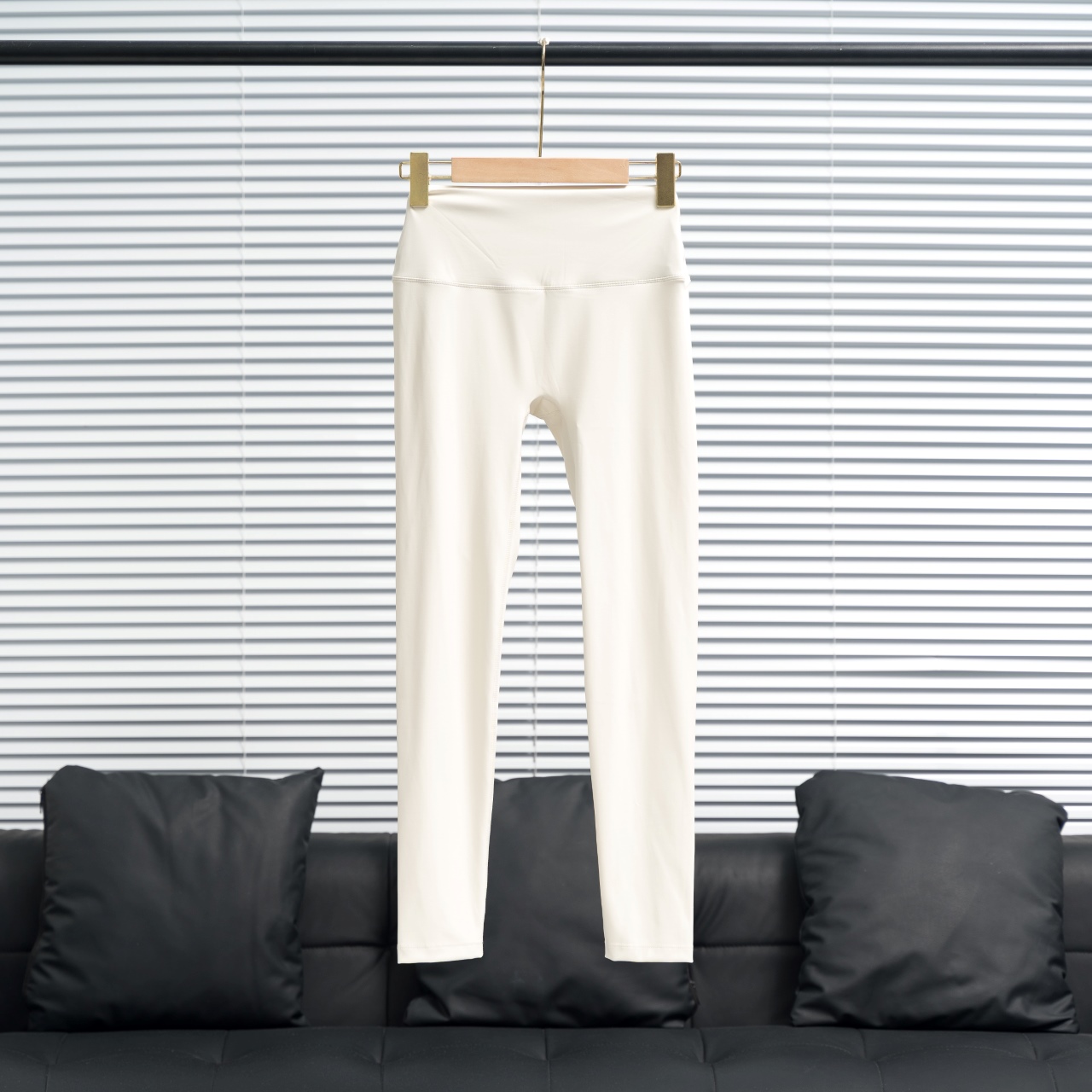 Lululemon cropped pants with silver/gold waist/leg logos. Color: Albumen. Sizes: 2-12.