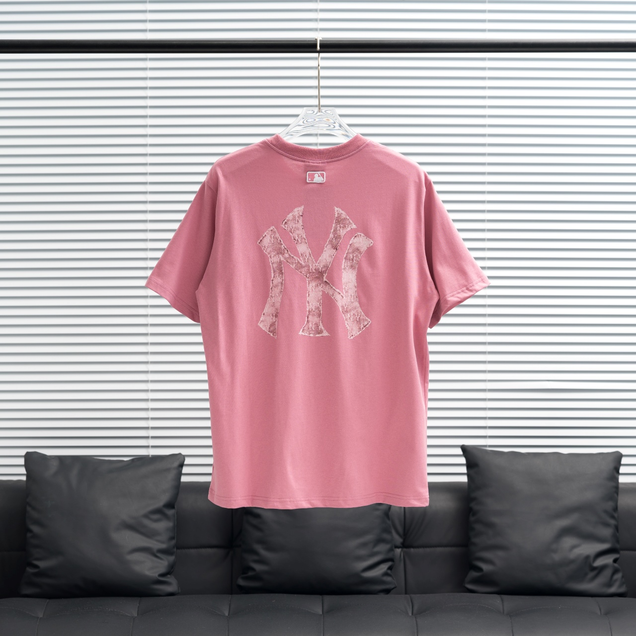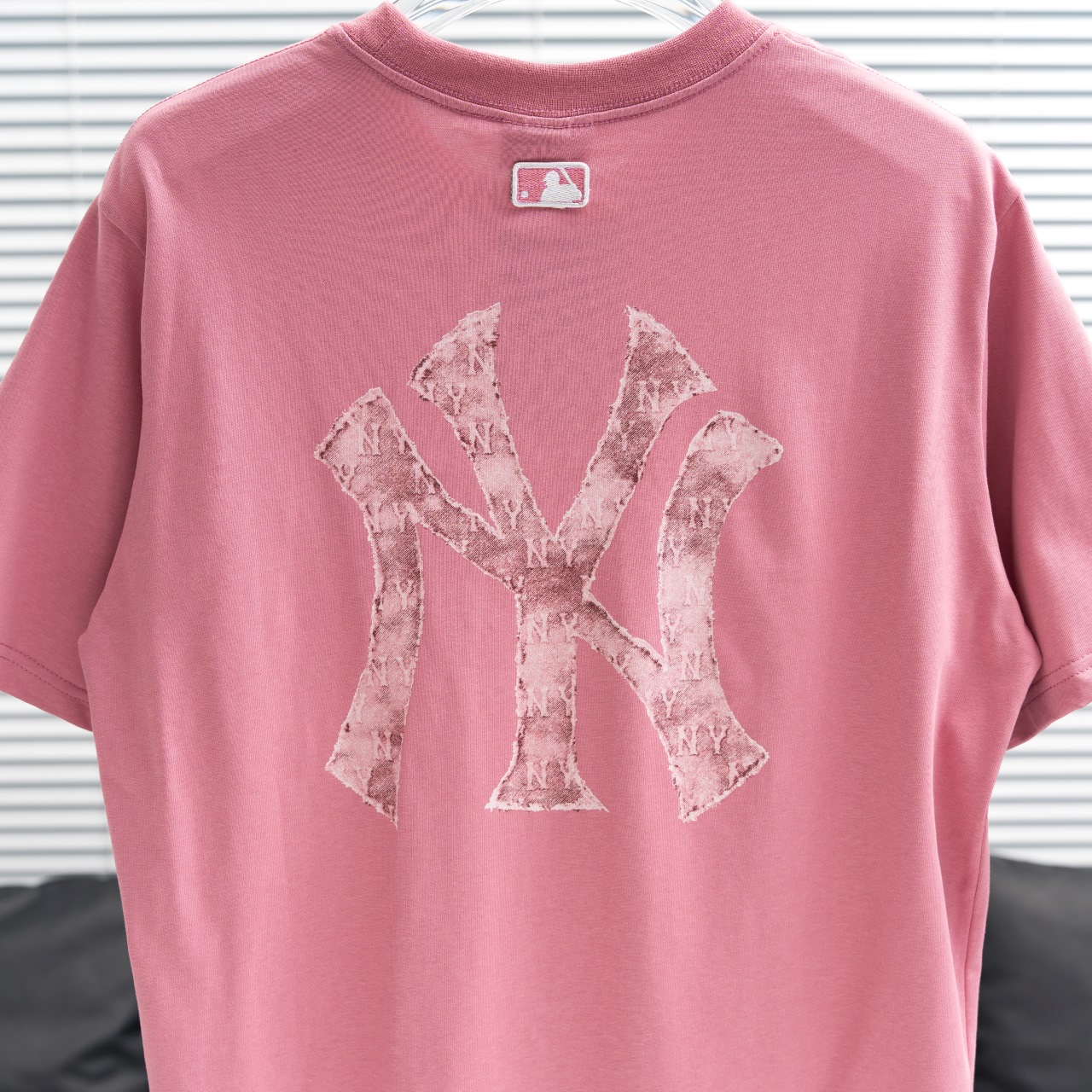 Factory direct MLB Yankees 0953 vintage denim print short sleeve T-shirt. Sizes: S-XXL. Colors: black, white, pink.