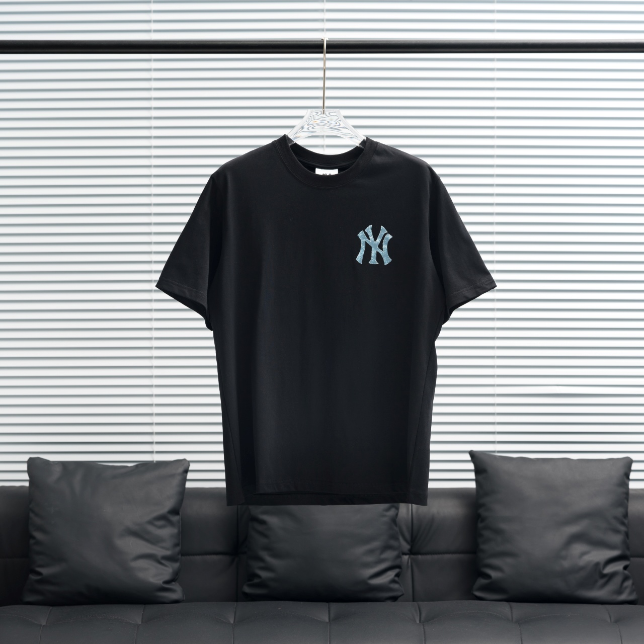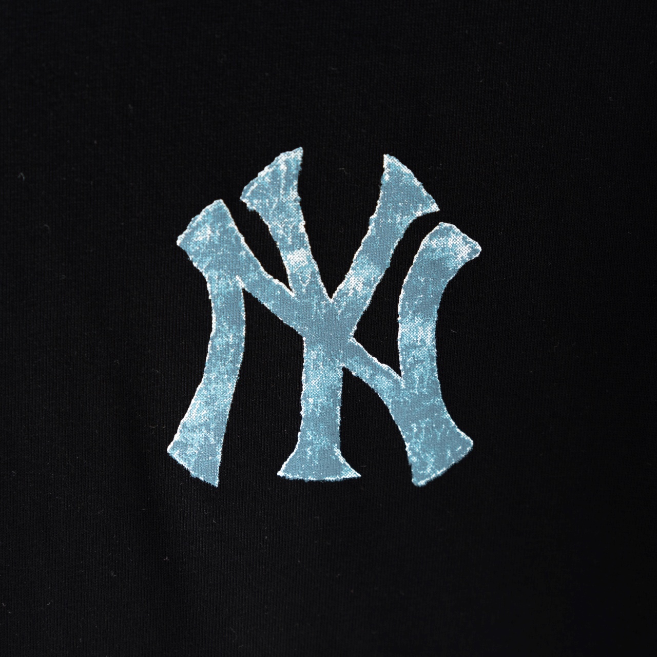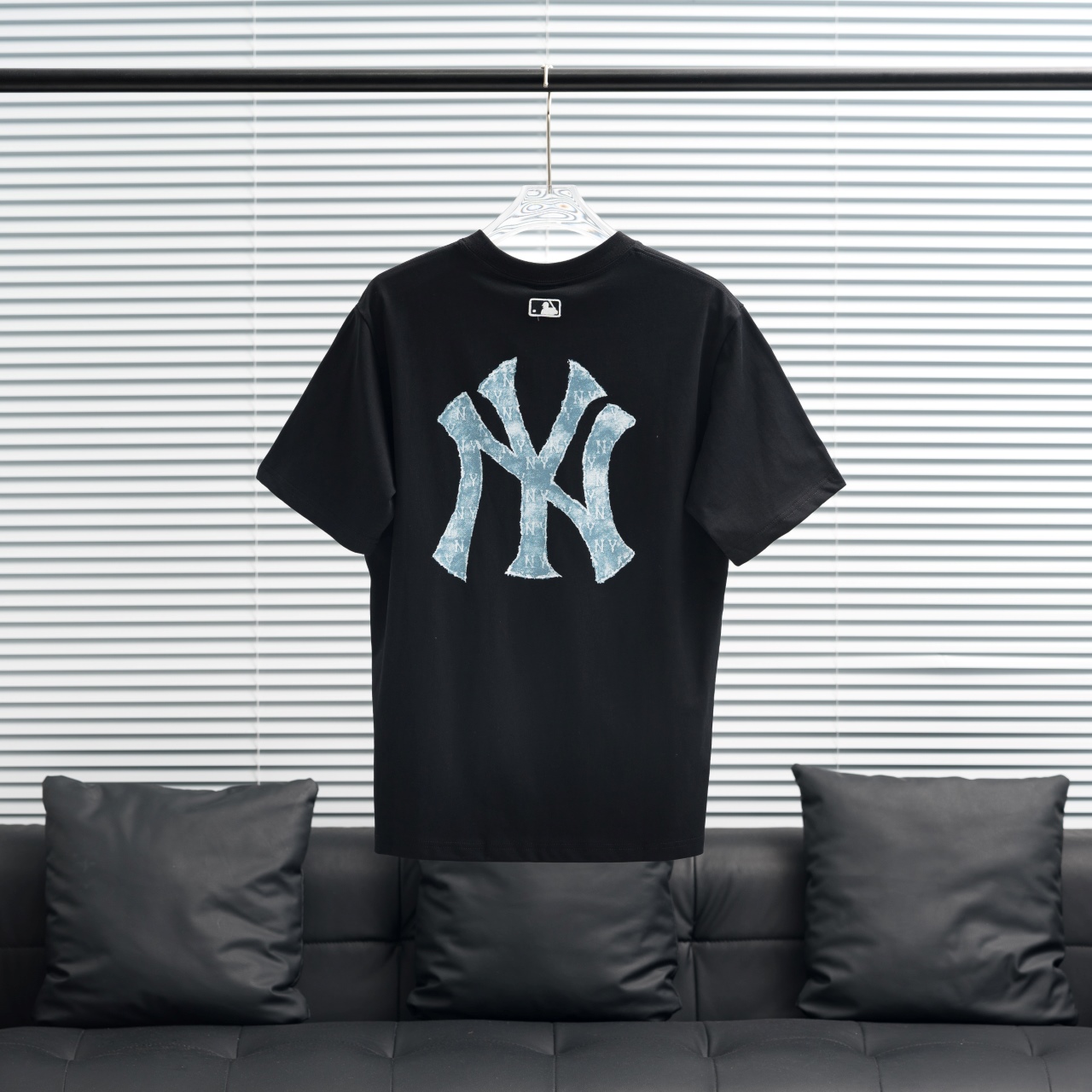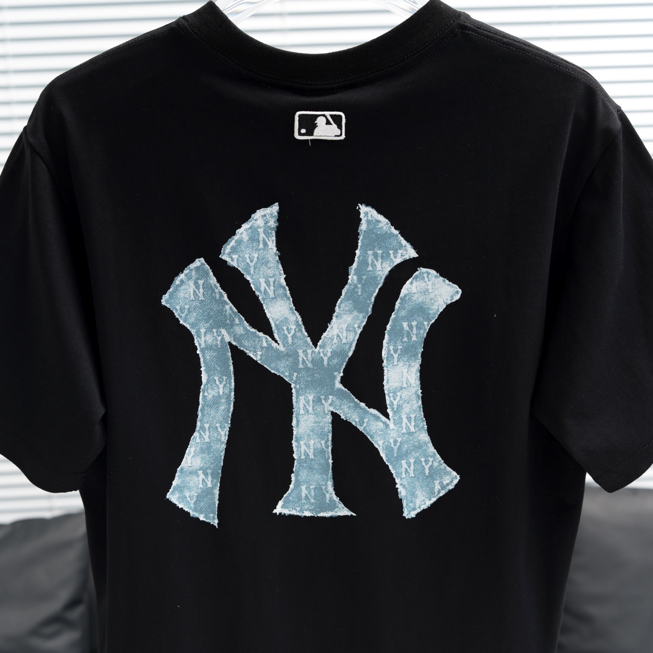 Factory direct MLB Yankees 0953 vintage denim print short sleeve T-shirt. Sizes: S-XXL. Colors: Black, White, Pink.