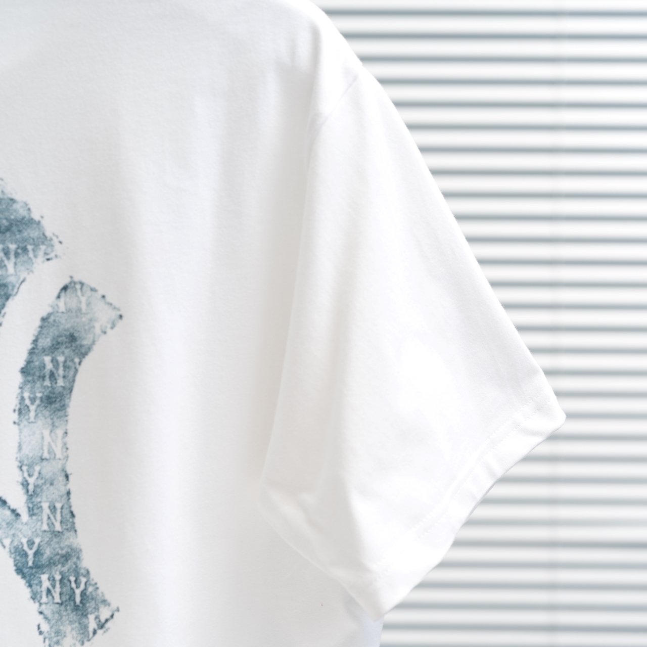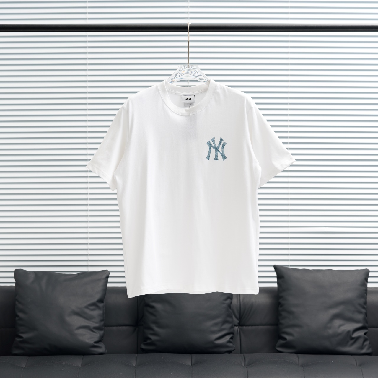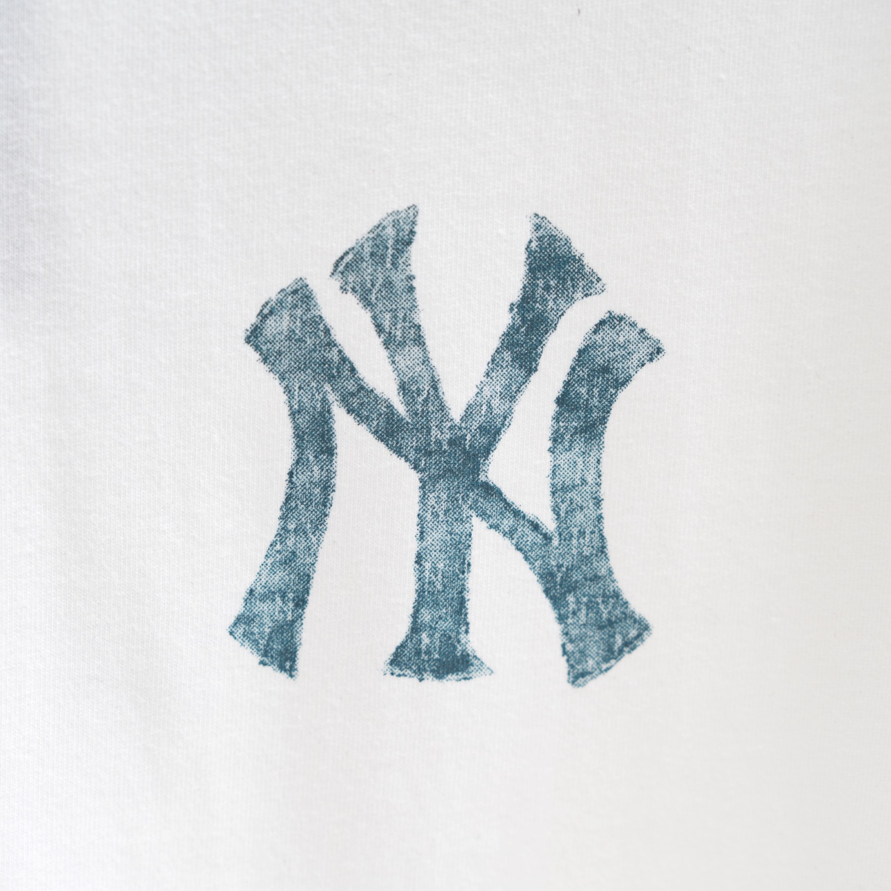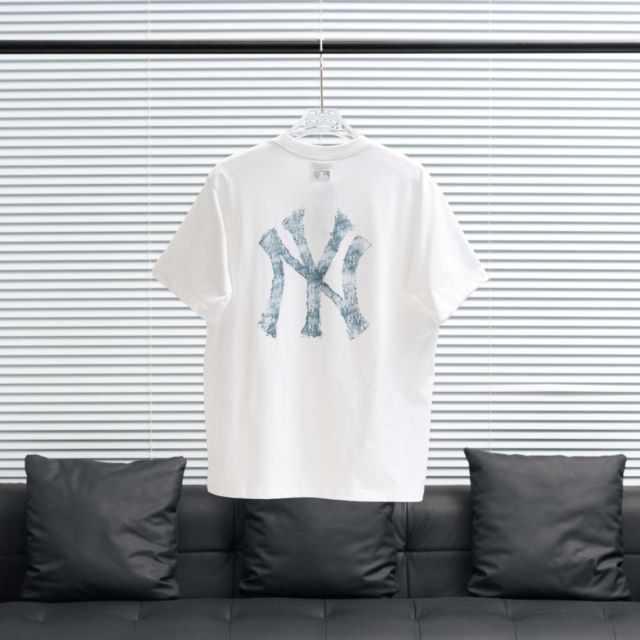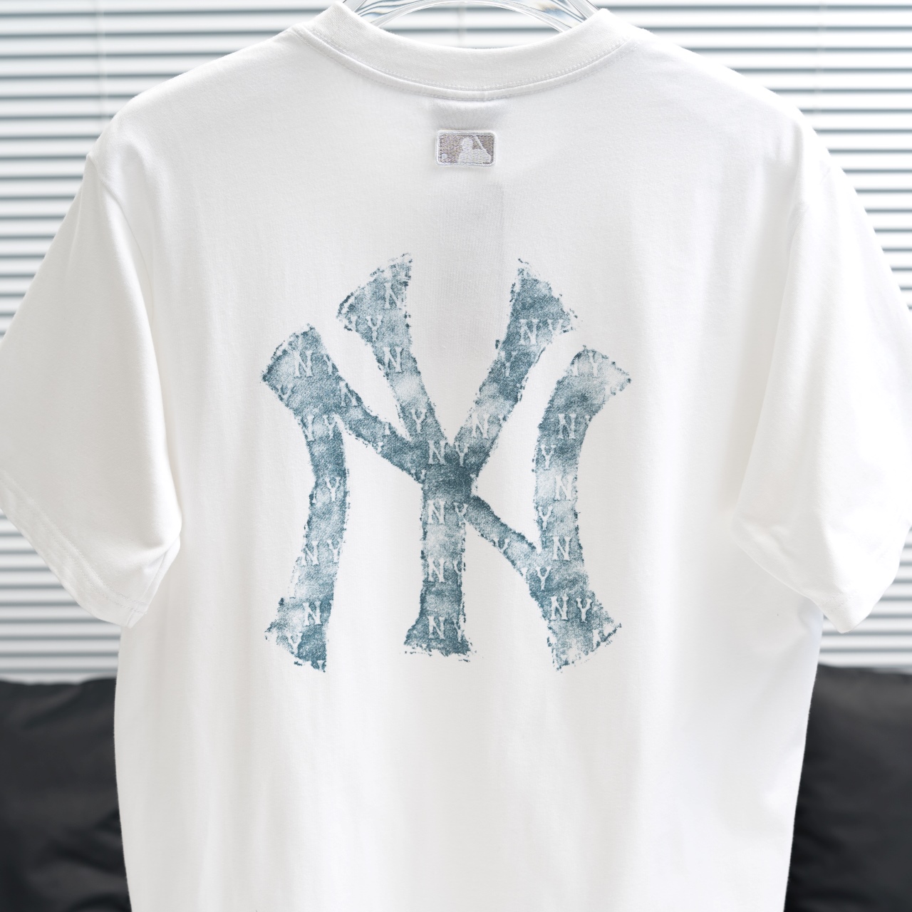 MLB Yankees 0953 vintage denim print short sleeve T-shirt. Sizes: S-XXL. Colors: black, white, pink.