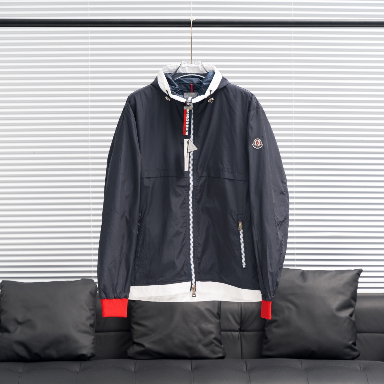 MONCLER Ribbon Zipper Hooded Windbreaker. Colors: As Pictured. Sizes: M-3XL.