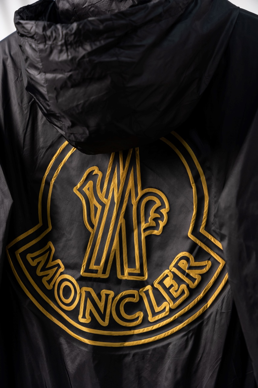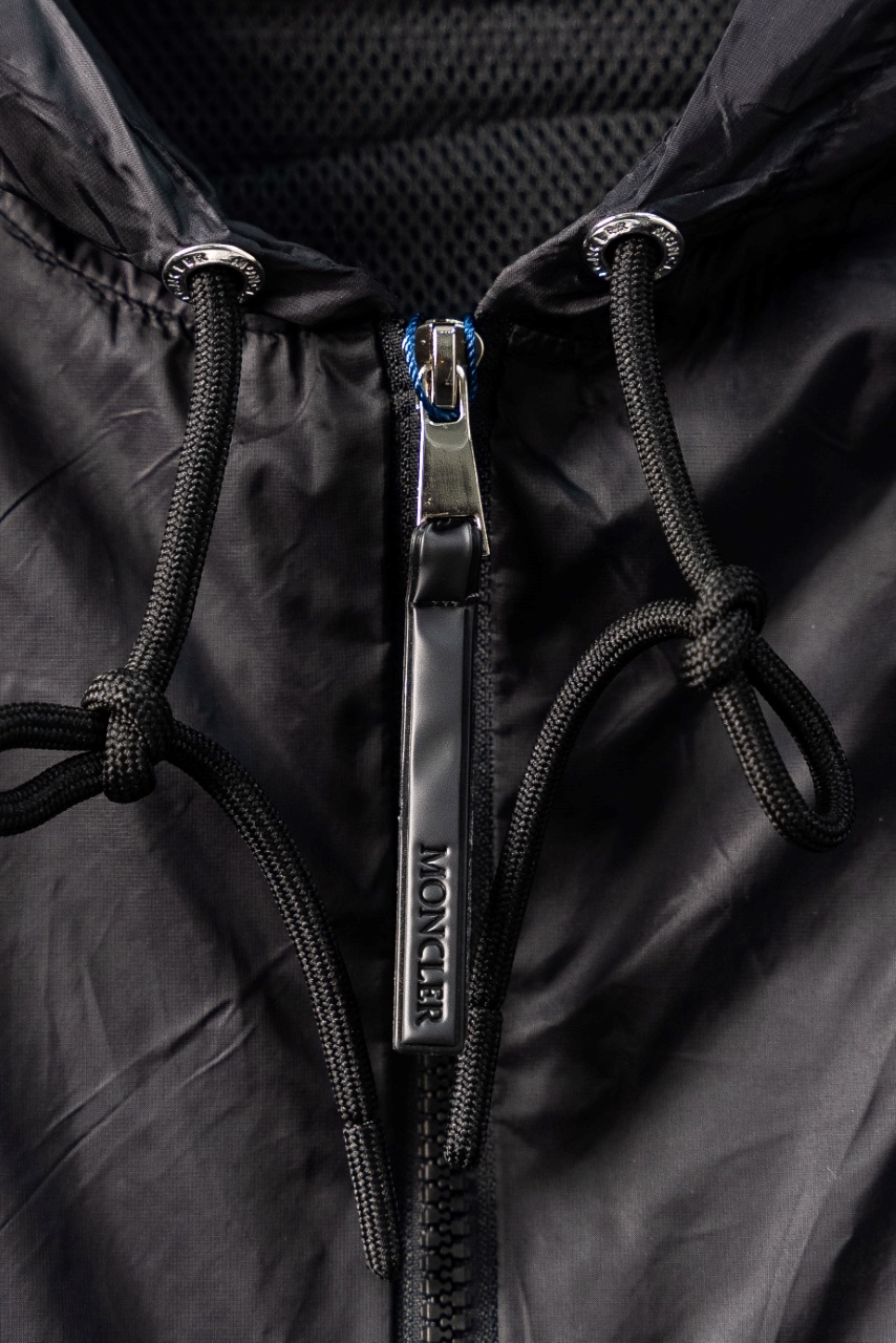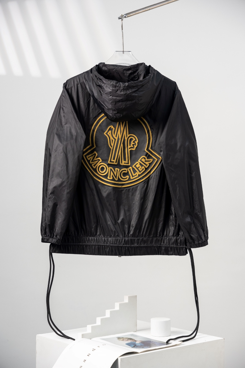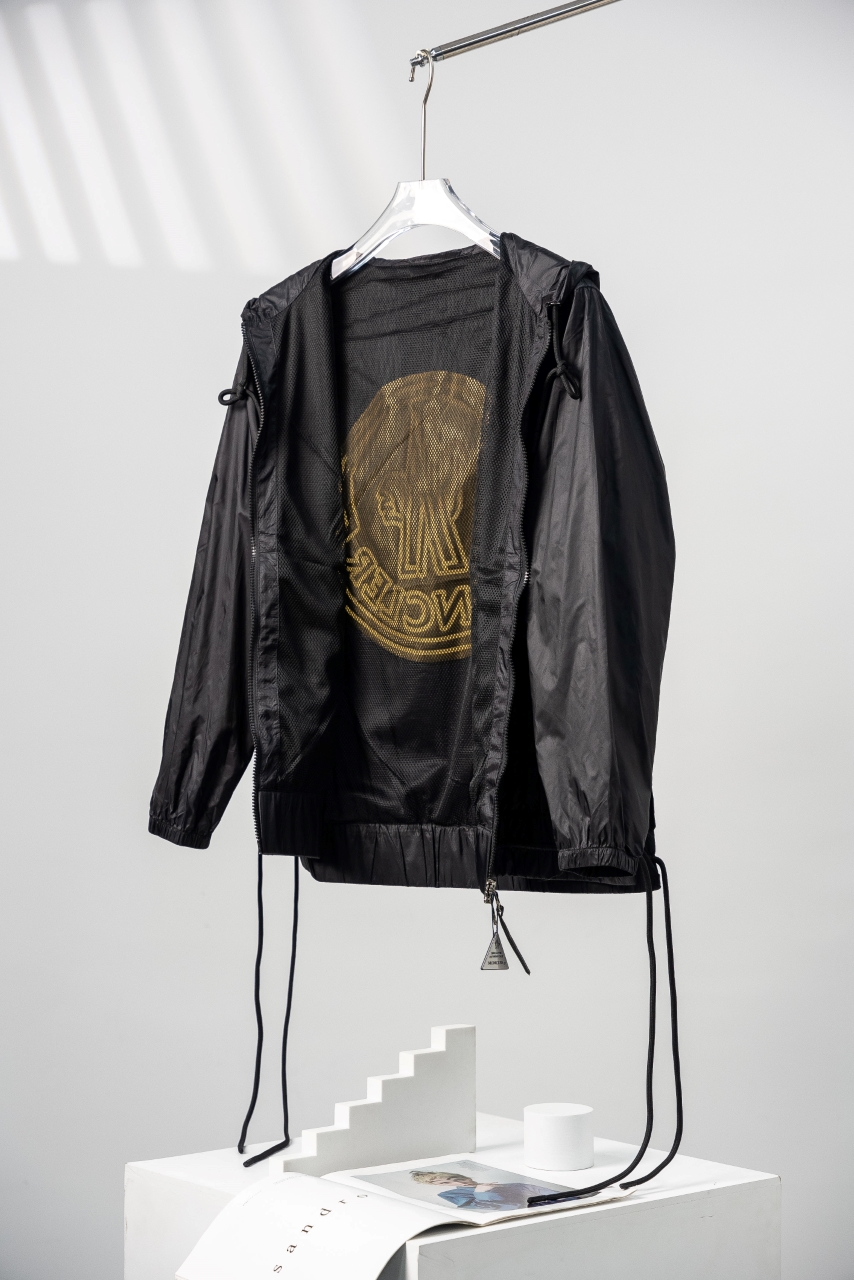 Moncler logo print sun protection jacket. Colors: Black, Rose Red. Sizes: 0, 1, 2, 3.