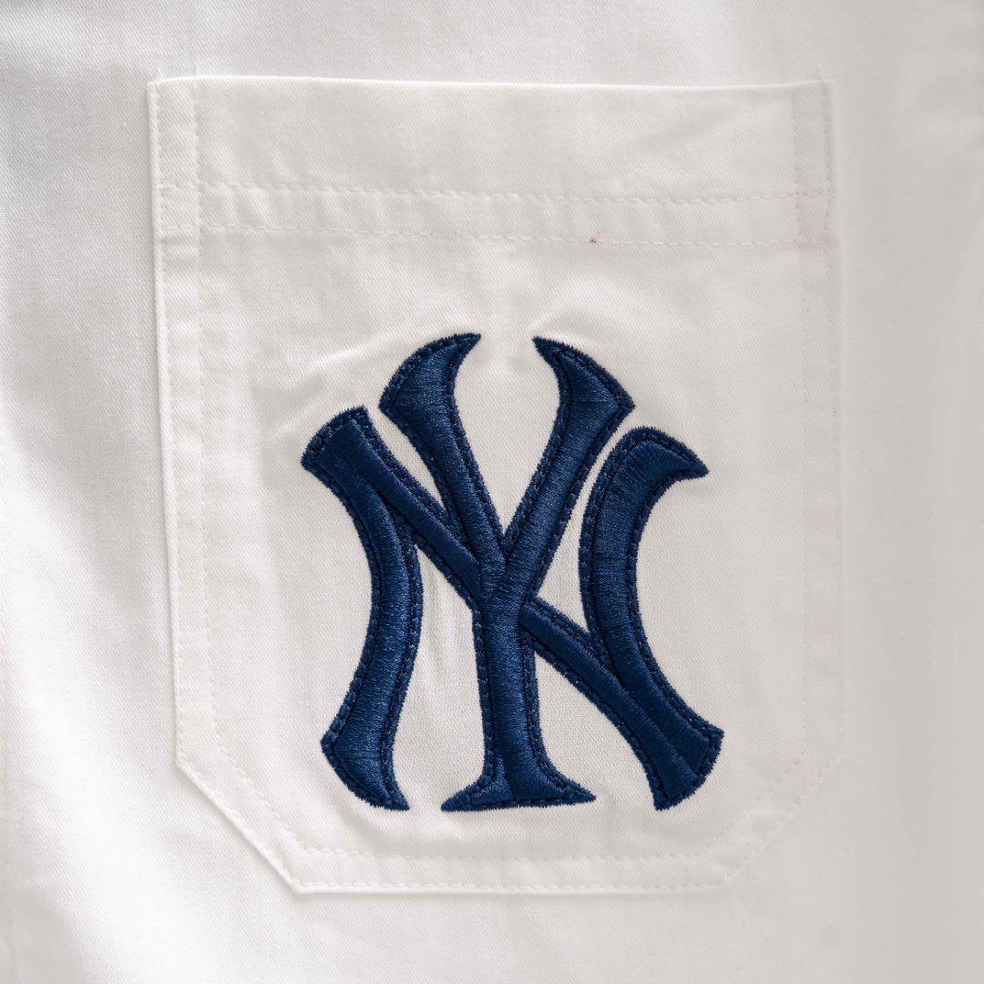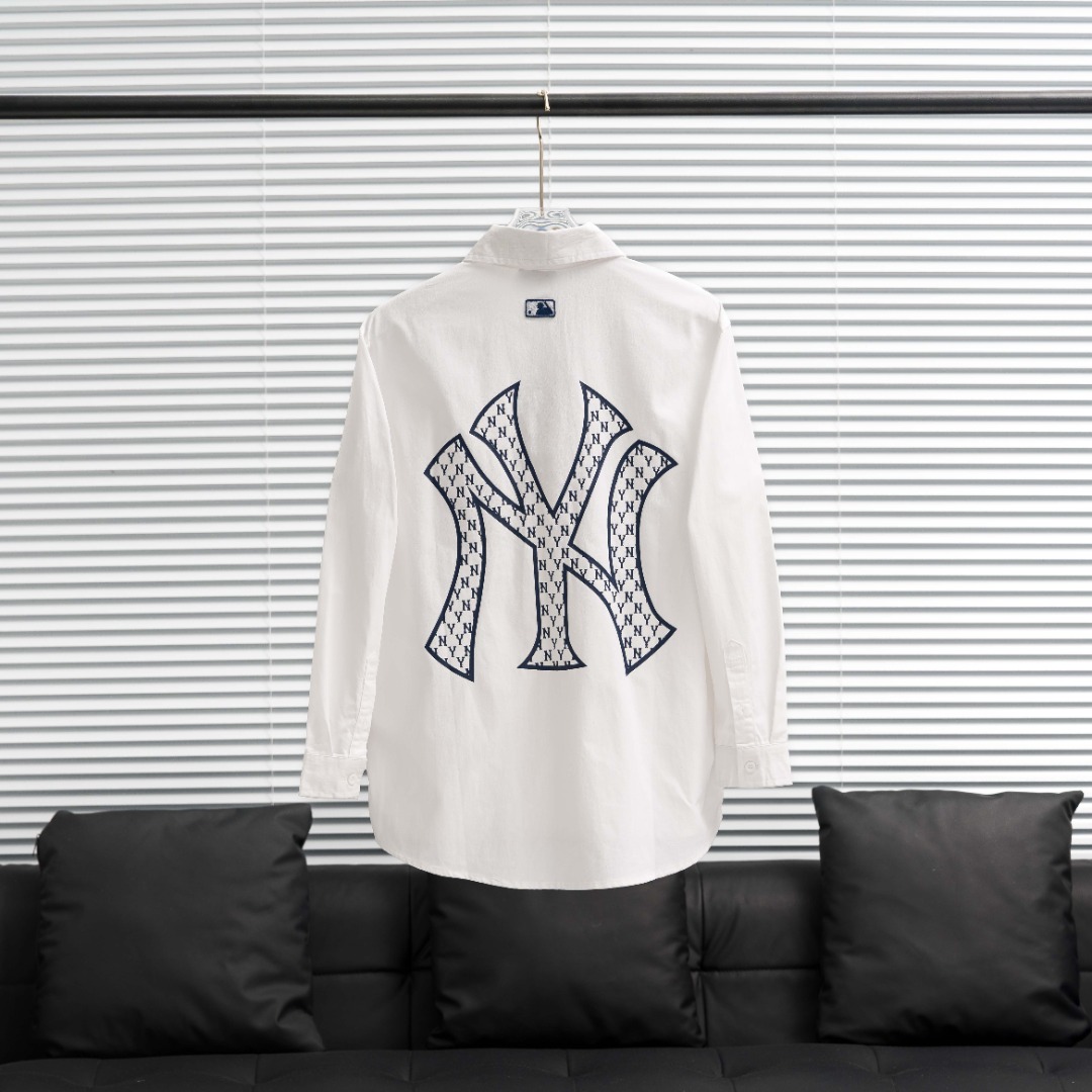 Factory direct MLB Yankees large logo shirt jacket. Colors: Black, White, Light Blue. Sizes: S-XXL.