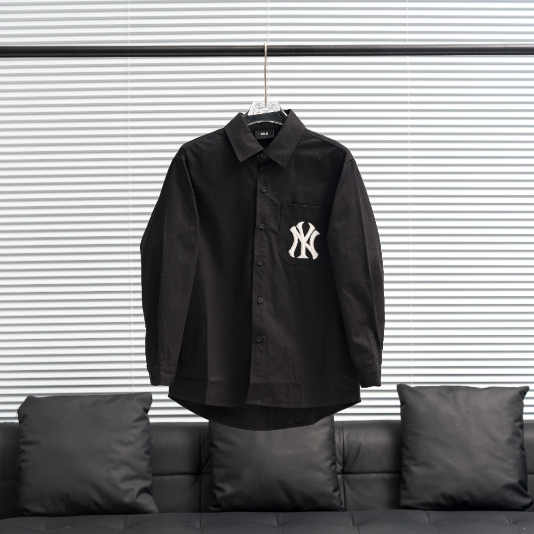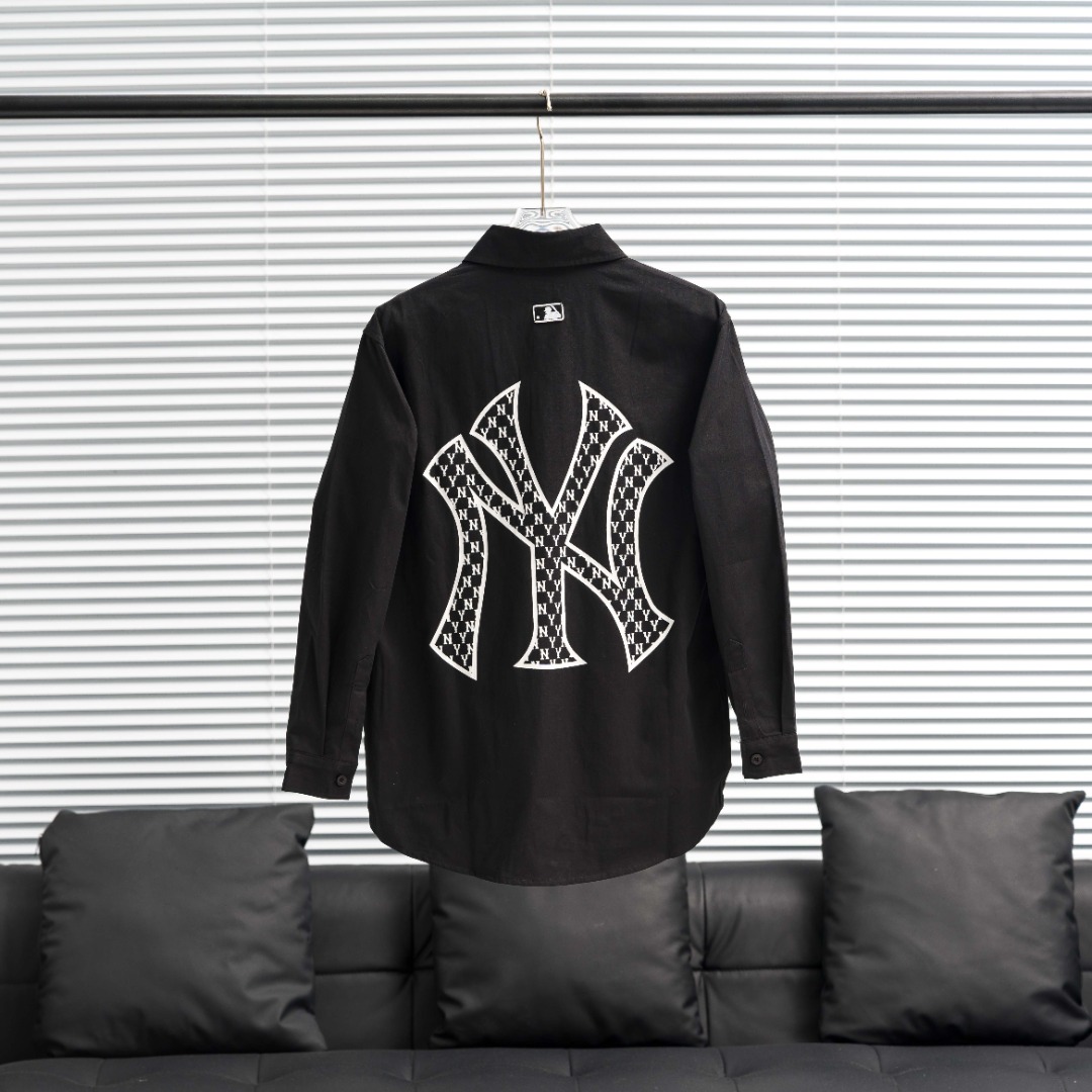 Home • Apparel • Factory direct supply MLB Yankees large logo shirt jacket. Colors: Black, White, Light Blue. Sizes: S-XXL.