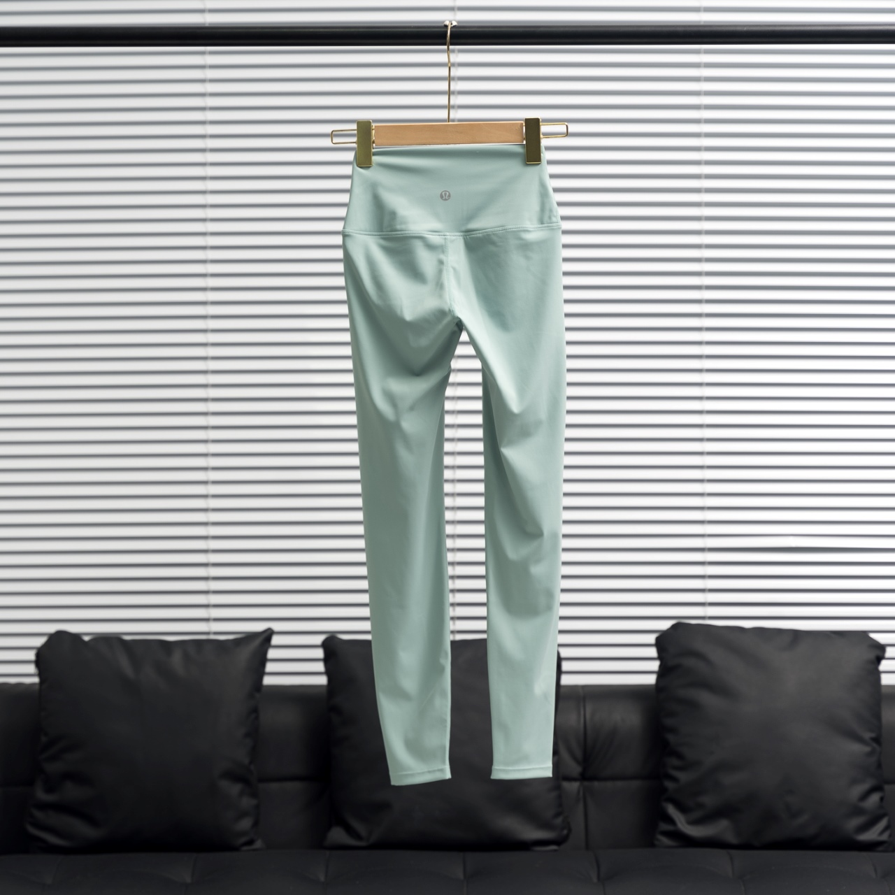 Lululemon crop pants with silver/gold waist & leg logos. Color: Crystal Green. Sizes: 2 4 6 8 10 12.